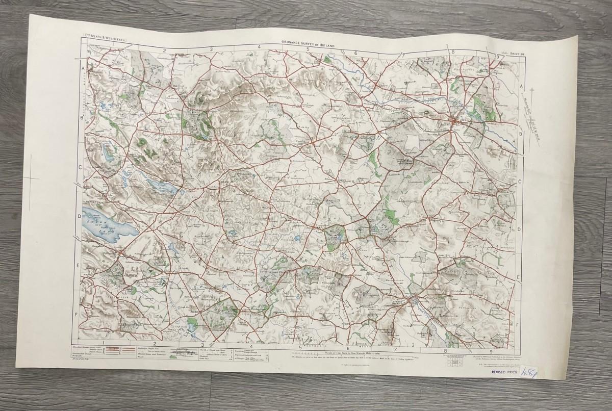 Description: ORDNANCE SURVEY OF IRELAND/ Sheet No. 90/ MEATH & WESTMEATH/ Revised 1899 /Published 1903/ Reproduction.Material: LinenMeasurement approximate: 22 x 14 (Inches). Condition: Good