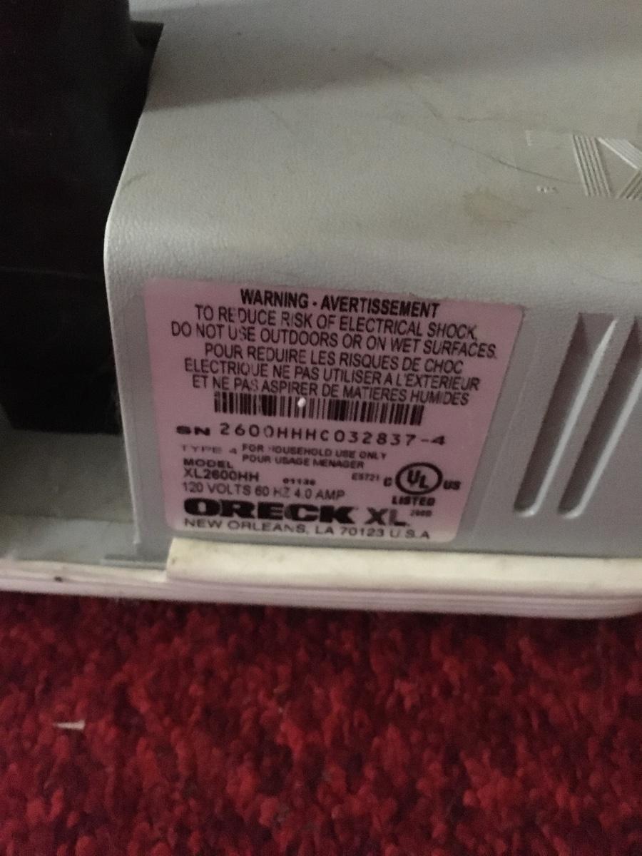 Upright Oreck XL vacuum.Oreck is considered bysome to be the best vacuum on the market. Some light scratch marks from cat on outer bag