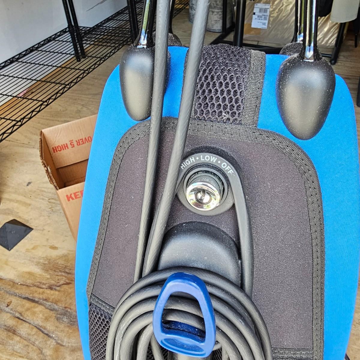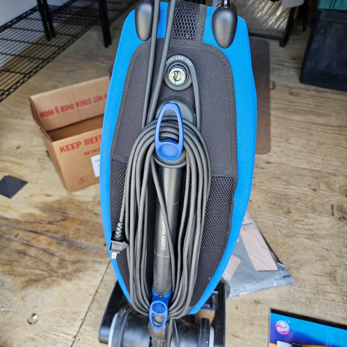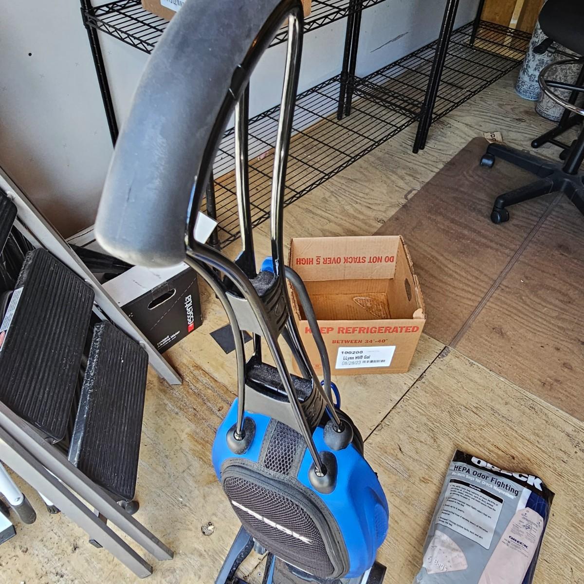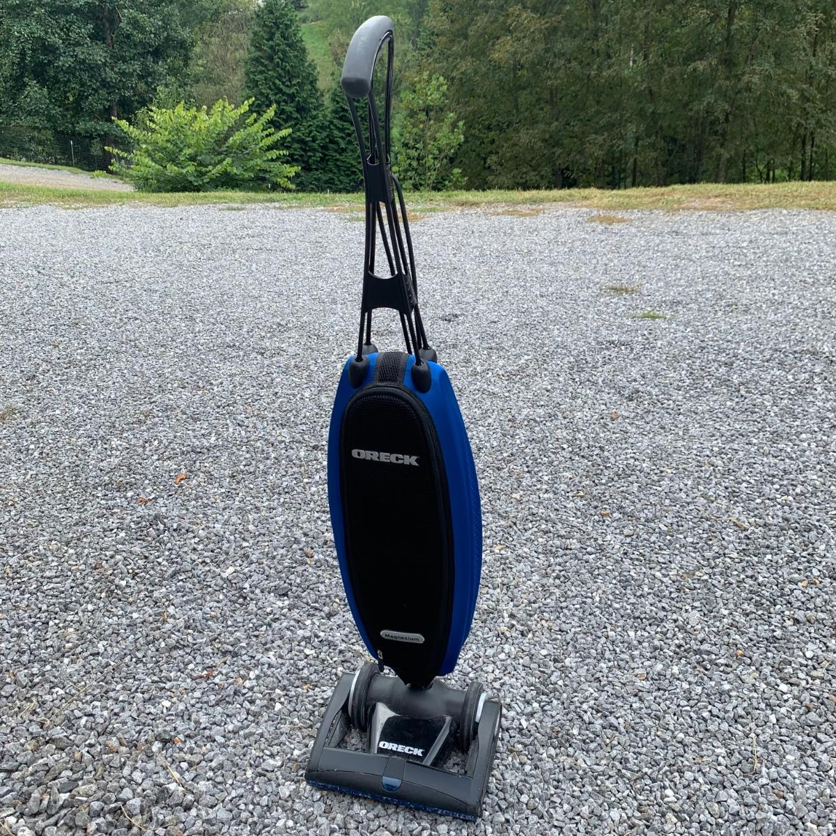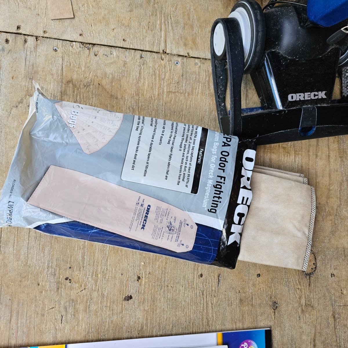 Nice lightweight Oreck Magnesium vacuum. Two speed power and easy turning. Unit measures 12" x 10" x 48"H, comes with extra bags and manual. Vacuum powered on when plugged in. See photos for details. Local pickup only.