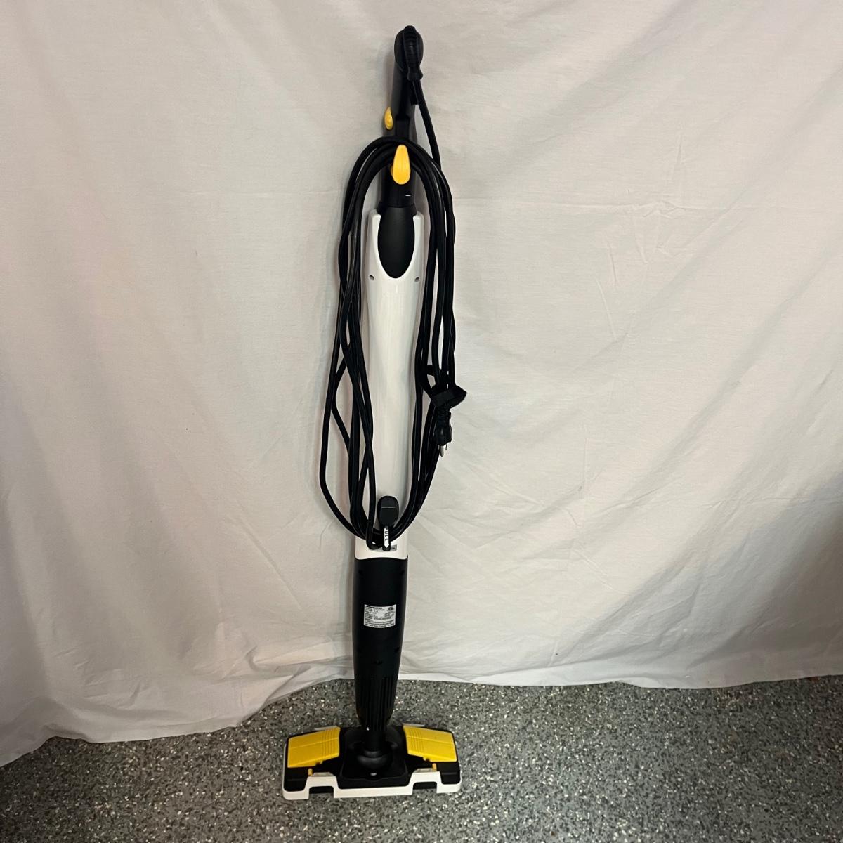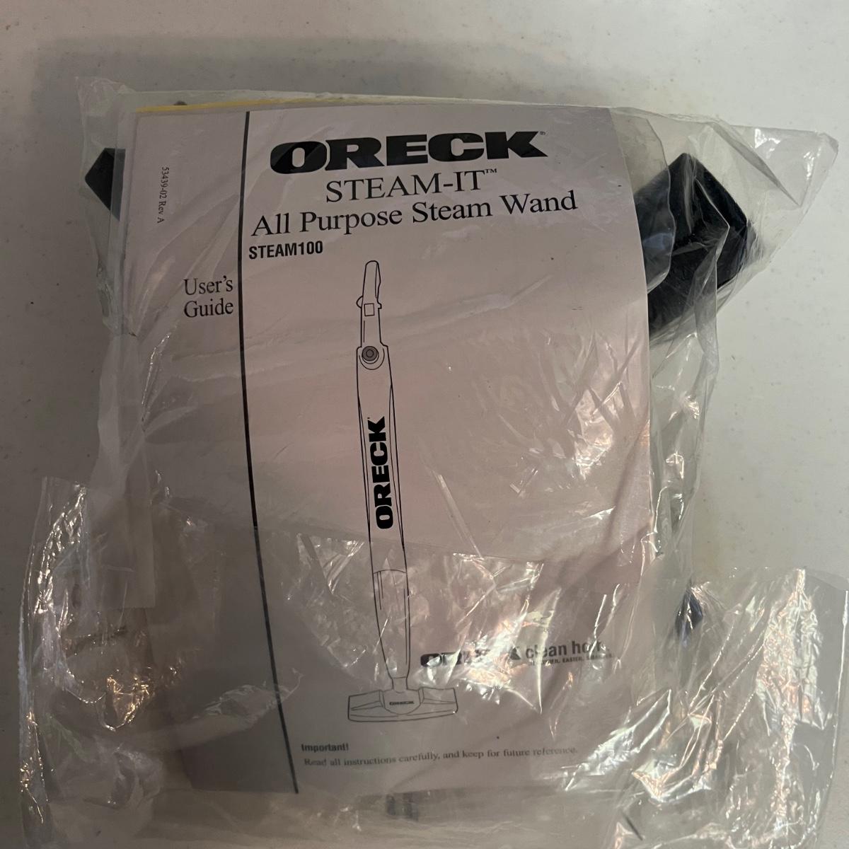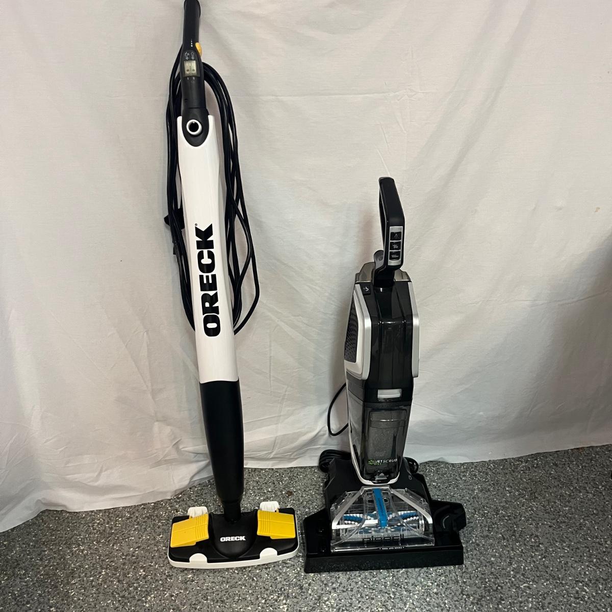 Lot includes a Oreck Steam it model # Steam100 and a Bissell Floor finishing machine model # 25299. Both machines powered on when plugged. Steam It is missing cap.