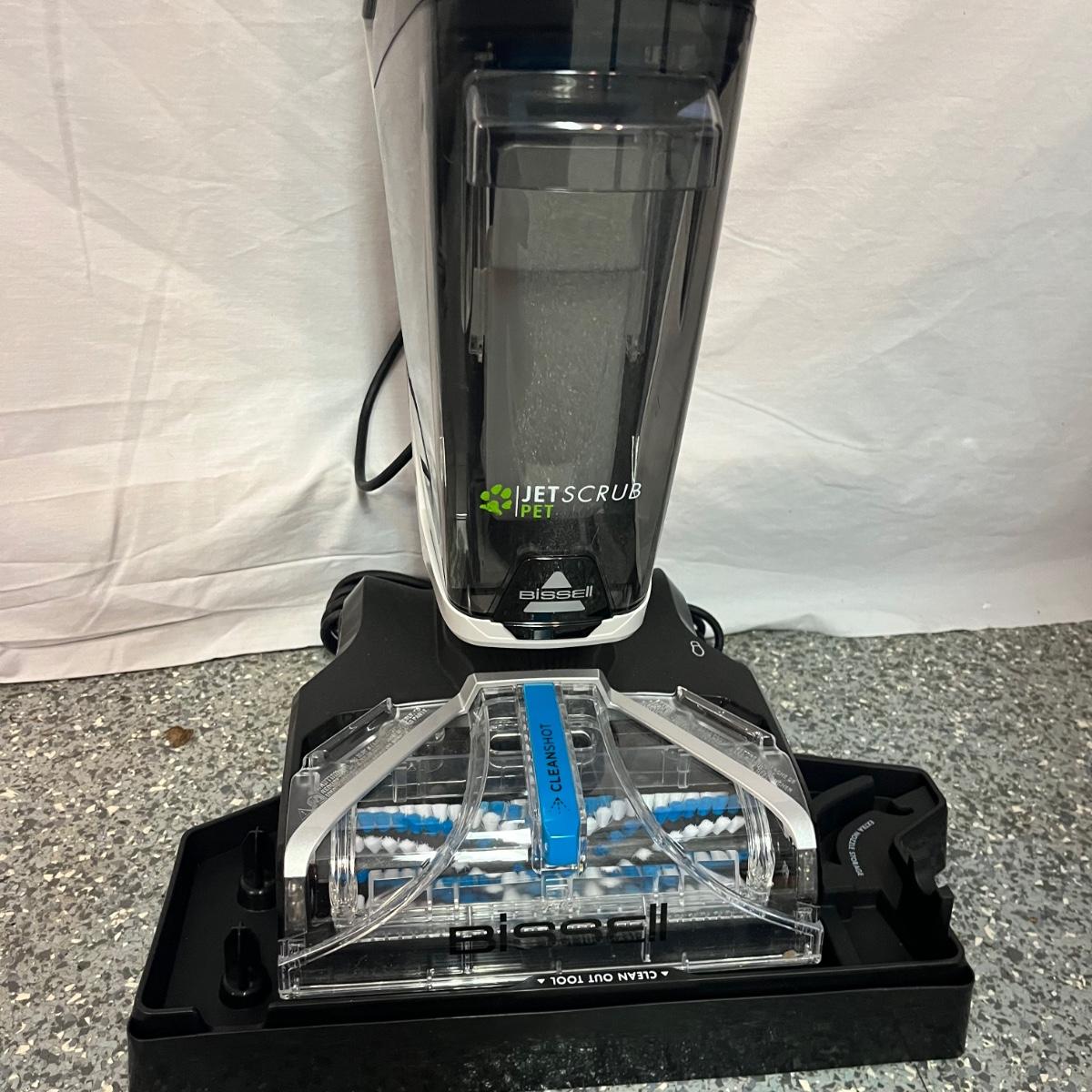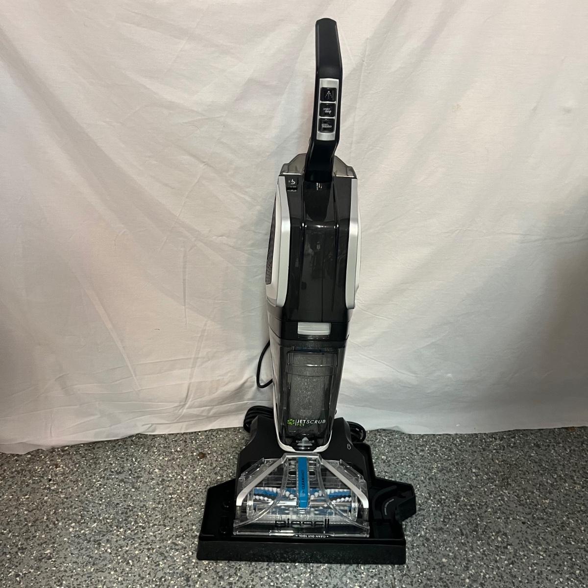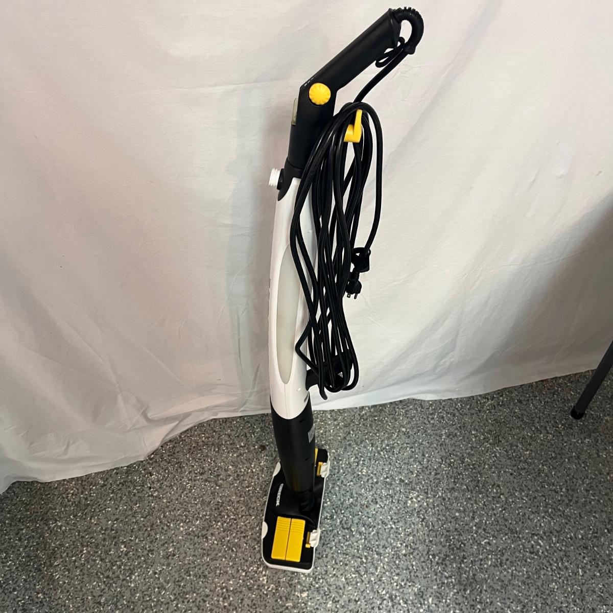 Lot includes a Oreck Steam it model # Steam100 and a Bissell Floor finishing machine model # 25299. Both machines powered on when plugged. Steam It is missing cap.