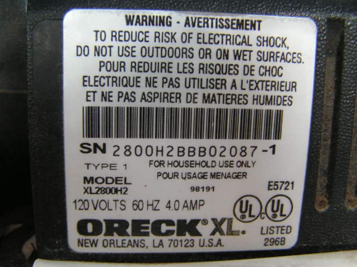 Oreck vacuum cleaner, runs and sounds OK, but not thoroughly tested.