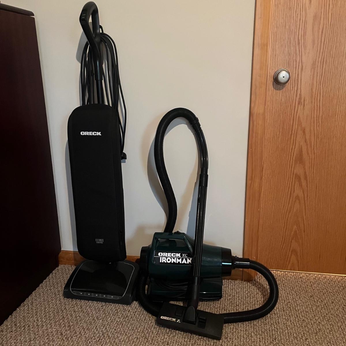 Lot includes a Oreck XL Ironman canister vacuum Oreck XL canister vacuum and a Oreck upright vacuum. All three vacuums powered on when plugged in. Some bags included. Local Pickup Only