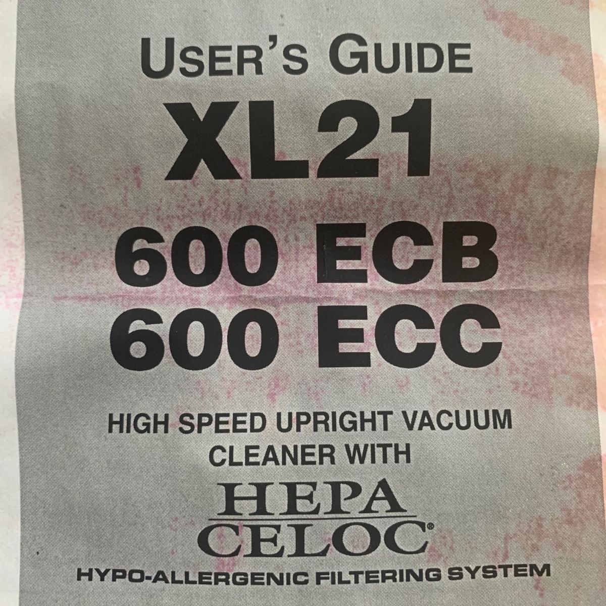 Lot includes an Oreck XL 21 Hepa Celoc upright vacuum with extra bags and owners manual. Vacuum worked when tested. Model is: XL21 600 ECB