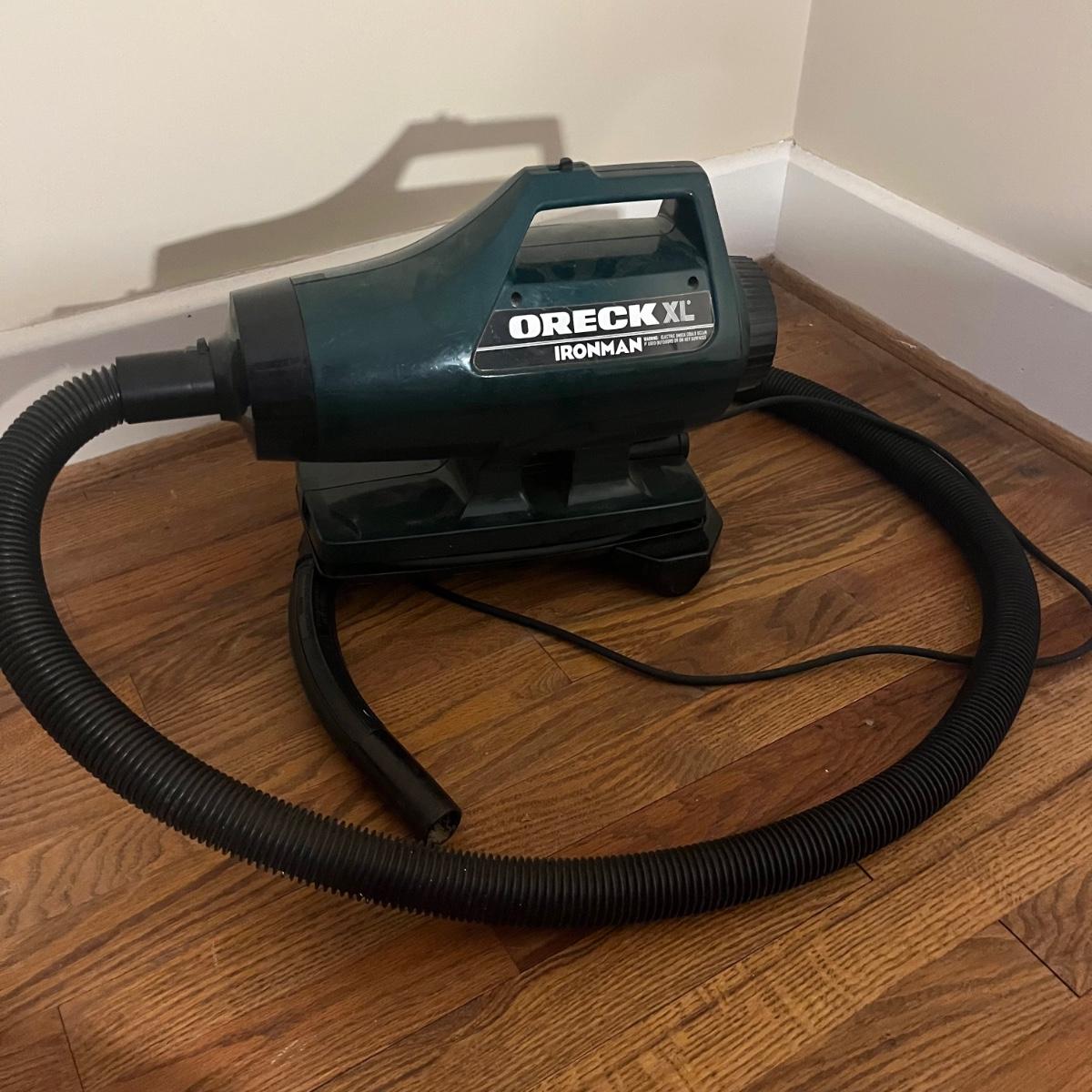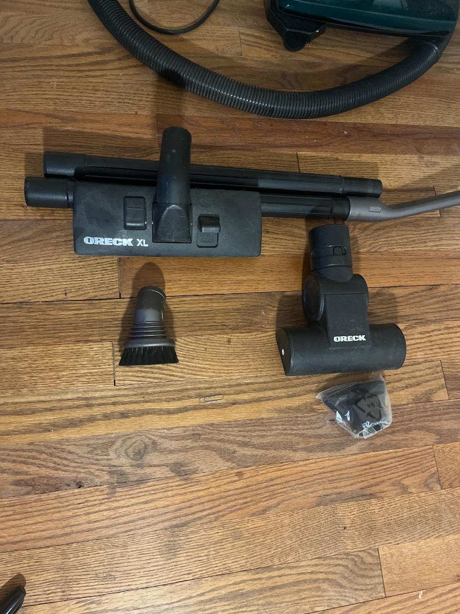 Lot includes a Oreck XL Ironman canister vacuum with attachments. Vacuum worked when tested. Model number: IM-88