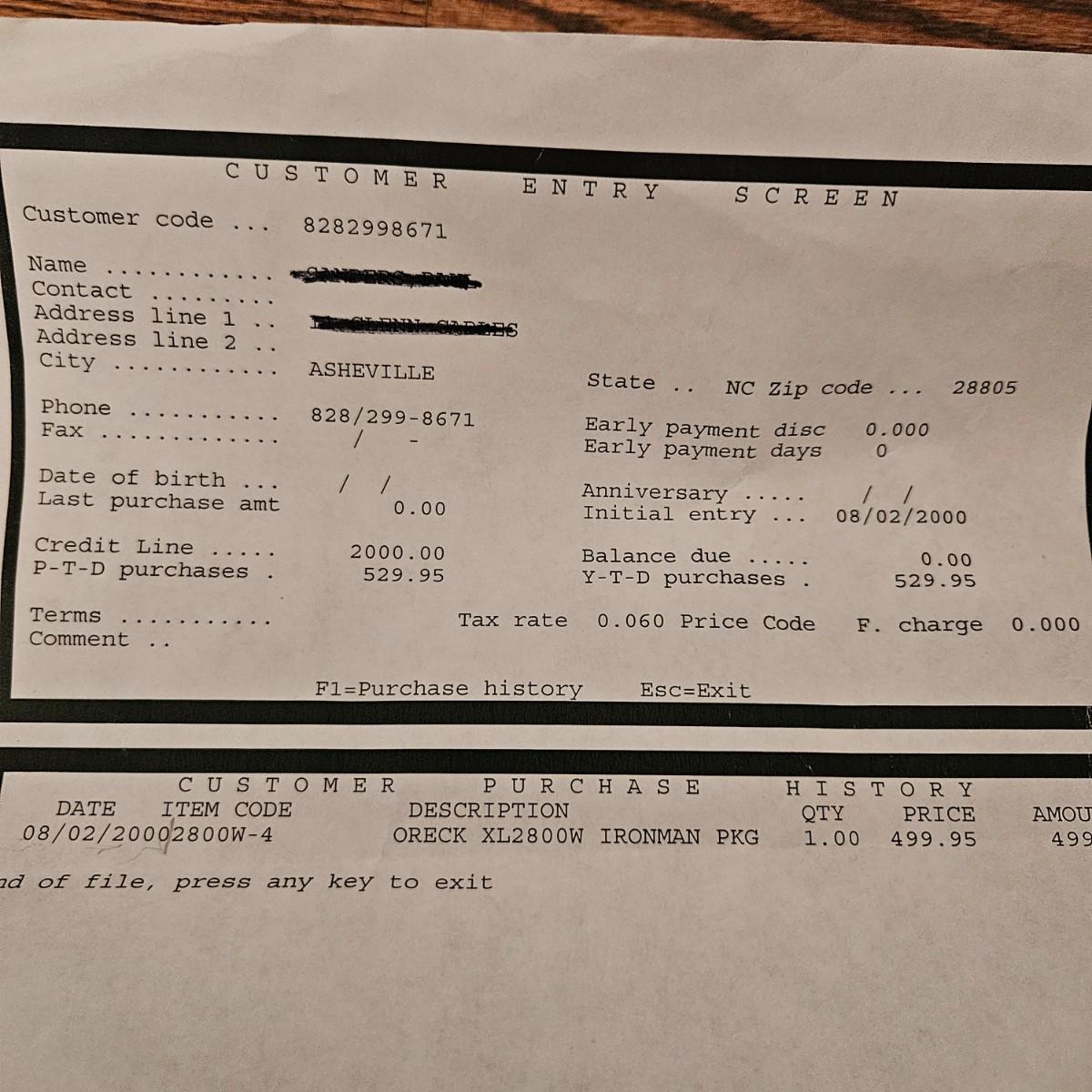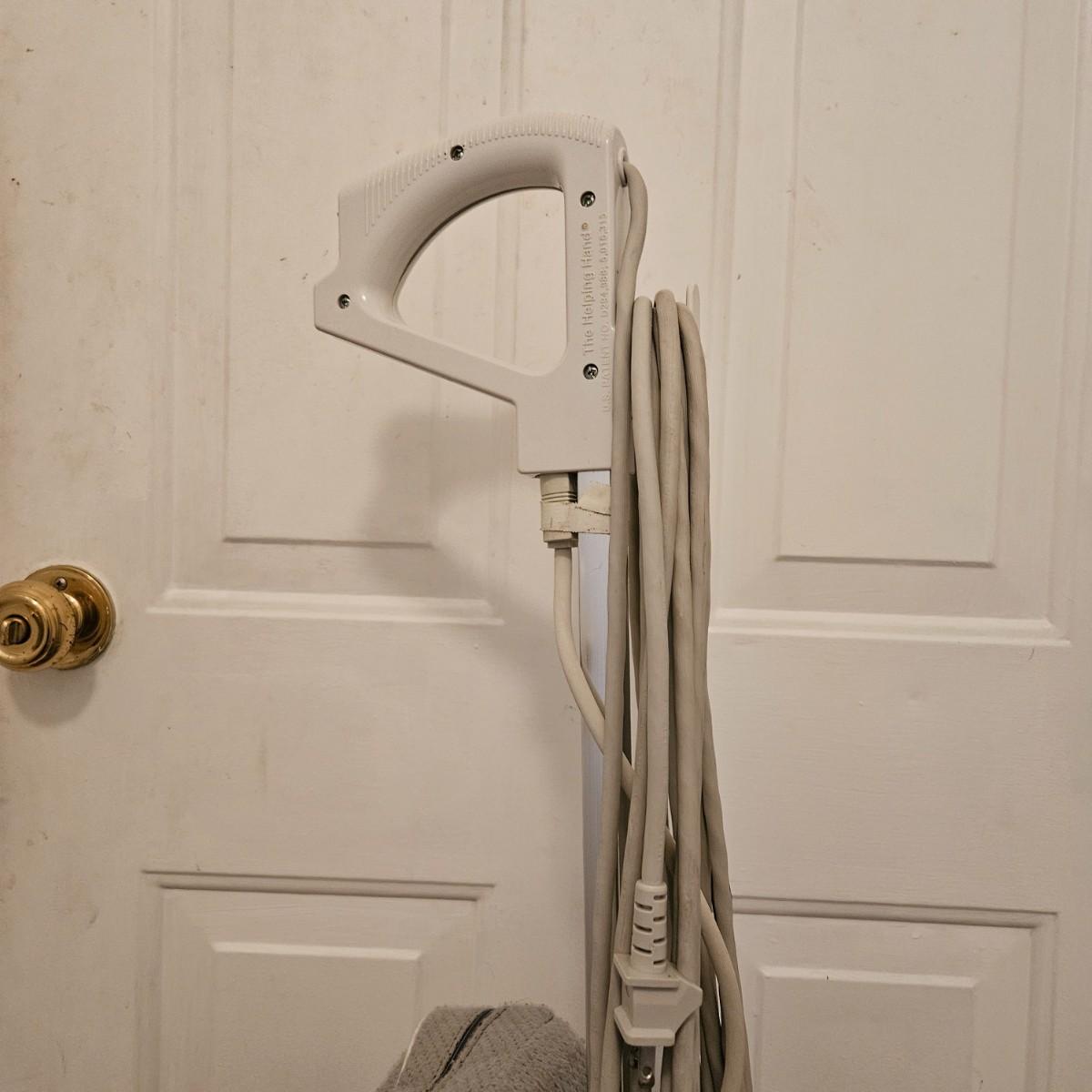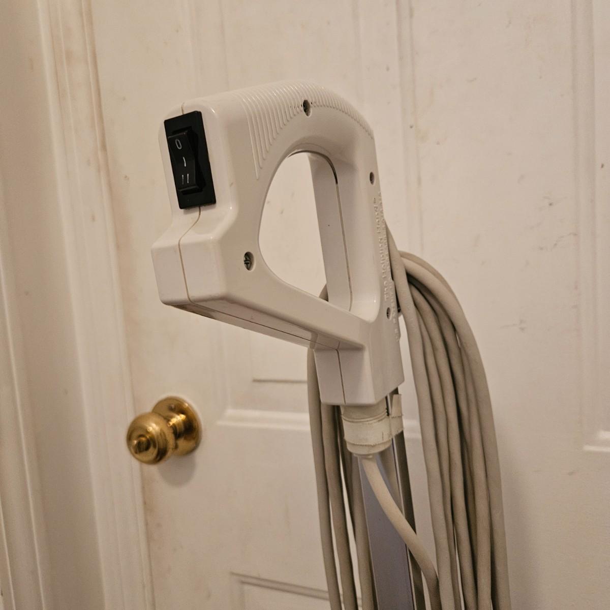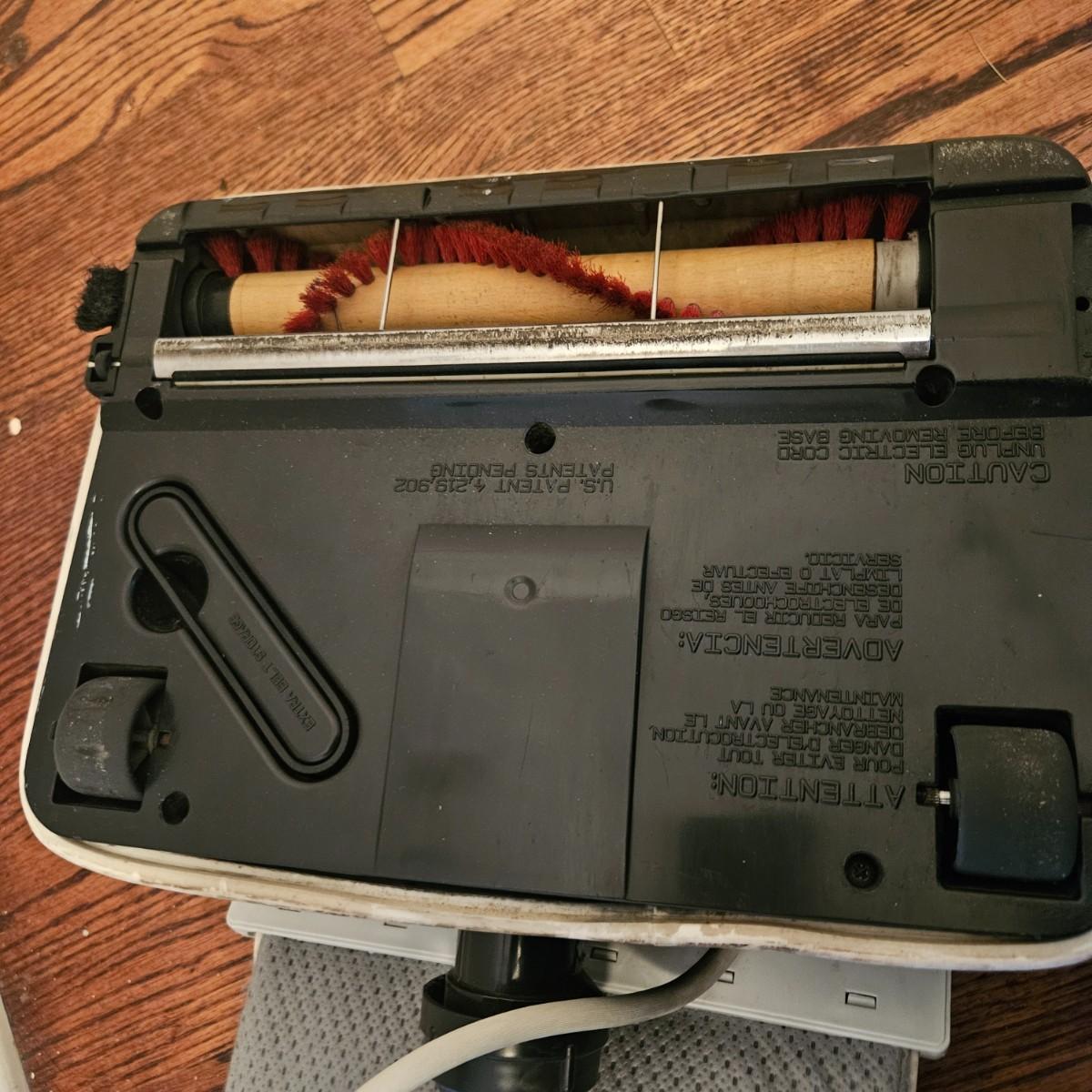 An Oreck XL Ironman vacuum that powered on when plugged in. It includes the original manual and receipt, and measures approximately 12.5" x 9" x 48"H. Local pickup only
