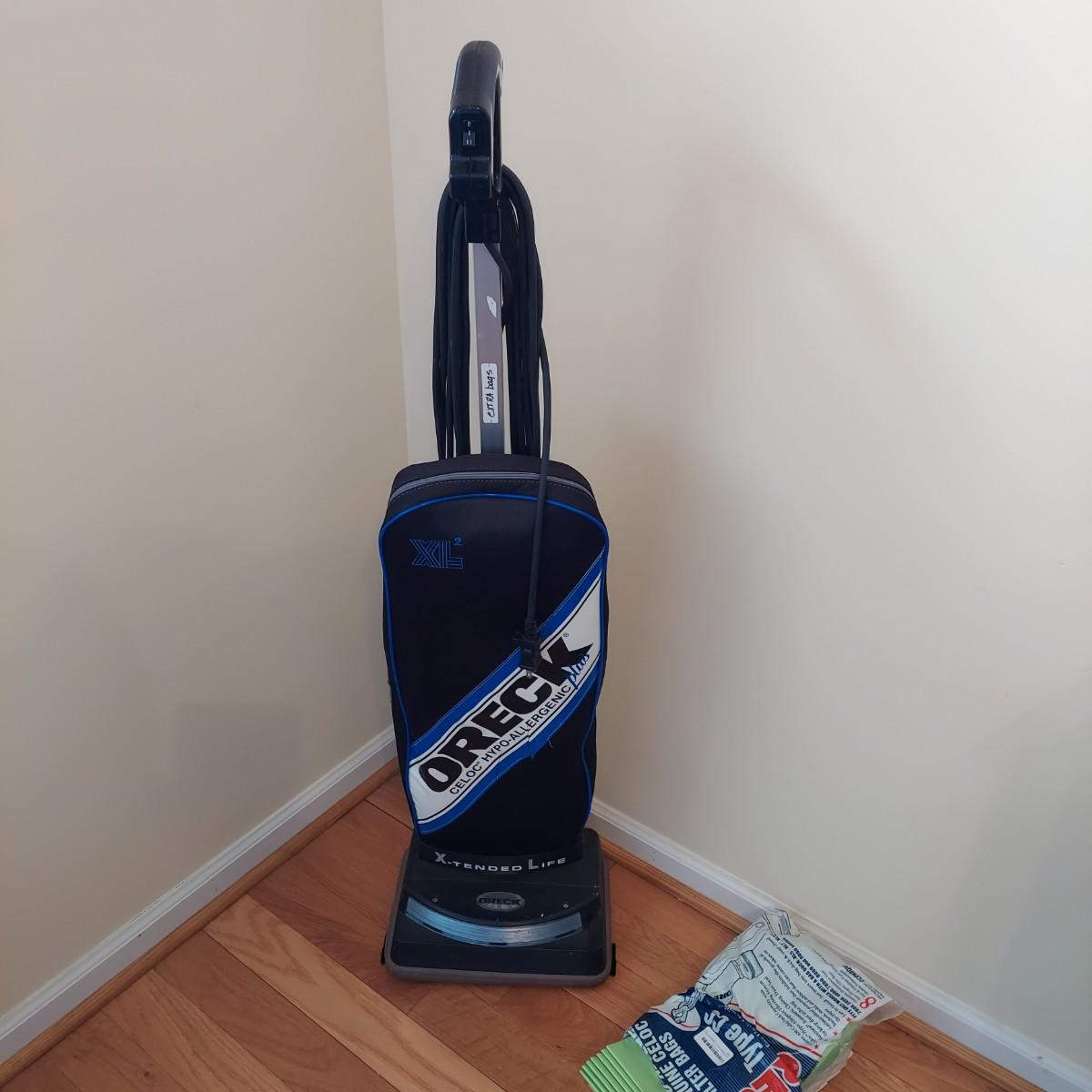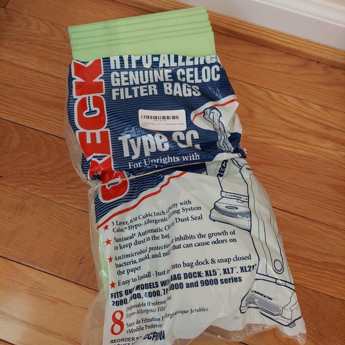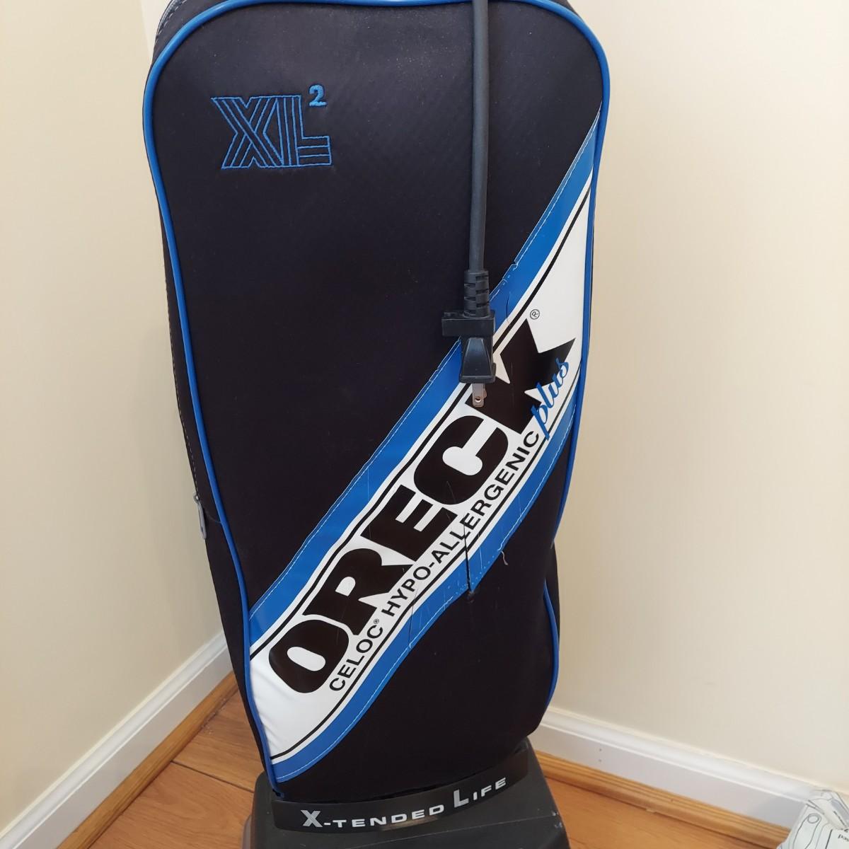 Orek Celoc Hypo-Allergenic Plus with filter bags. Vacuum plugged in, powered on and the brush turned. Item is in used condition. Please see photos for details. Local Pickup Only.