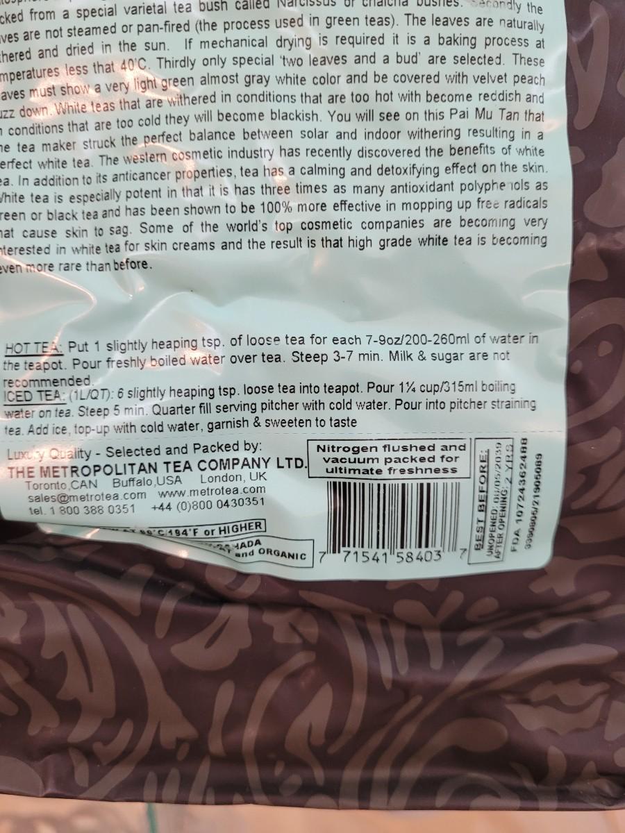 Organic Pai Mu Tan Tea 1.1 Pounds