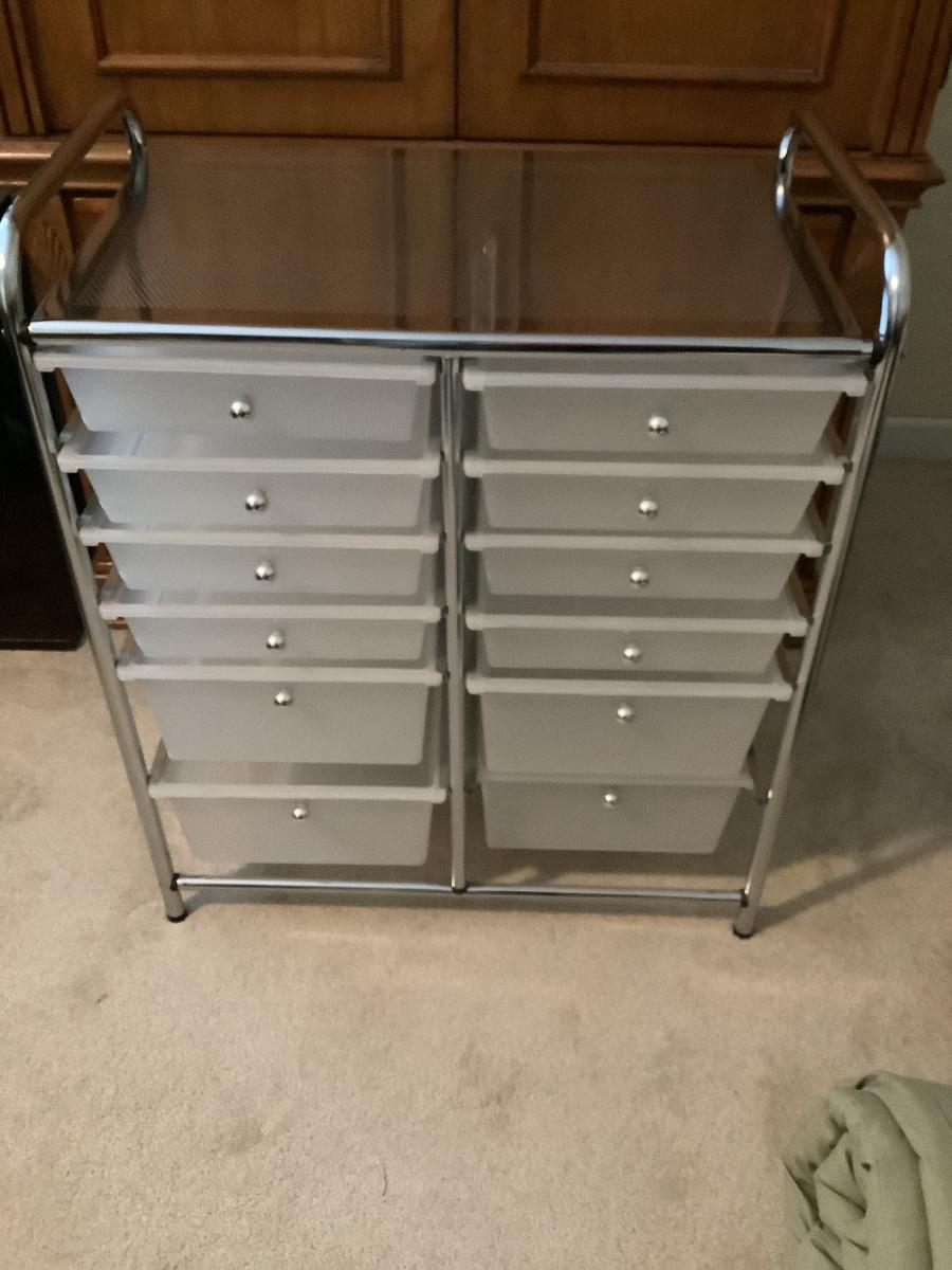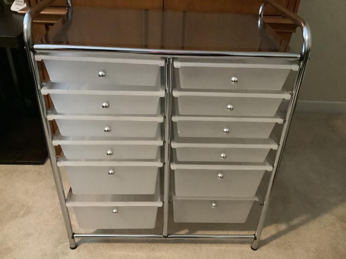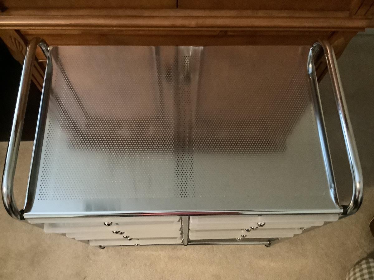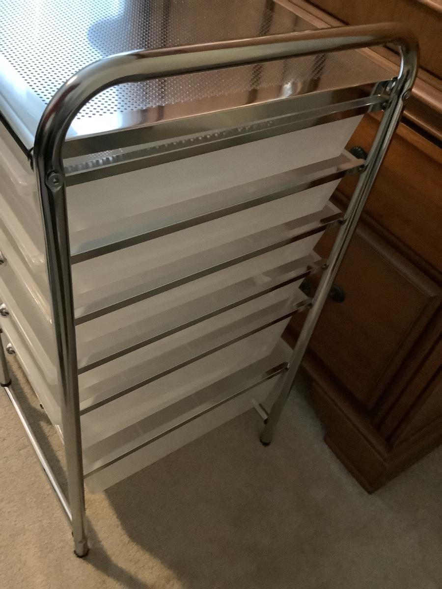 Organize it! with this Organizer with white drawers, silver frame, and casters