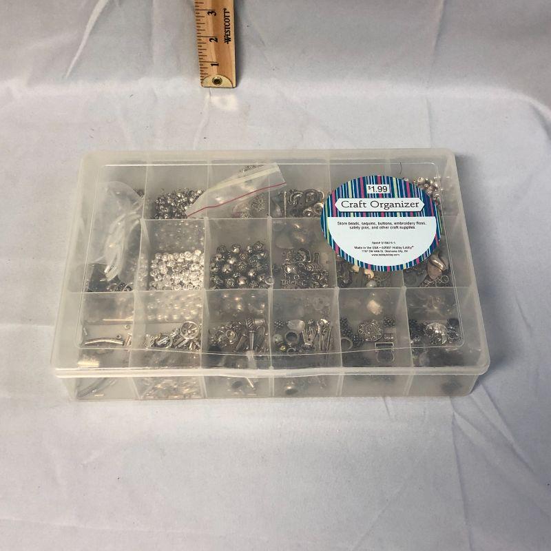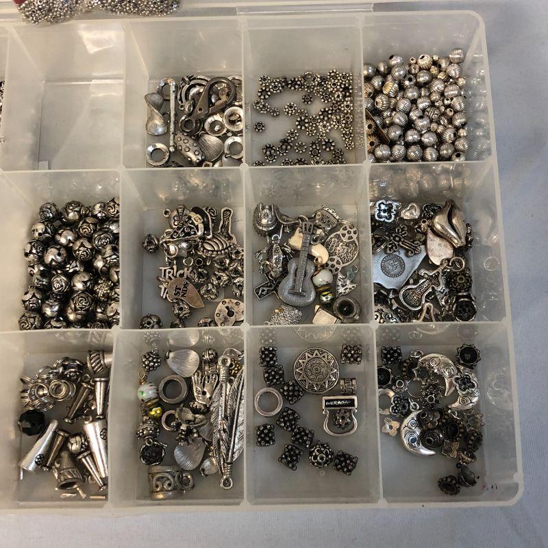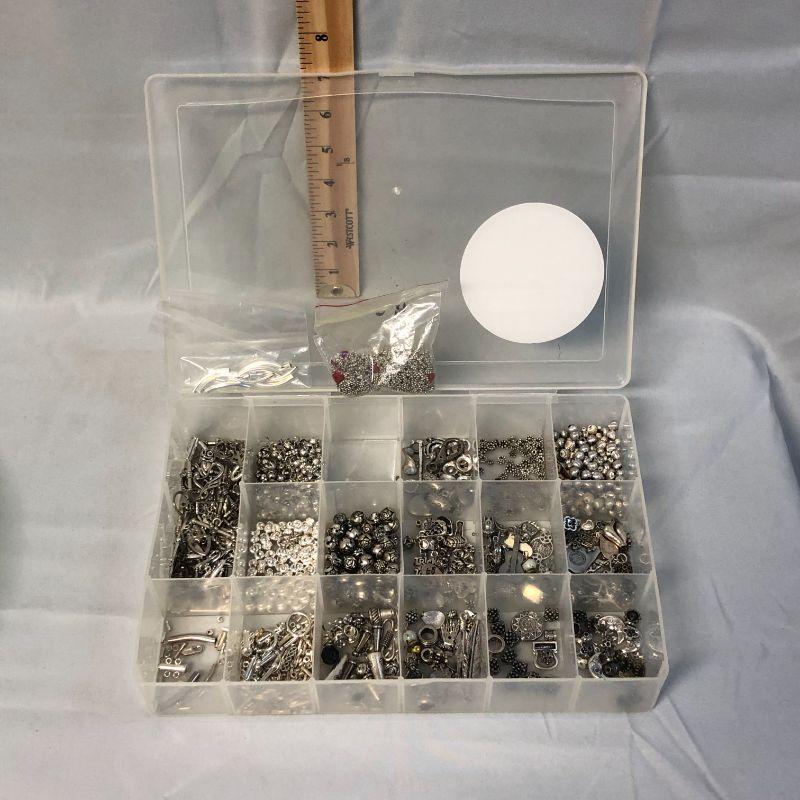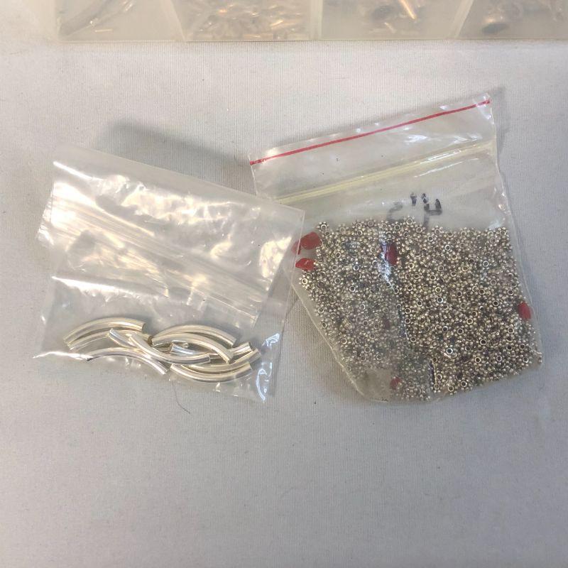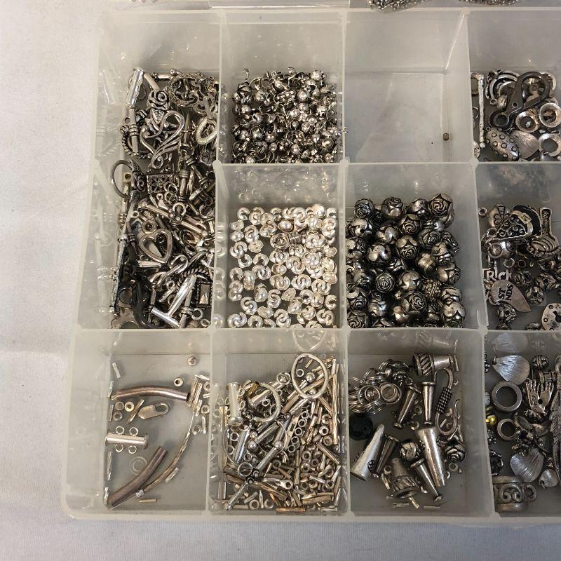 This box is FULL of the supplies you would need to make some gorgeous jewelry. They are all silver color metal and I suspect that some are actually silver.