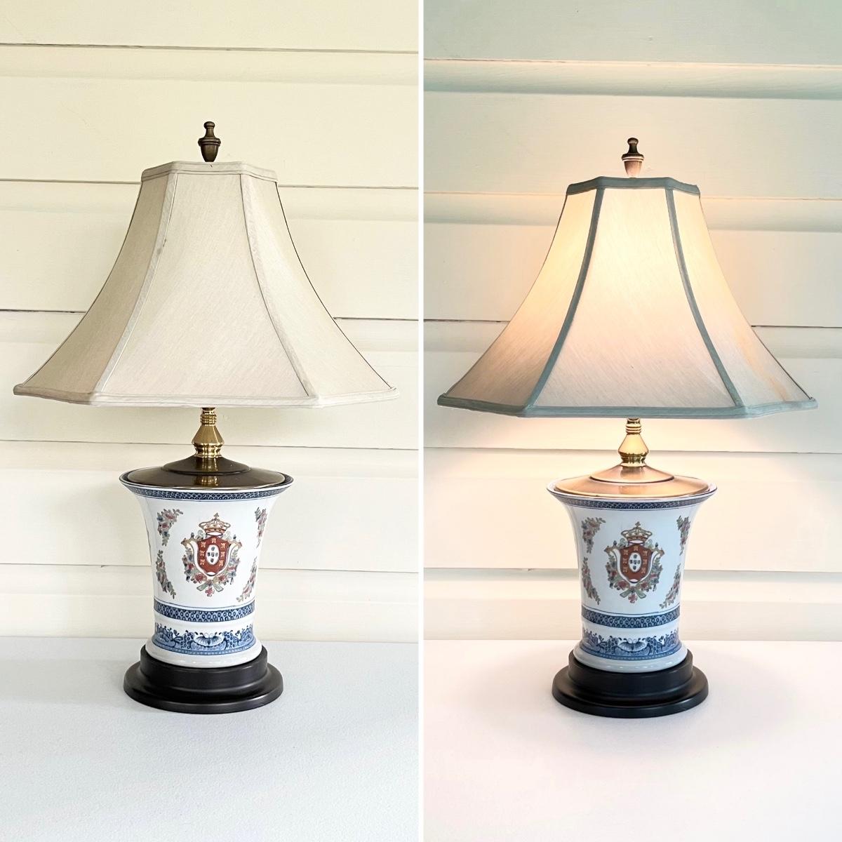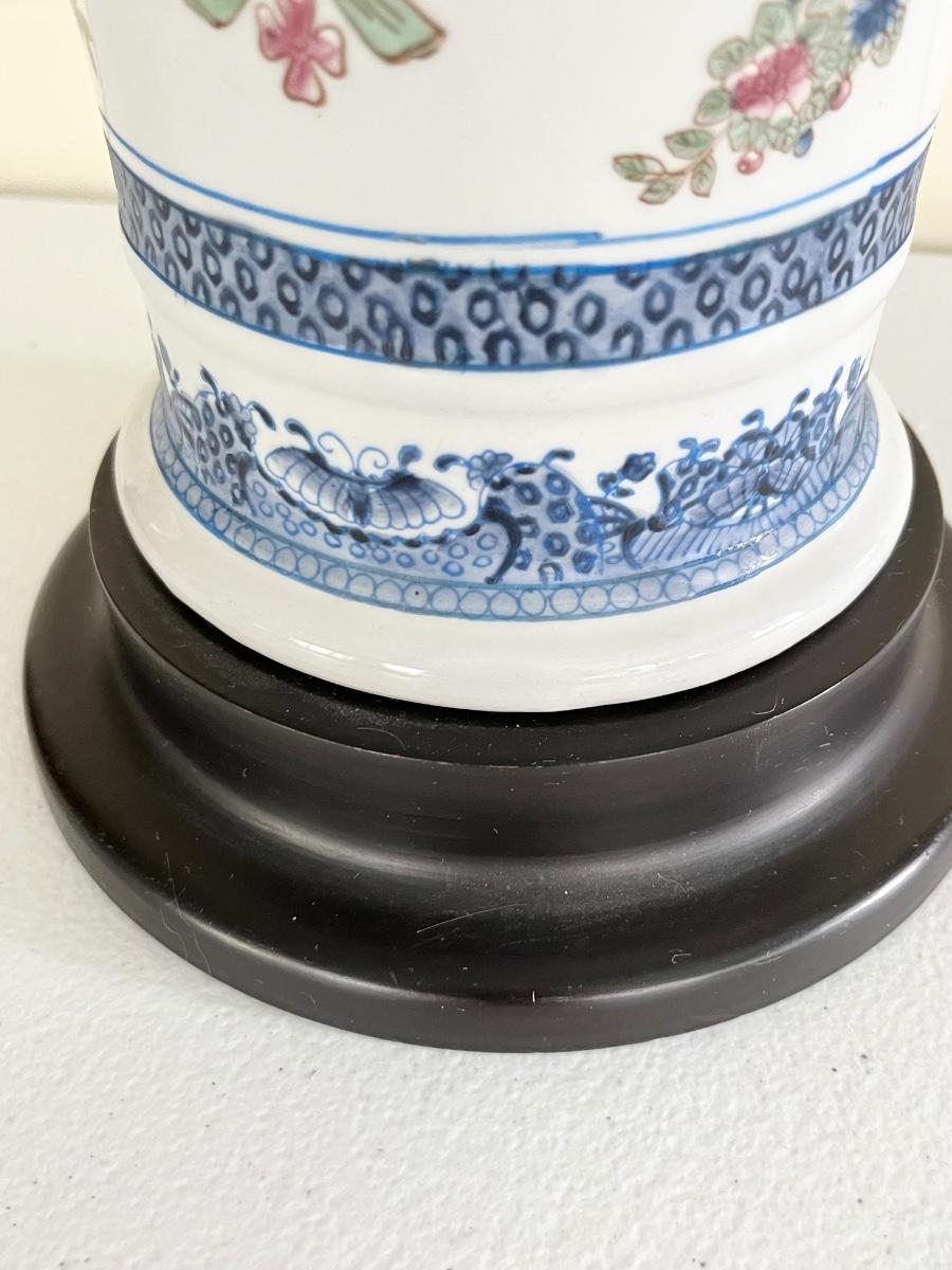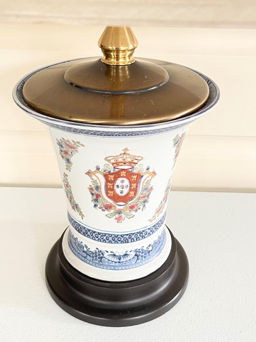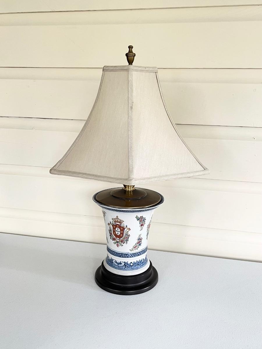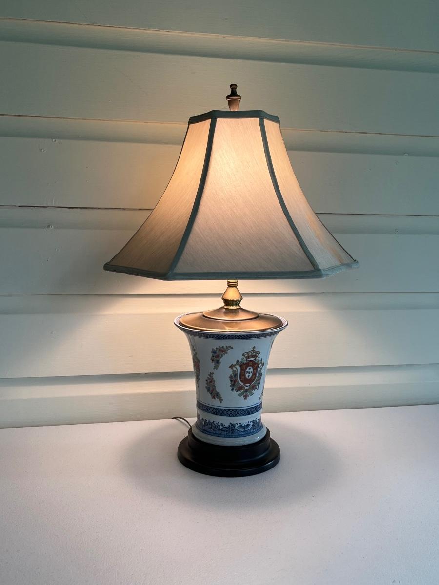 ORIENTAL ACCENT ~ One (1) Porcelain & Bronze Lamp With Wood Base