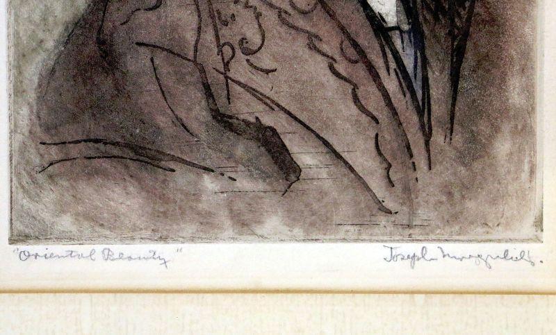 Antique litho titled "Oriental Beauty", signed by artist Joseph... we cannot read out the last name so please refer to the photos. Frame with glass front, in fine collector's condition. Image - 8.5" x 11", frame - 15.5" x 20".
