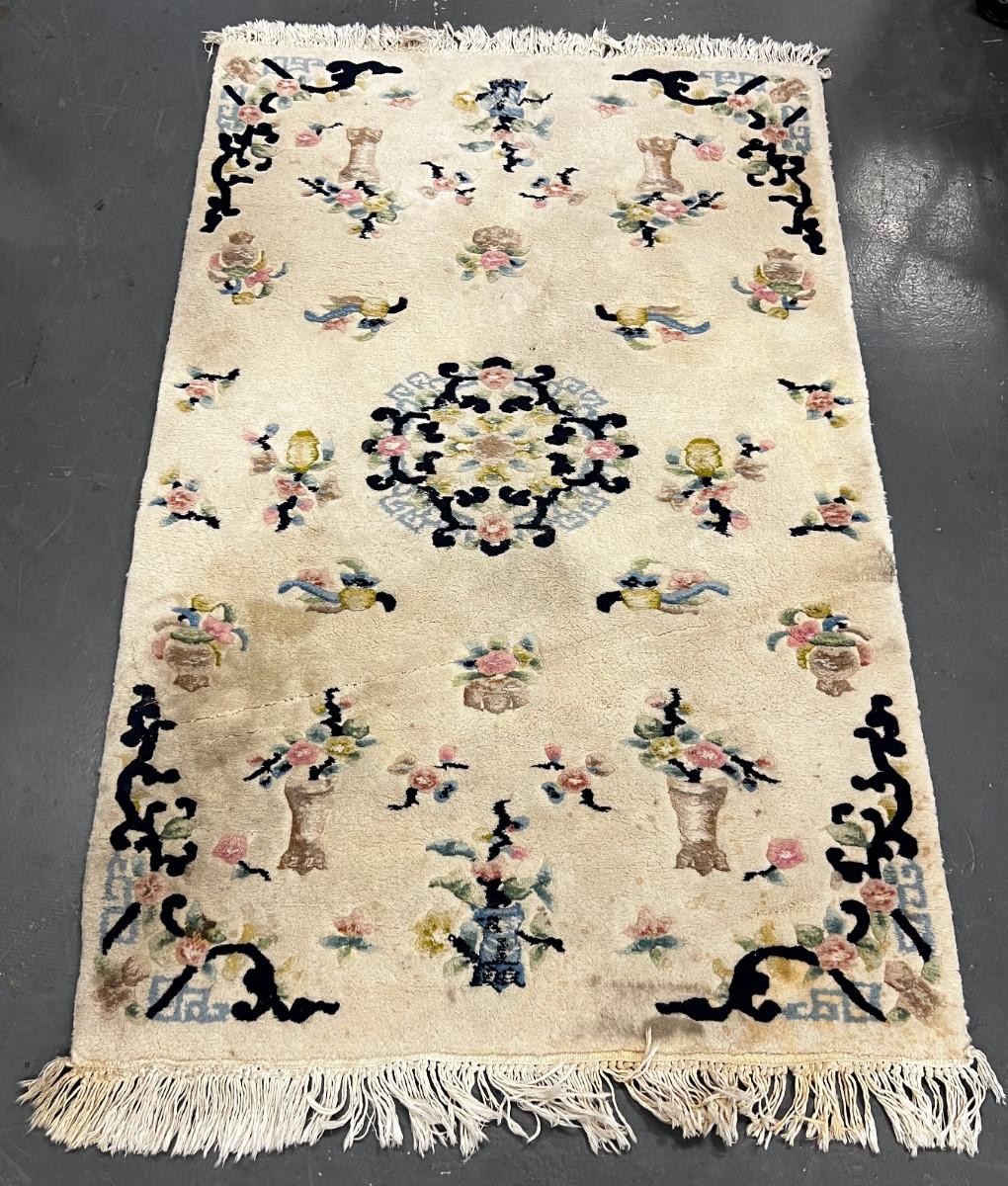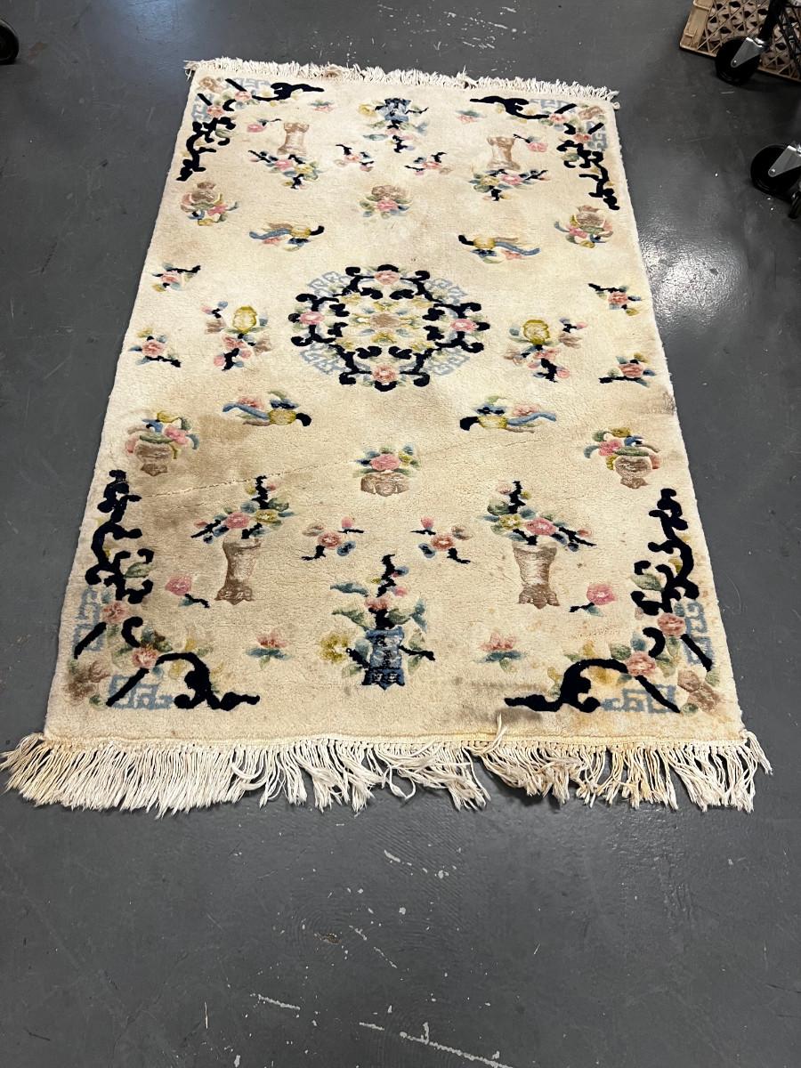 Good Condition 38" X 60" This Rug needs to be CLEANED! It is a good rug overall and would be worth the cost of Cleaning for sure!