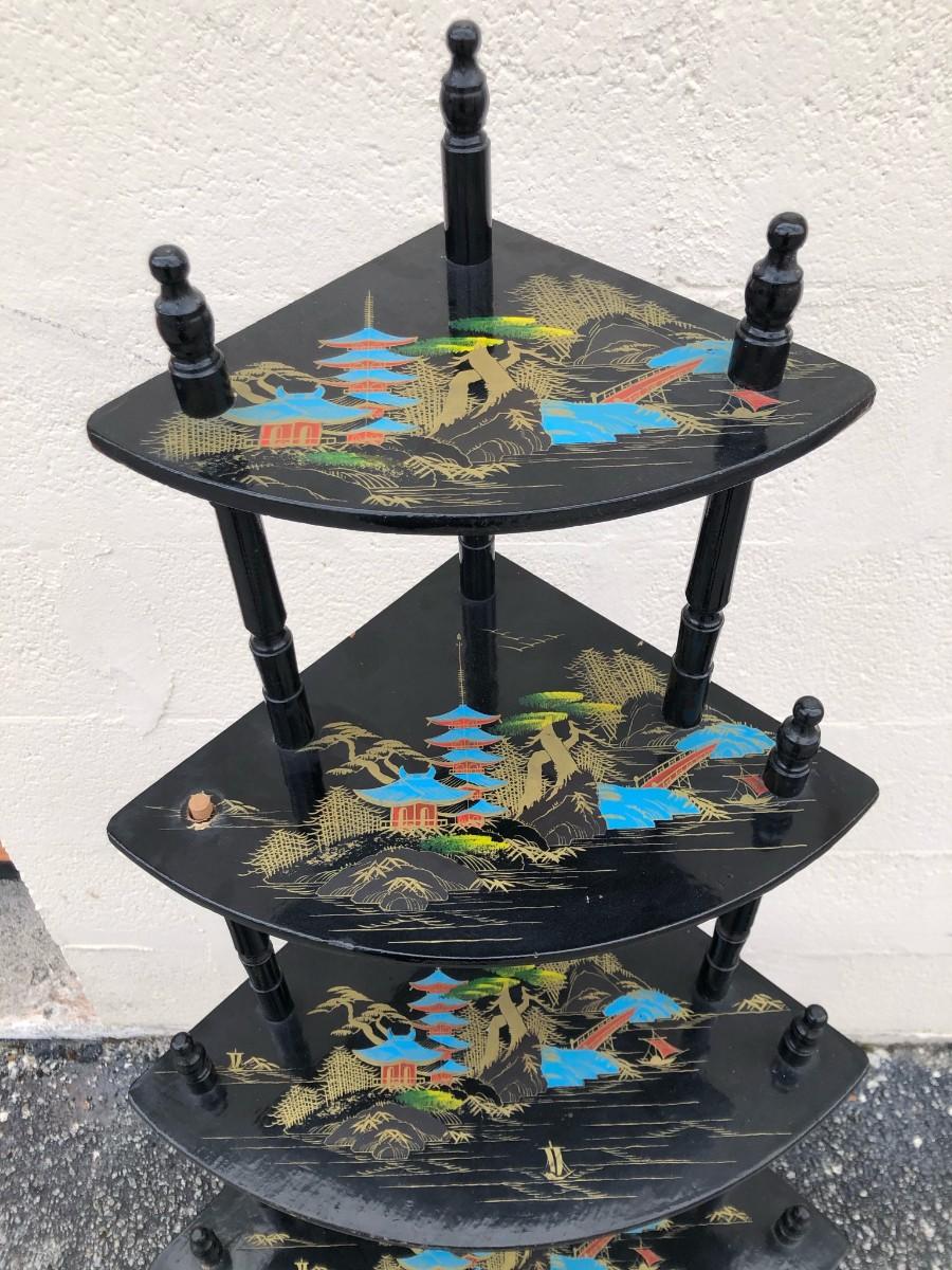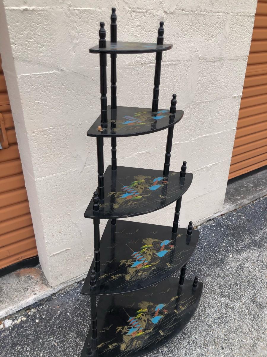 Vintage Oriental Corner Shelving Unit