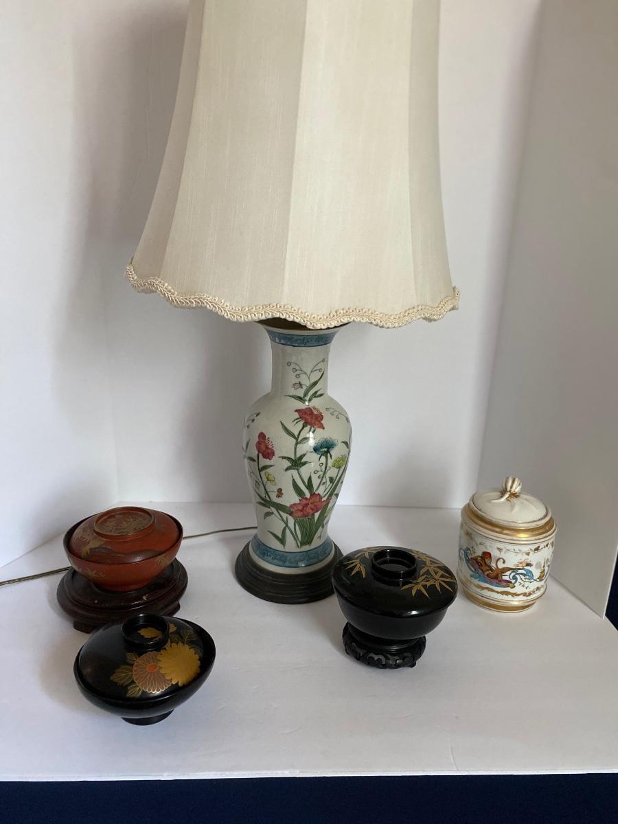 Pr of Oriental decorate porcelain vase Lamps, Oriental Jar & trinket boxes As Pictured