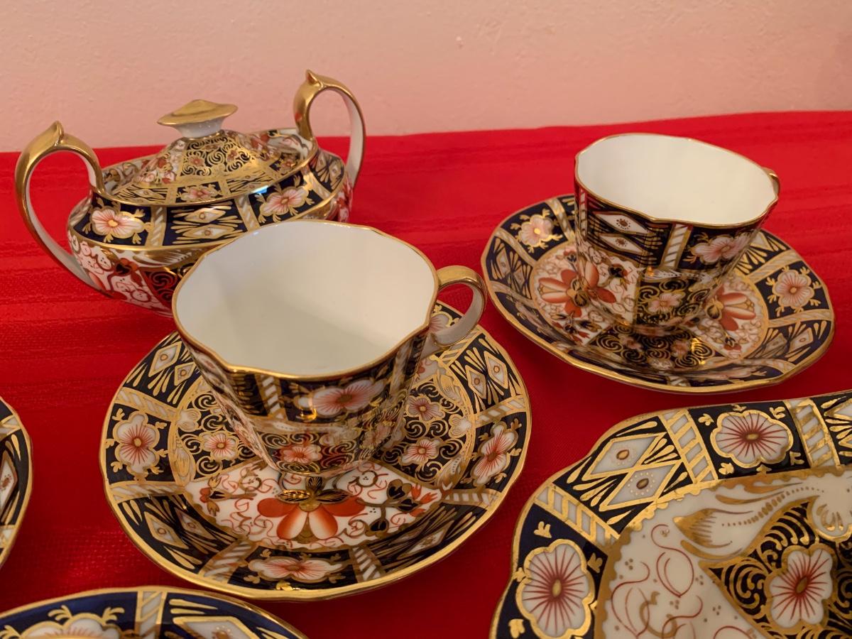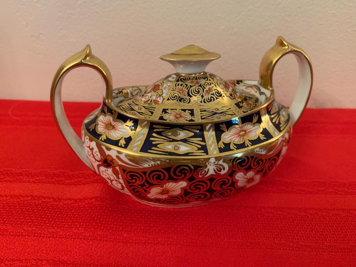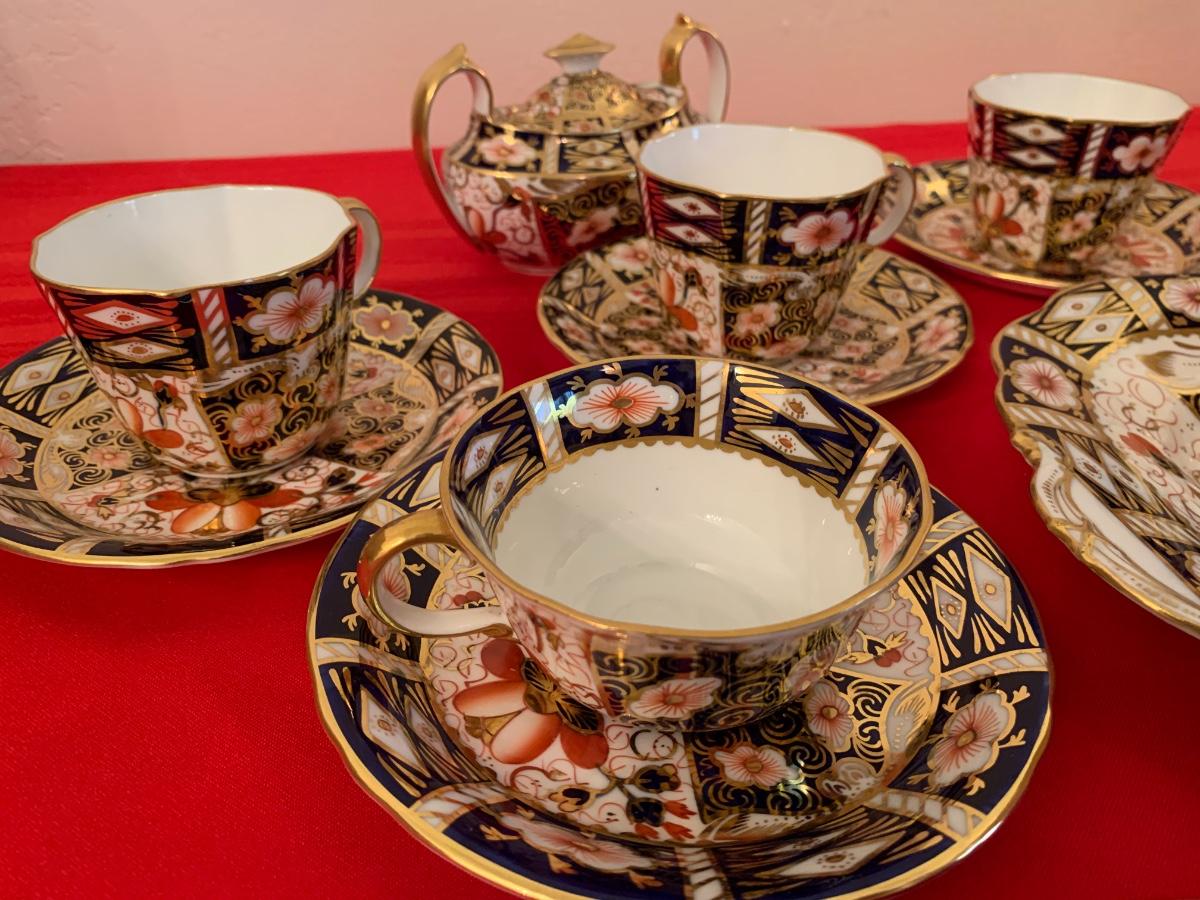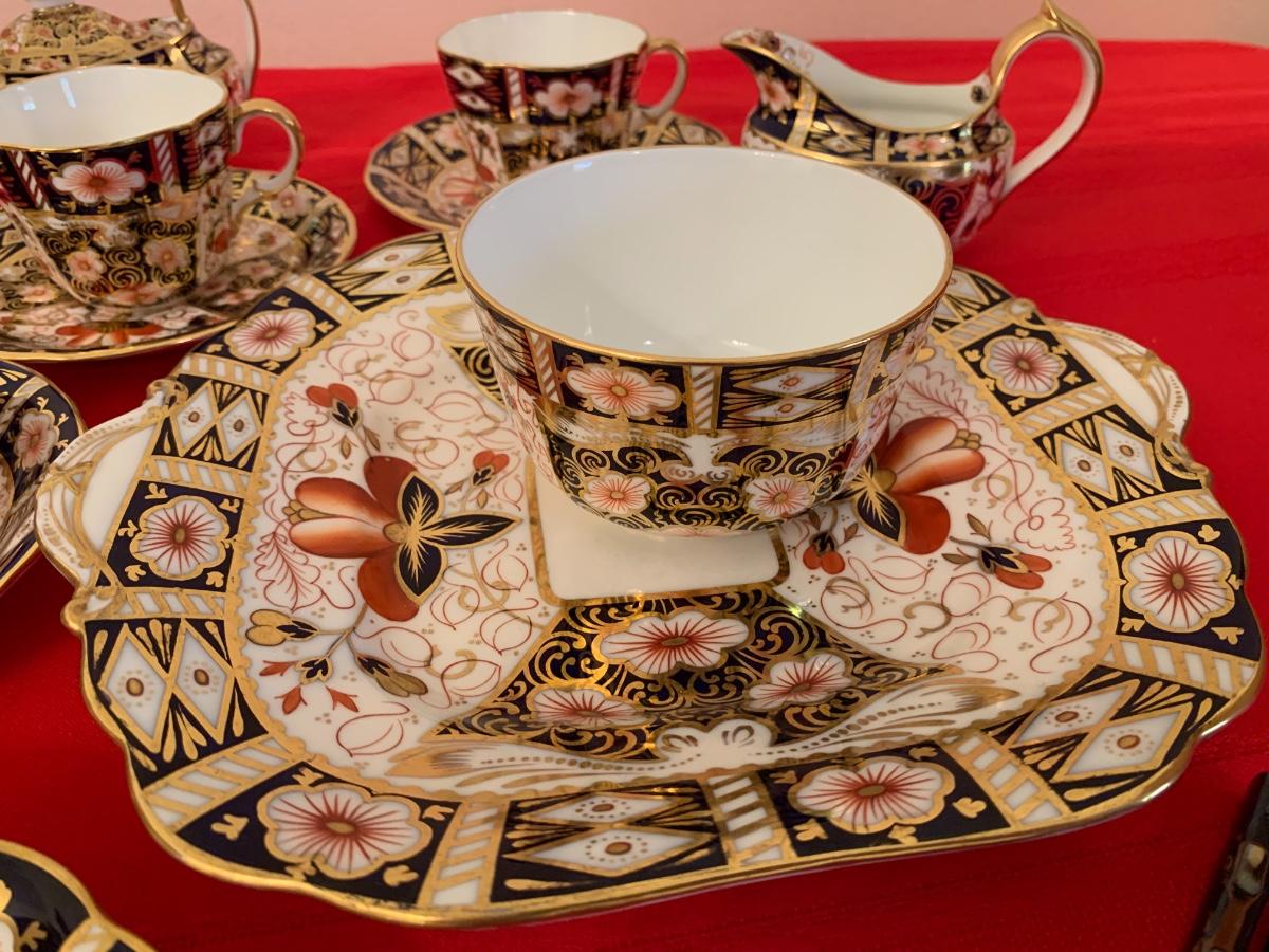 Set of Royal Crown Derby China from England, inlay chopsticks and foo dog carved stone ink stamp