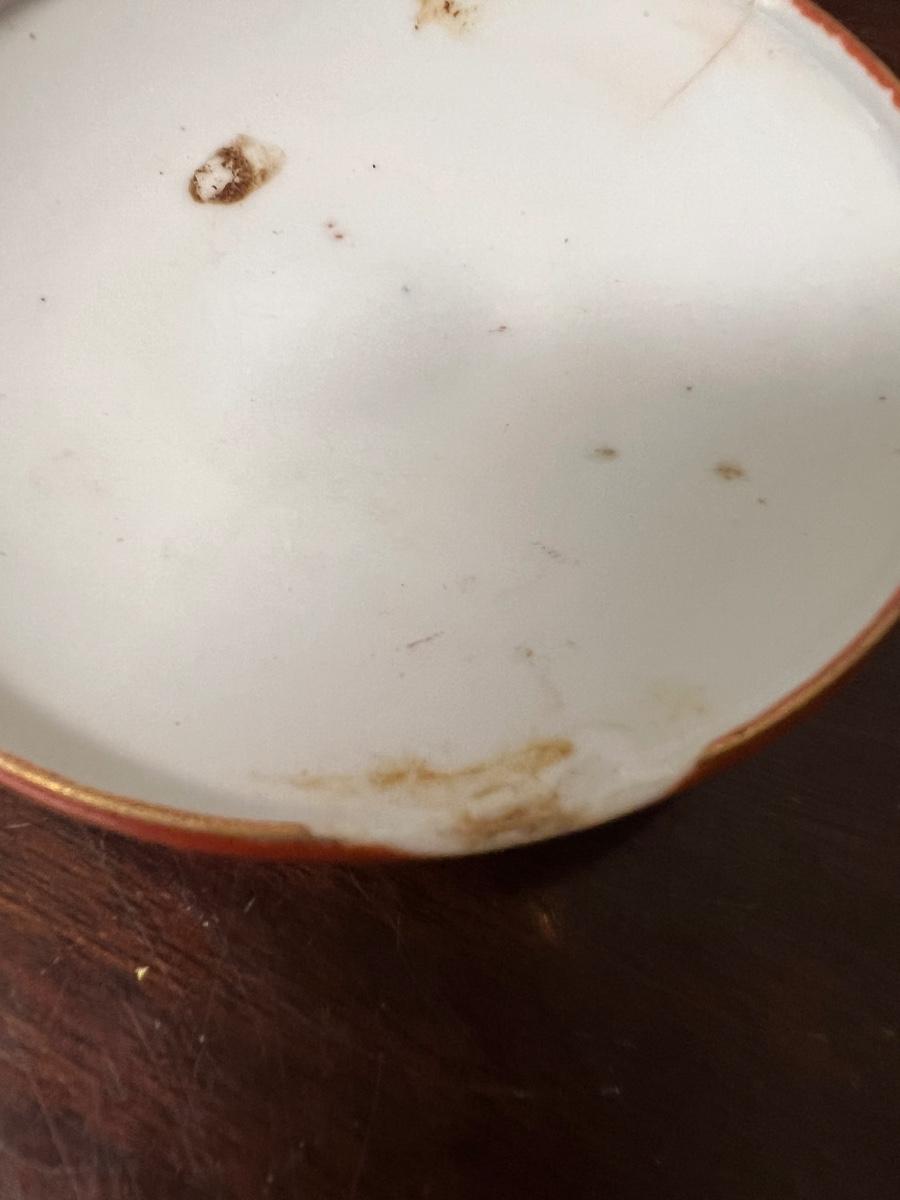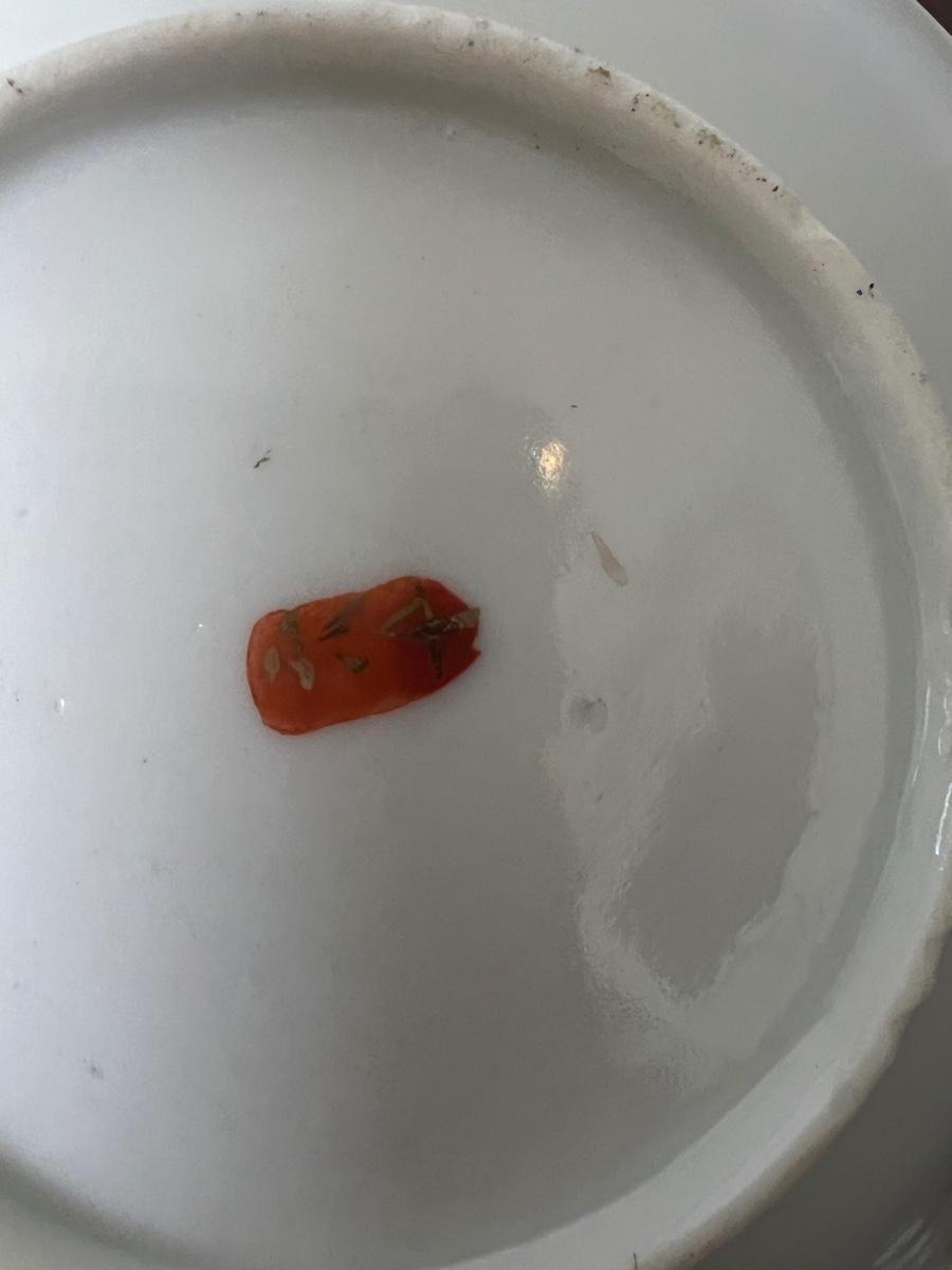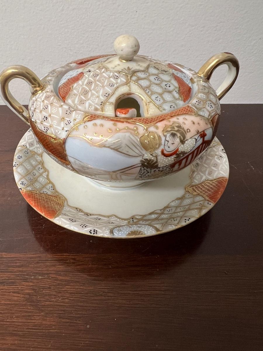 Oriental dishes & tin tea box, a couple of rust dishes have small chips, see photos