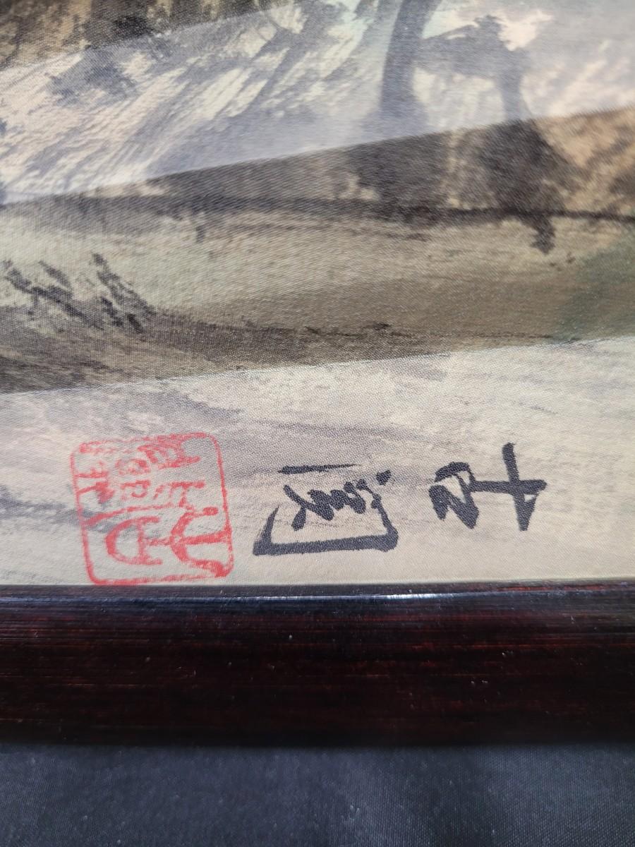 Looks like wood block print, signed. 45" wide x 25.5" tall. Pre-owned.
