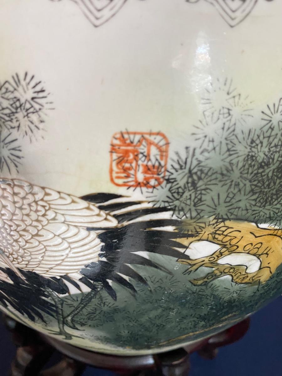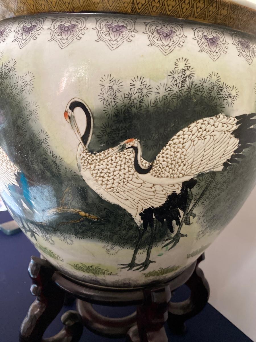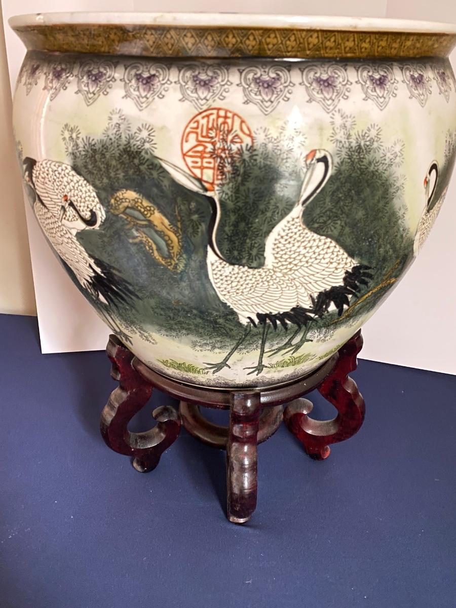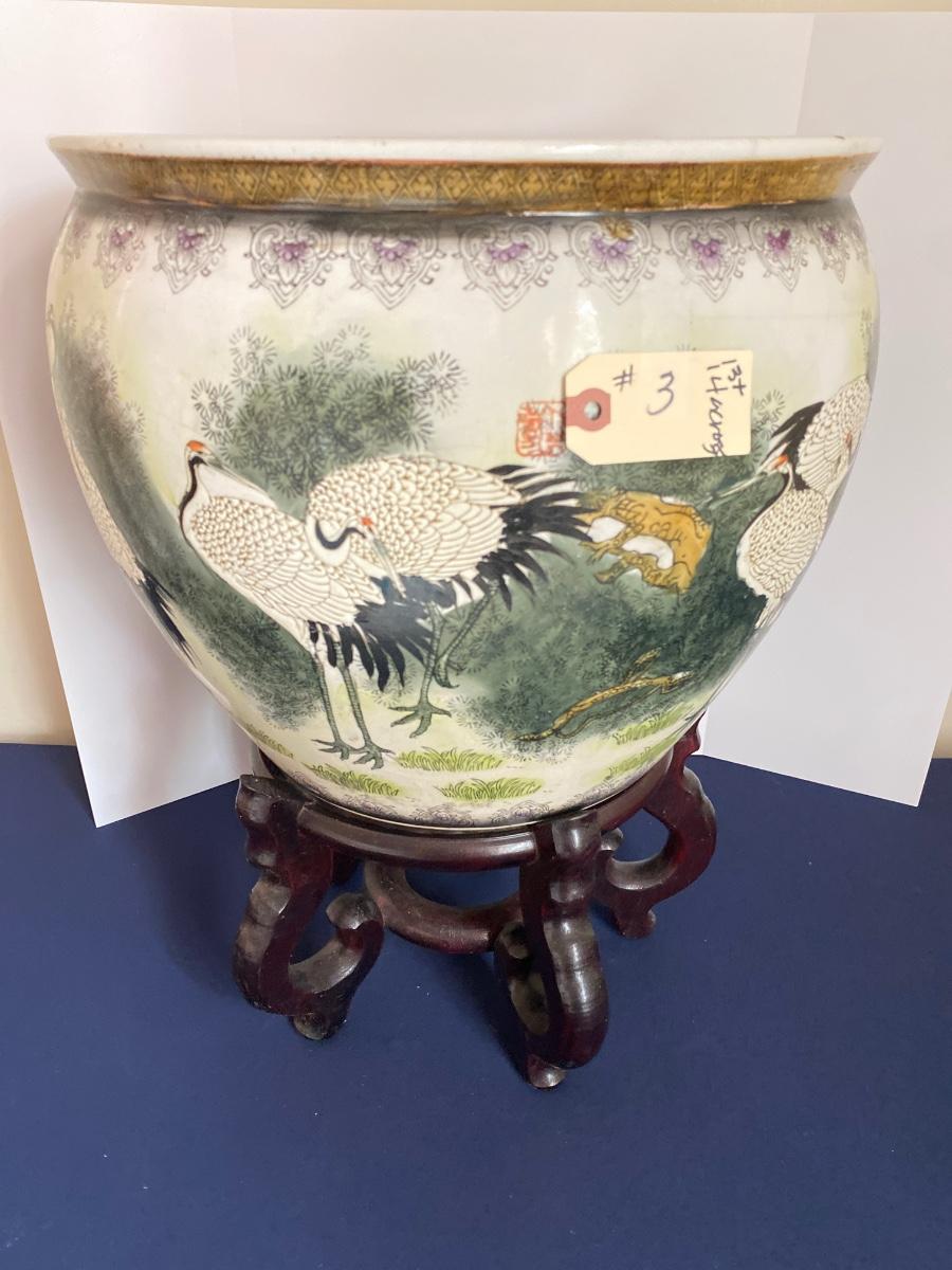 Oriental Fish Bowl Planter 13in Tall X 14in Across Top, Includes Base