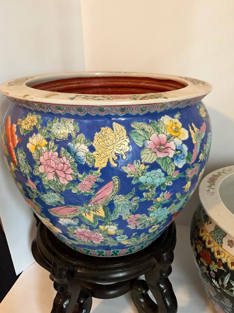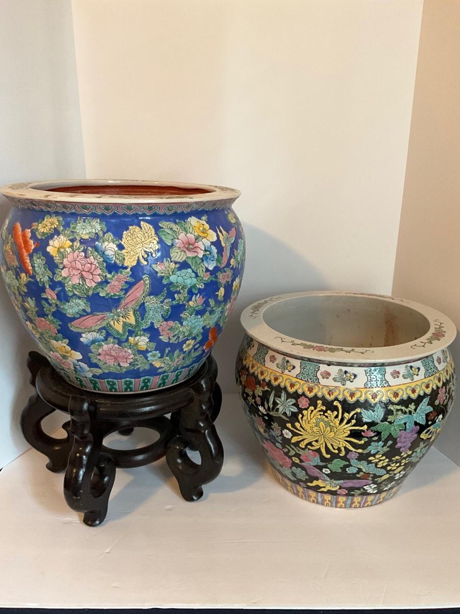 Oriental Fish Bowl Planter Lot As Pictured