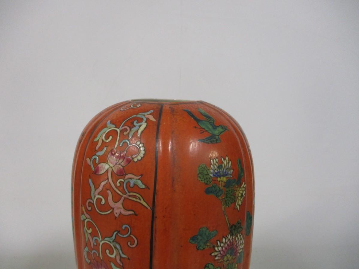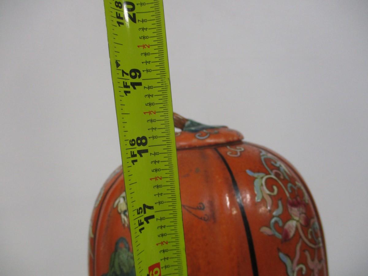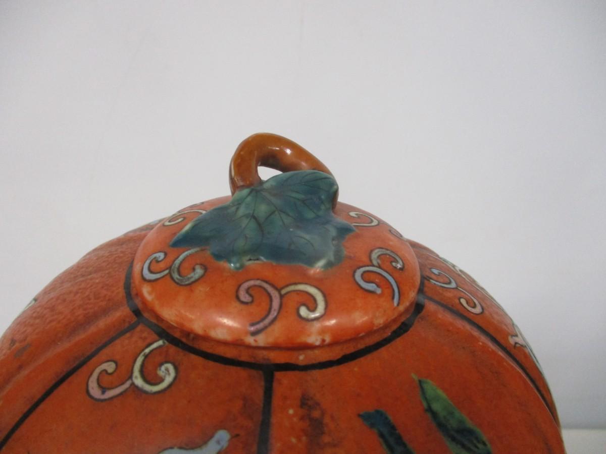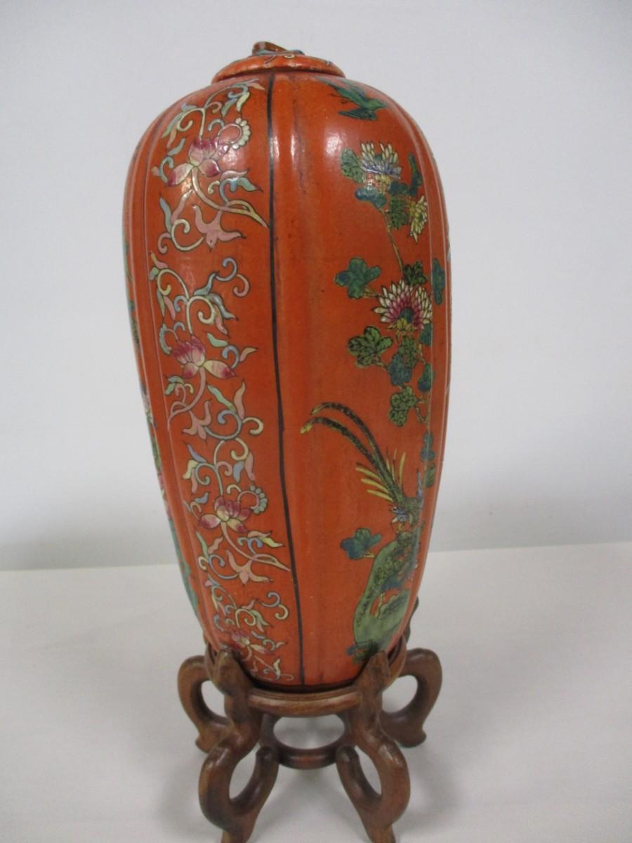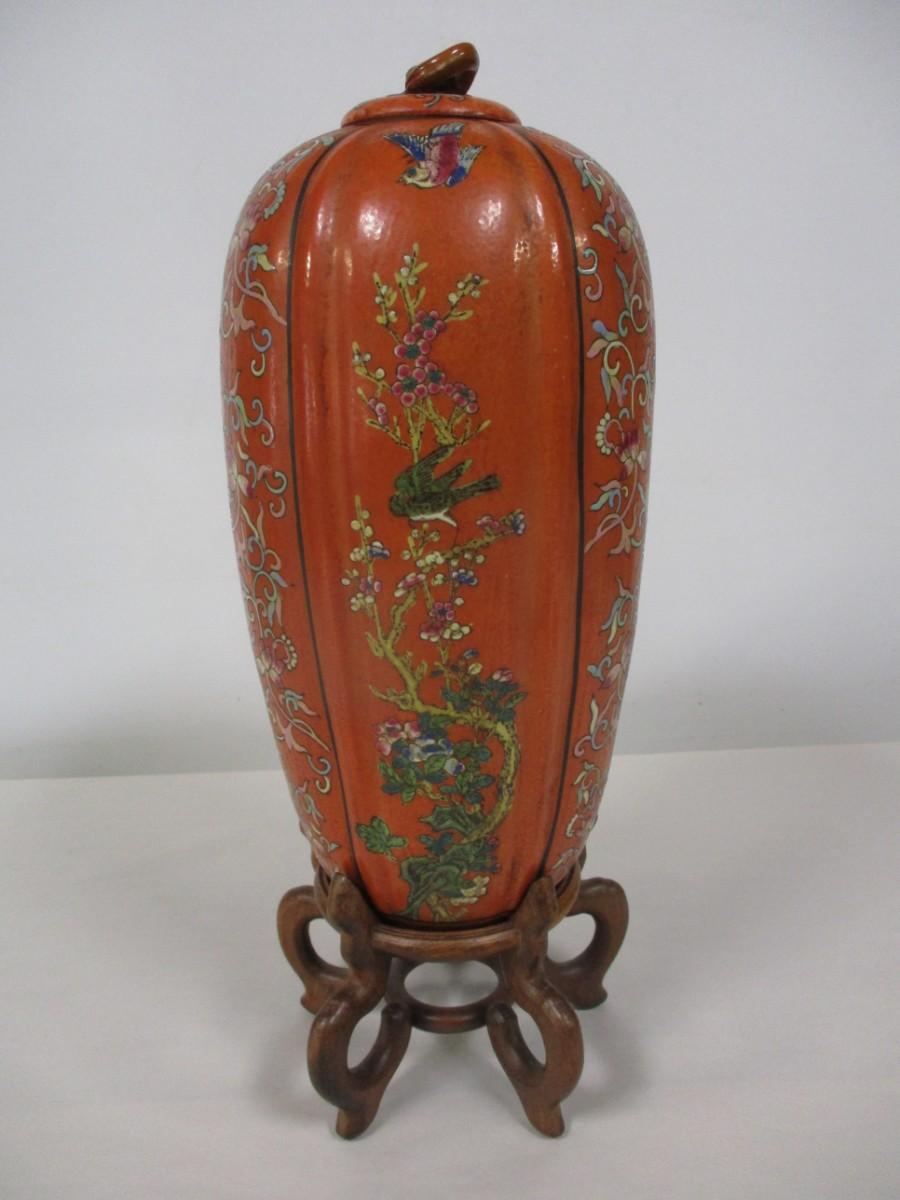 Oriental Melon Shaped Vase With Base & Lid