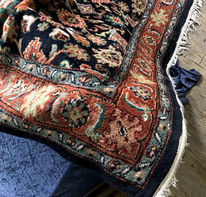 In black and rust with cotton backing and a non-skid pair here is an attractive Oriental/Persian style rug...65x95"....