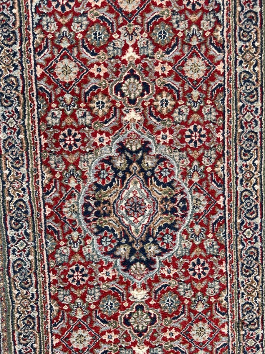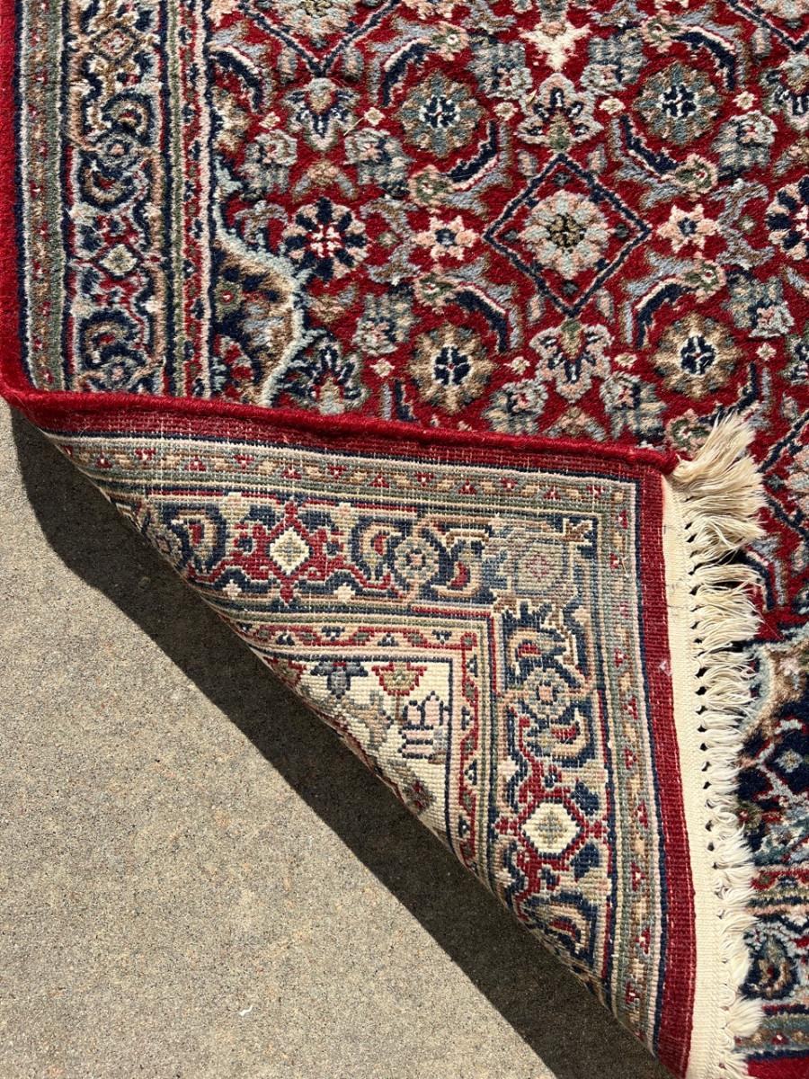 CONDITION: This is a good rug to put down in a high traffic area. The rug exhibits the expected traffic wear of a rug that has been on the floor.
