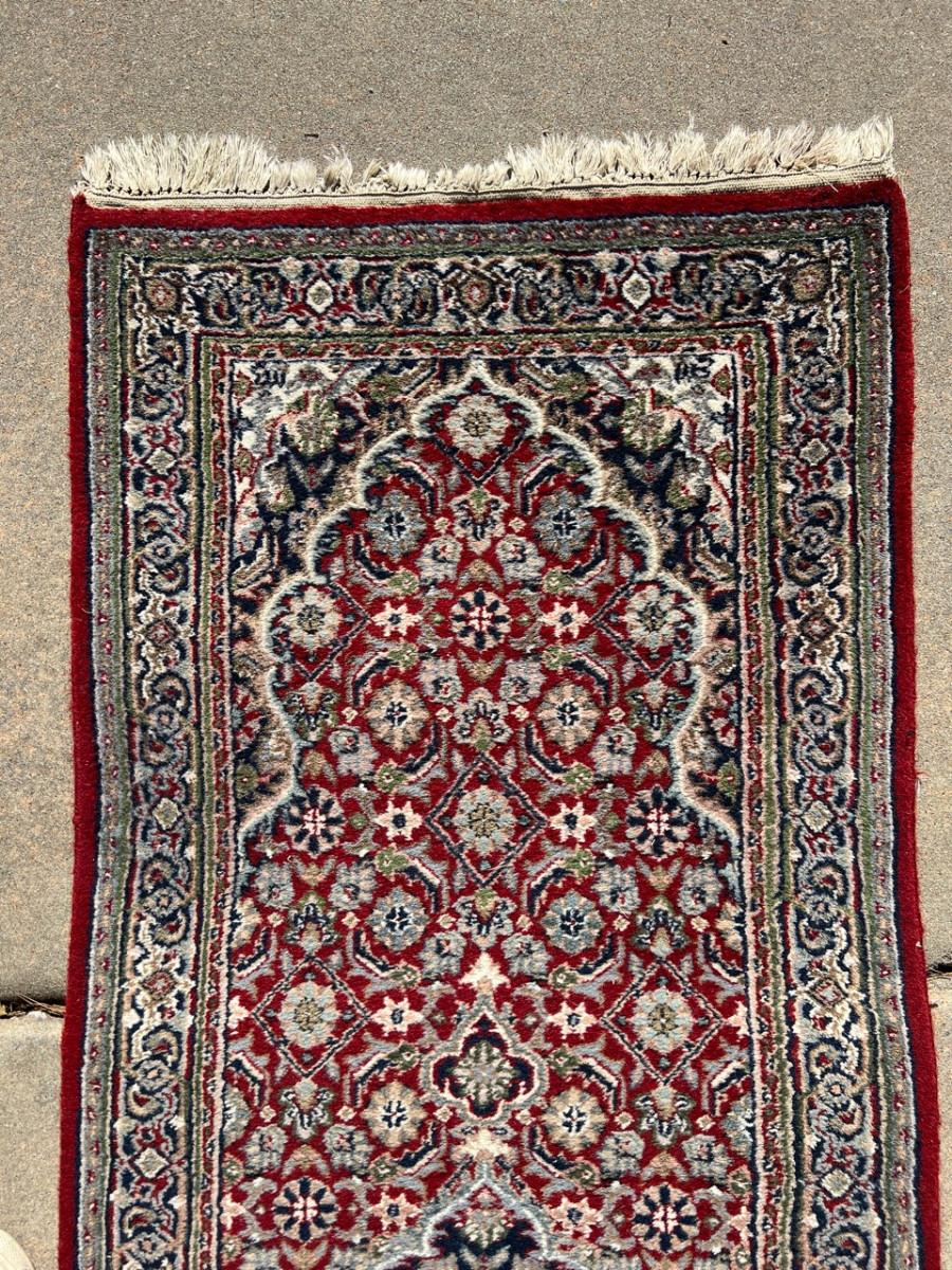 DESCRIPTION: These long “runner” rugs were originally woven as “Tekke” tent bands, but when they became particularly popular in the West, they were adapted to their present form. This beautiful, over-all saturated red rug is detailed with multiple, elaborate foliate borders framing a central field with a double mirhab termination at either end, again, a later adaptation of the older Anatolian prayer rug design, creating a formal-style rug.