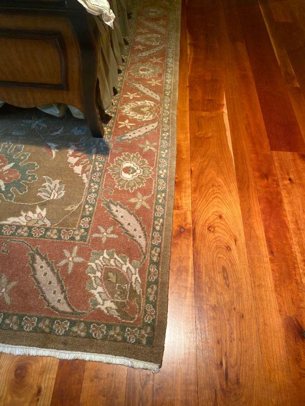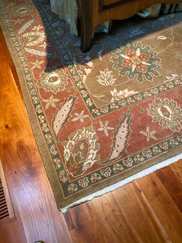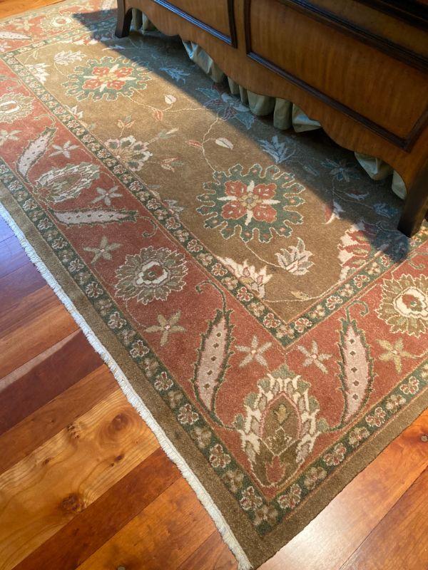 Oriental style Agra Carpet with green, burgundy and soft white floral area rug measuring 10' x 8'