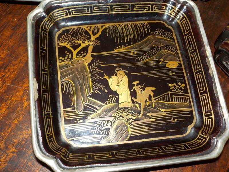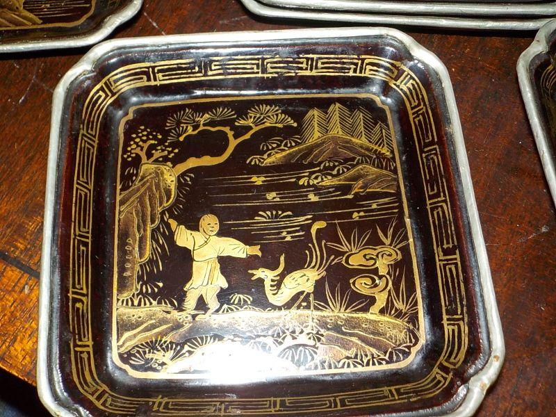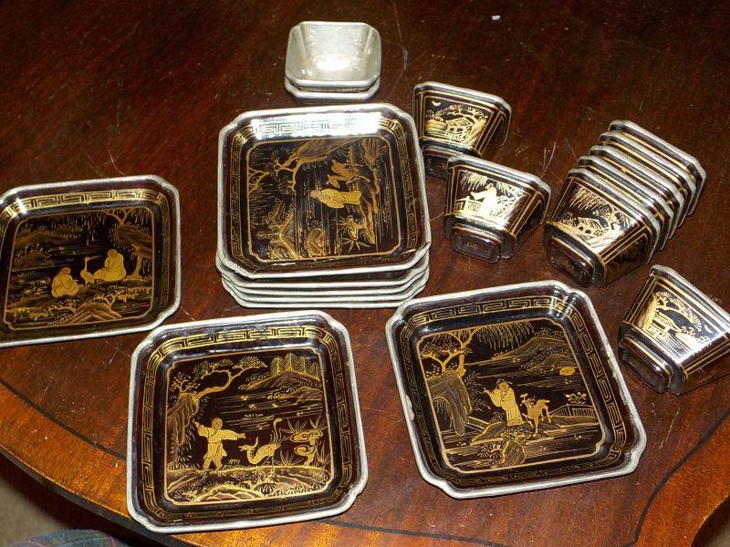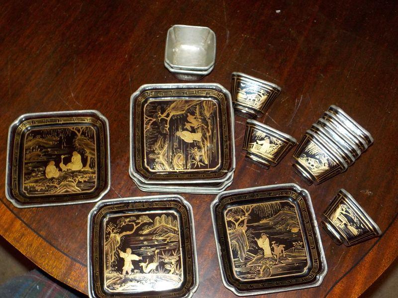 Oriental Tea and Sake set with gold inlay with 8 pieces & total of 18.