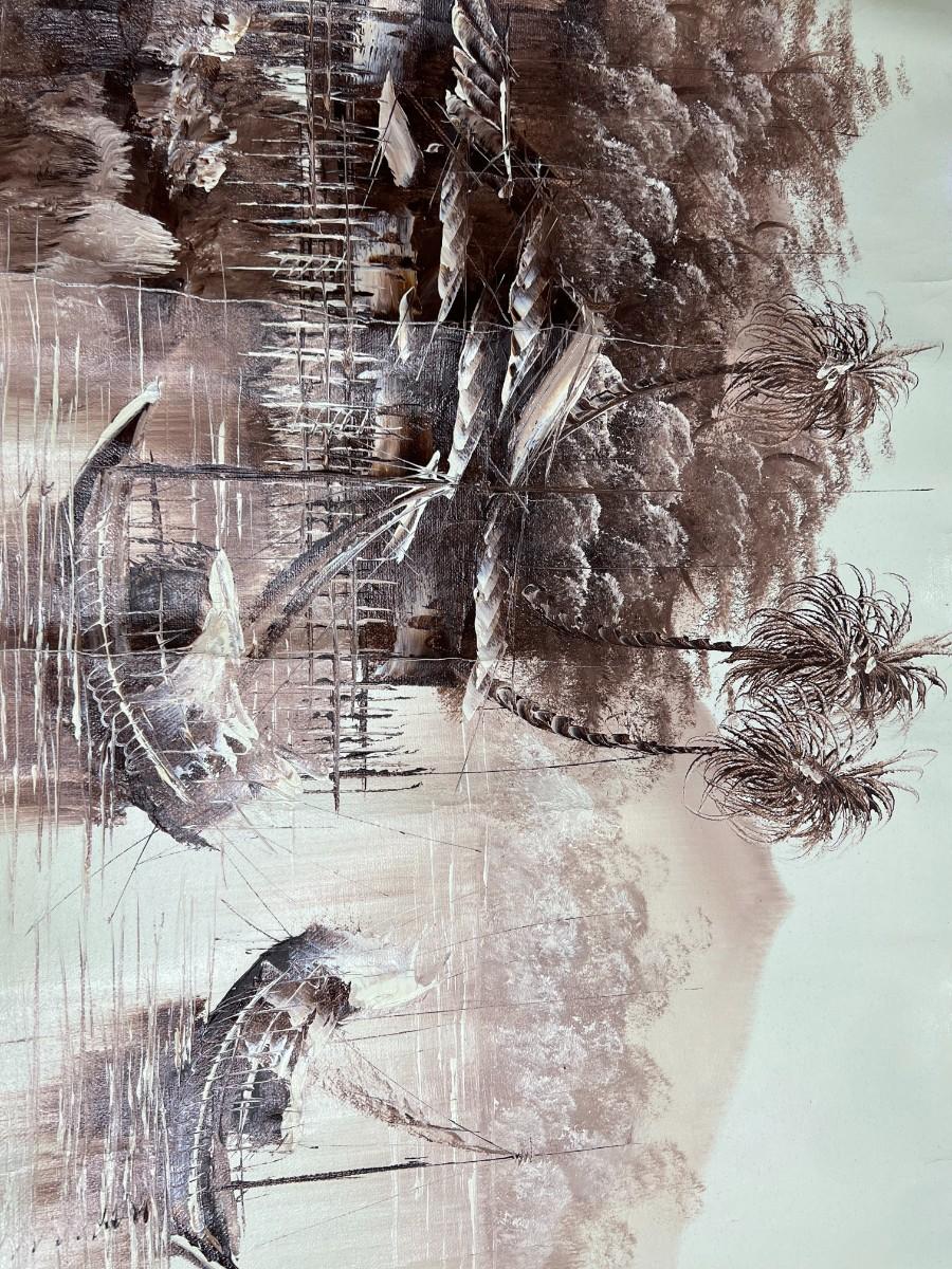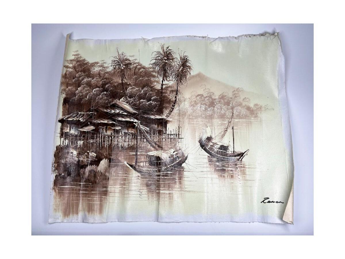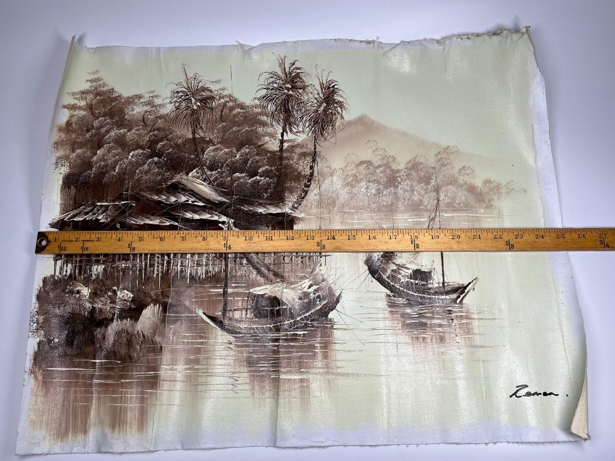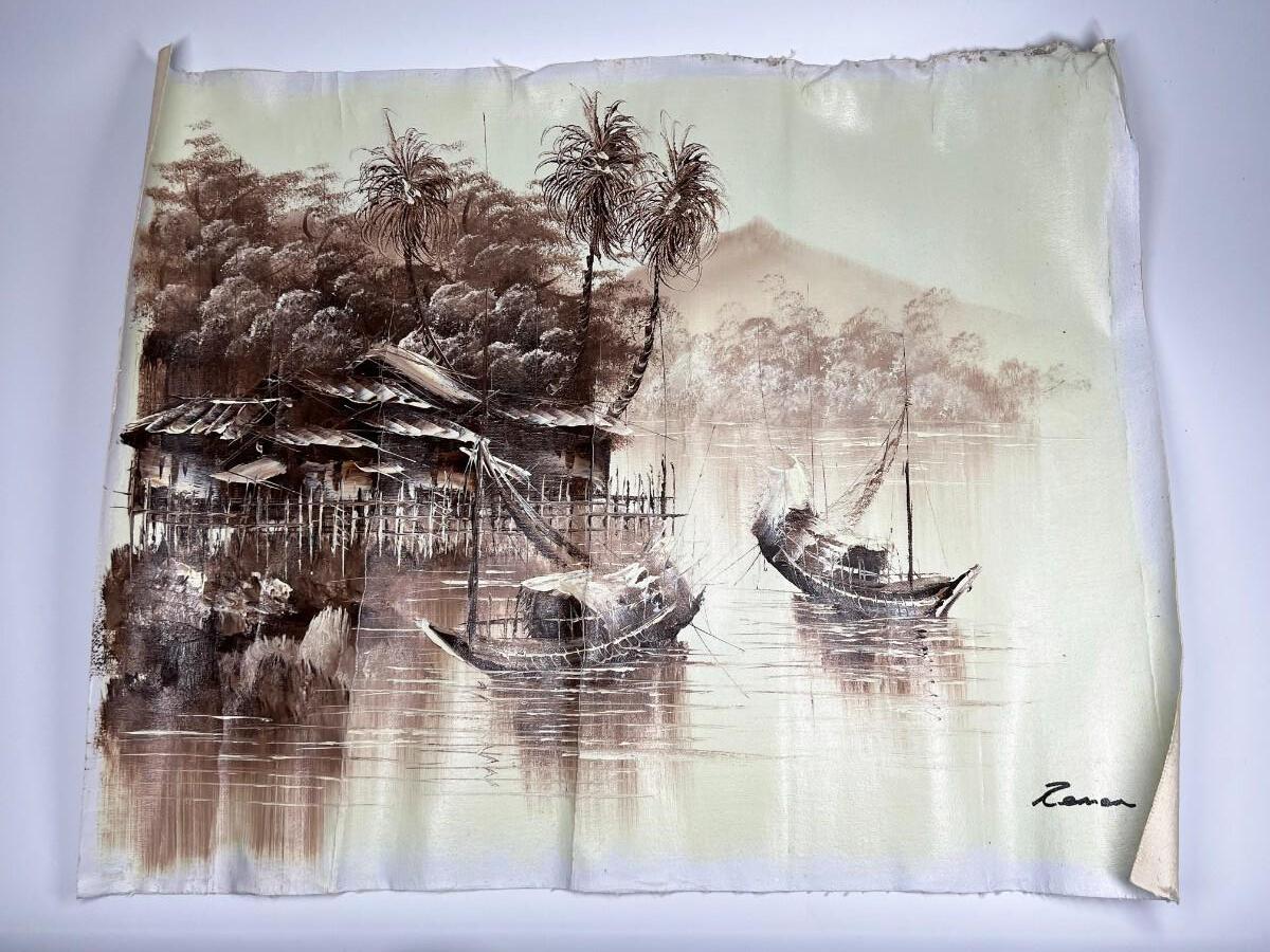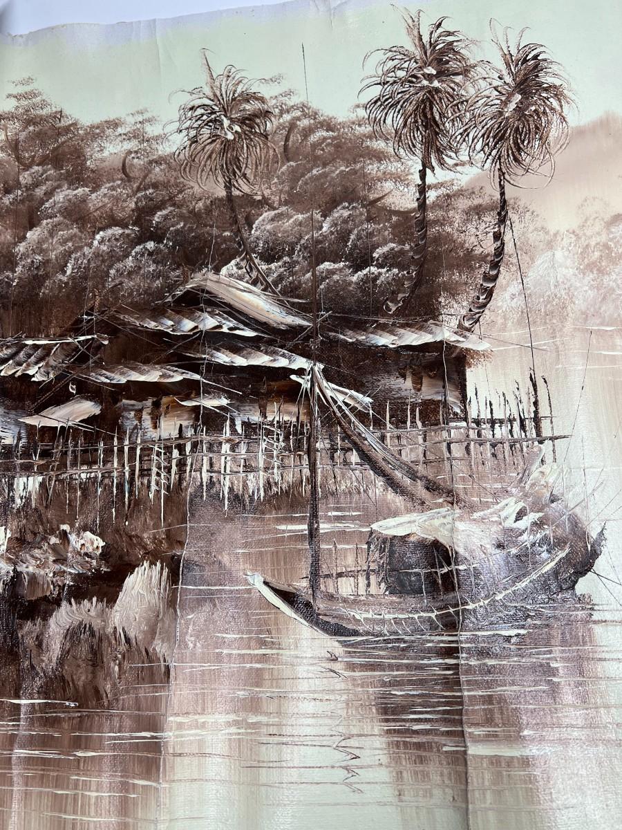 Oriental Tropical Fishing Village Souvenir Oil Painting on Rolled Cloth Canvas