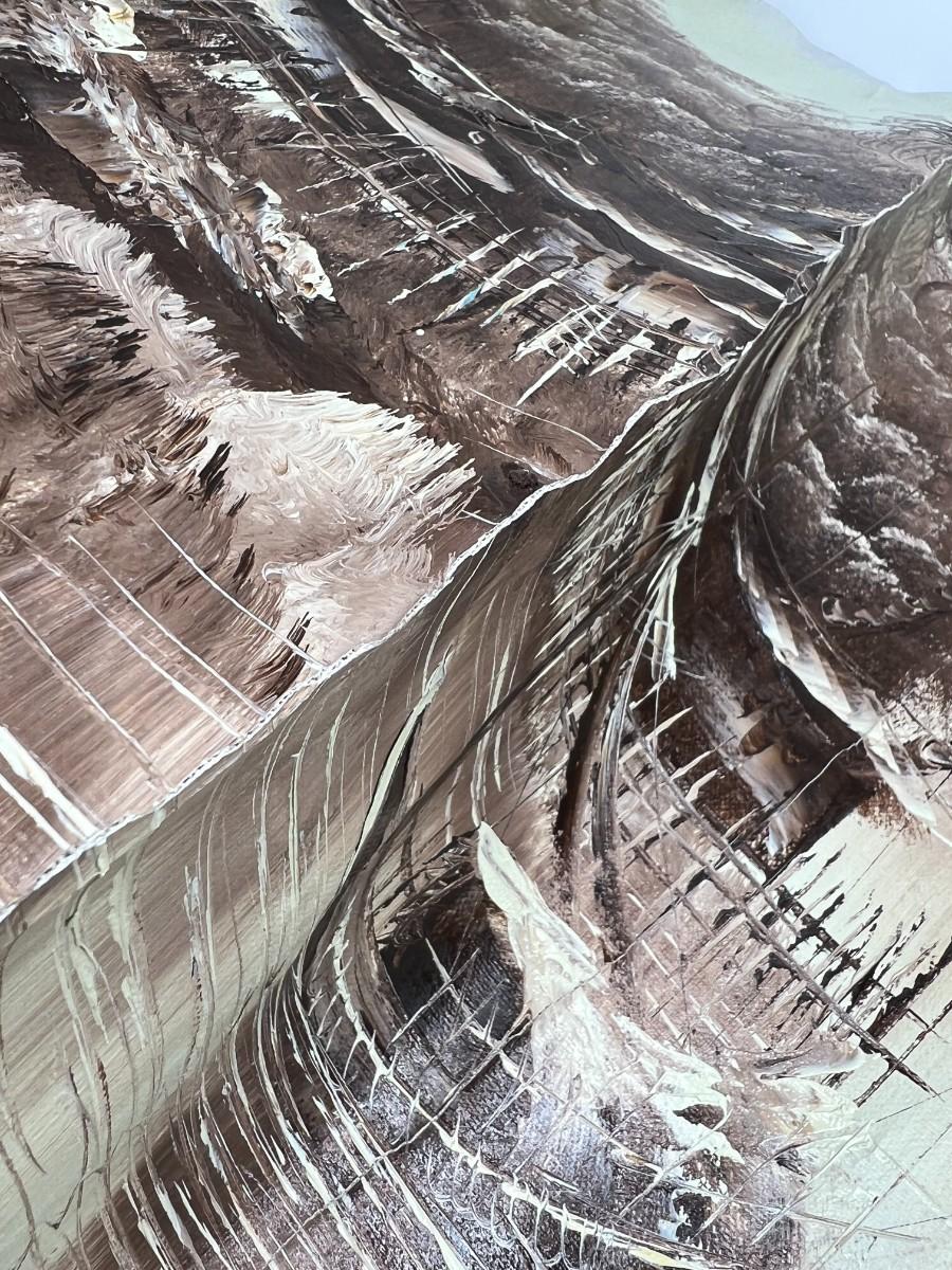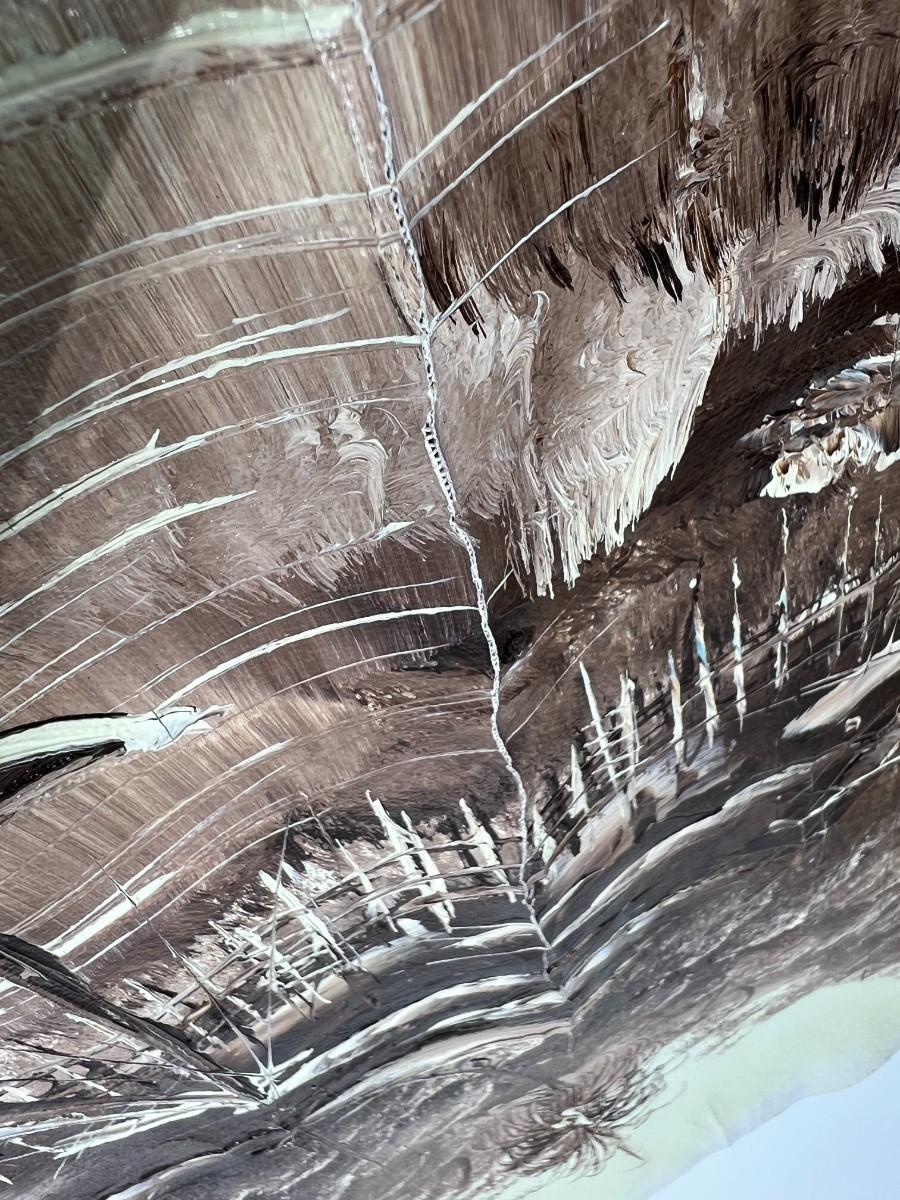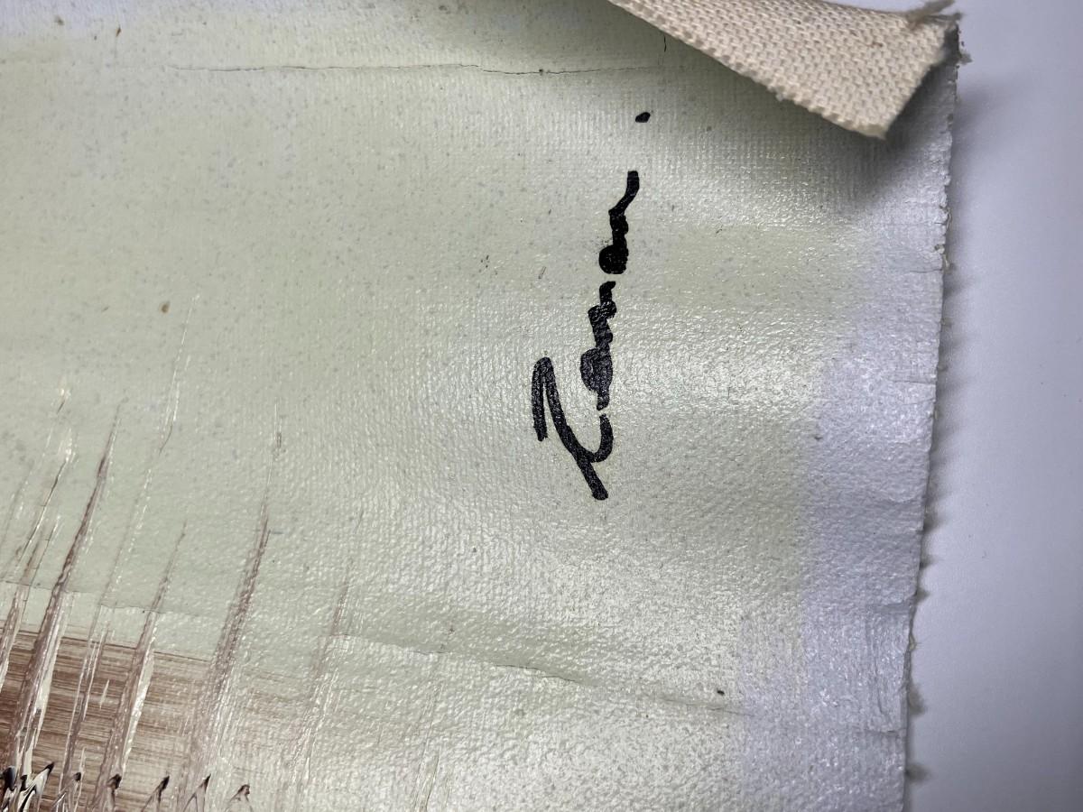 There is some cracking to the paint because of the material it was painted on and because of the way it has been rolled/stored. Check pictures for more details and for sizing.