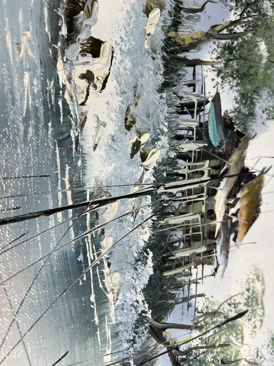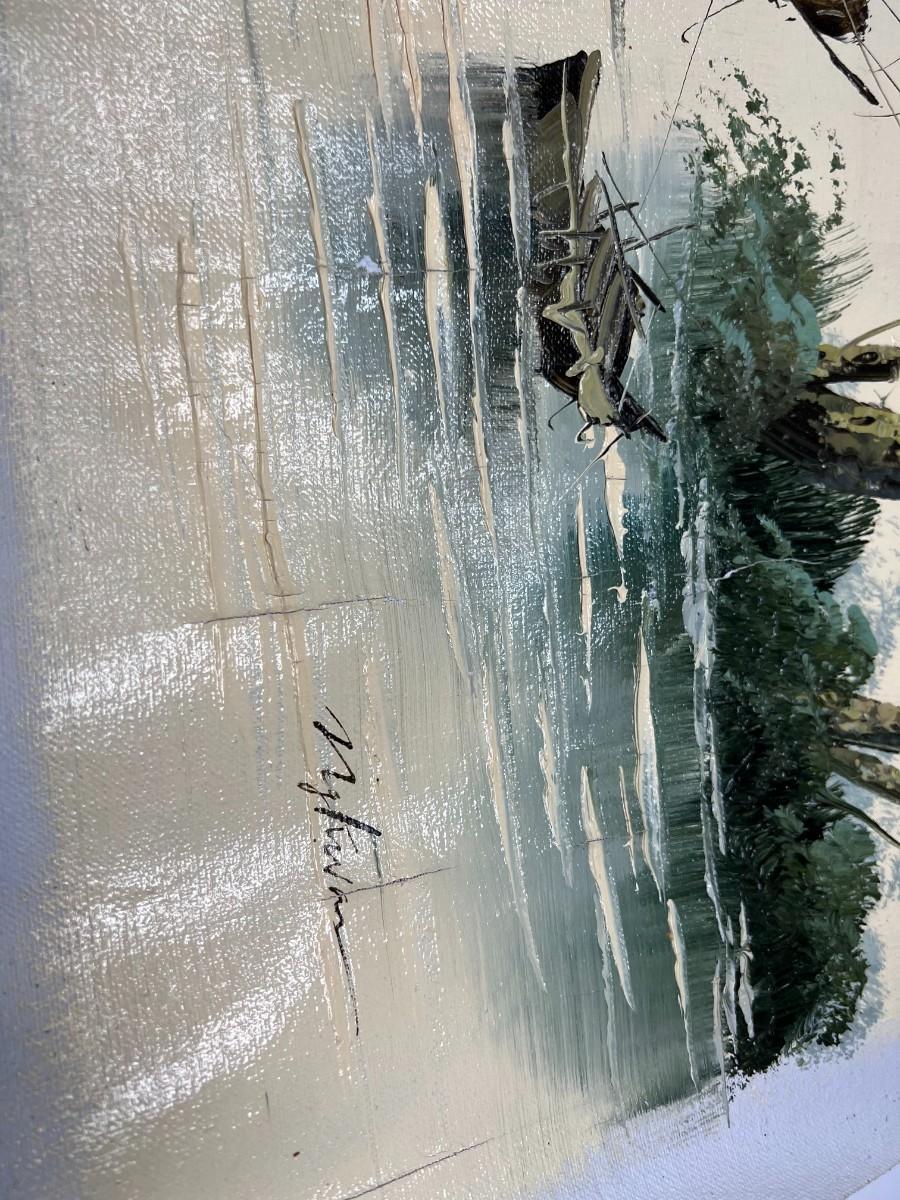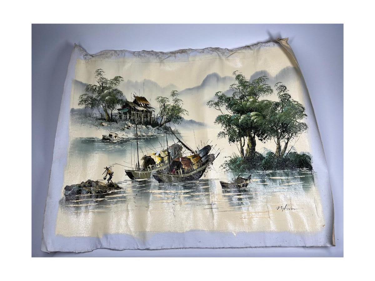 Oriental Tropical Fishing Village Souvenir Green Oil Painting on Rolled Cloth Canvas