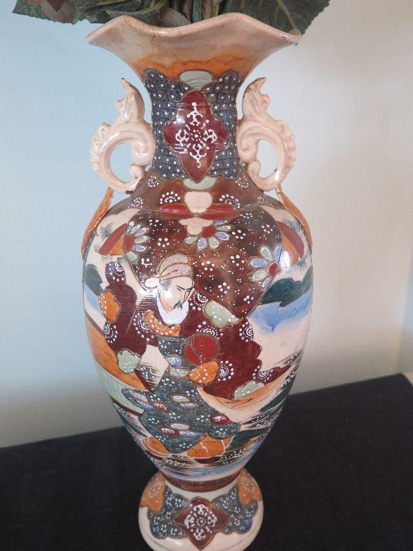 Ceramic urn painted very colorfully with an Asian theme. Stands 19 inches tall without flowers, but flowers are included. Please review all photos and read Terms and Conditions before placing a bid. Pick up is Wednesday, November 20 from 4-7pm and Saturday, November 23 from 9am-2pm in Mantua, New Jersey. All sales are final. All sales are as is, where is. Please bring all boxes, tools, and muscle needed to remove your items. Any photo props are not included. All measurements are approximate. Items come from dog-friendly home.