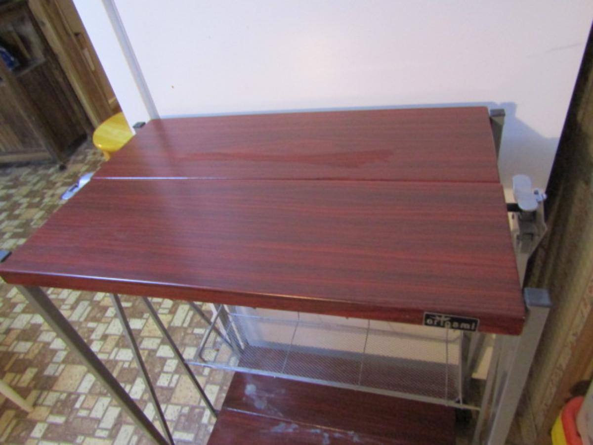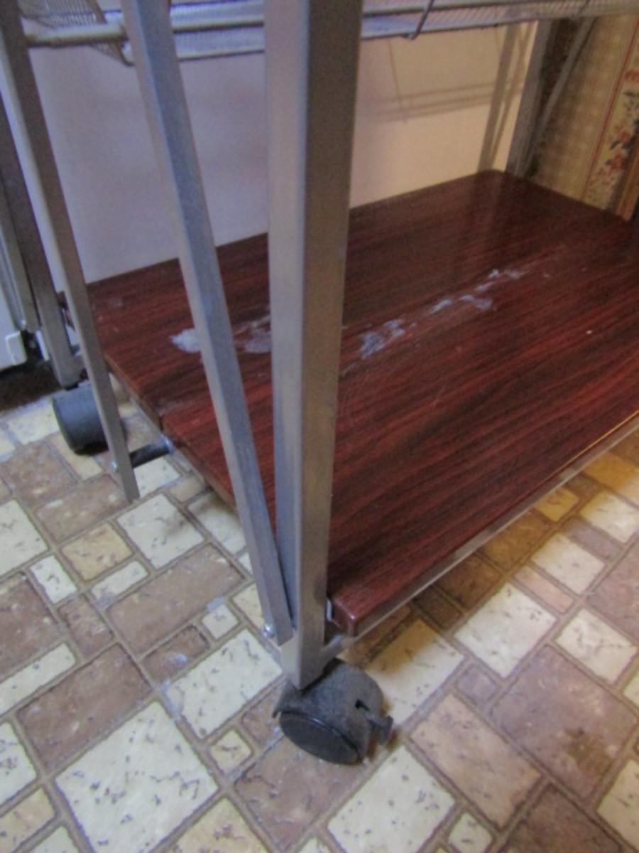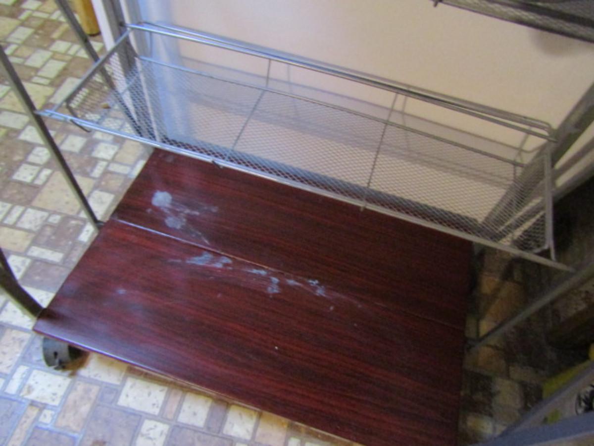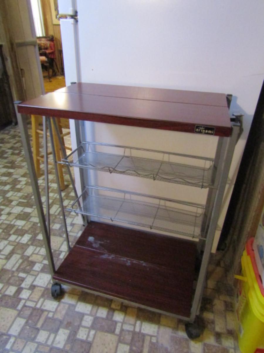 Origami Rolling Shelf with Attached Wire Storage Baskets- Choice A. Bottom shelf needs to be cleaned.