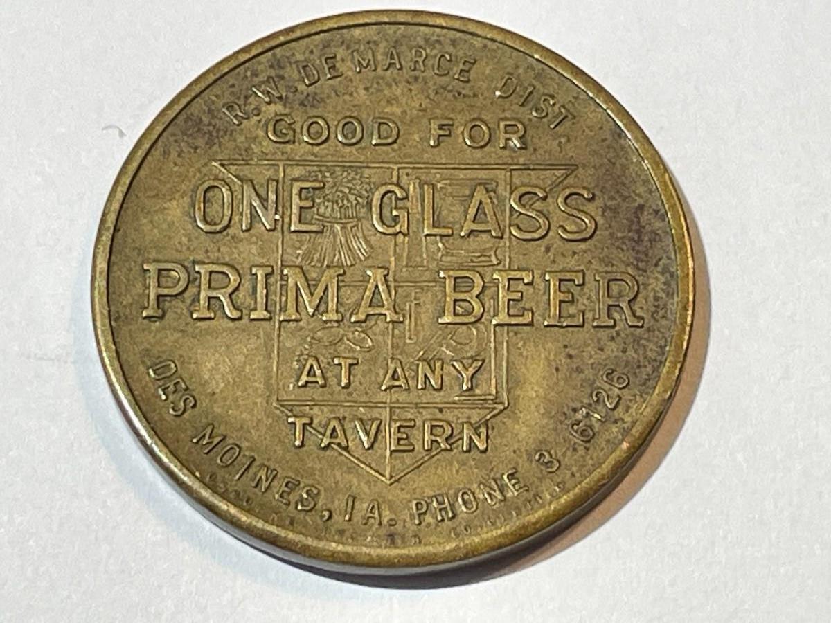 Original 1894-1935 Prima Brewing Company Des Moines, Iowa Beer Advertising Token as Pictured. $5