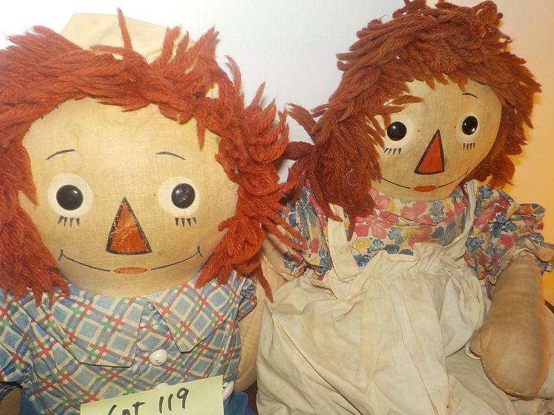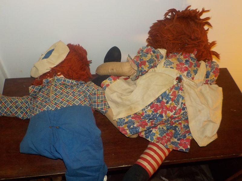 Original 1940's Raggedy Ann and Andy plush dolls.