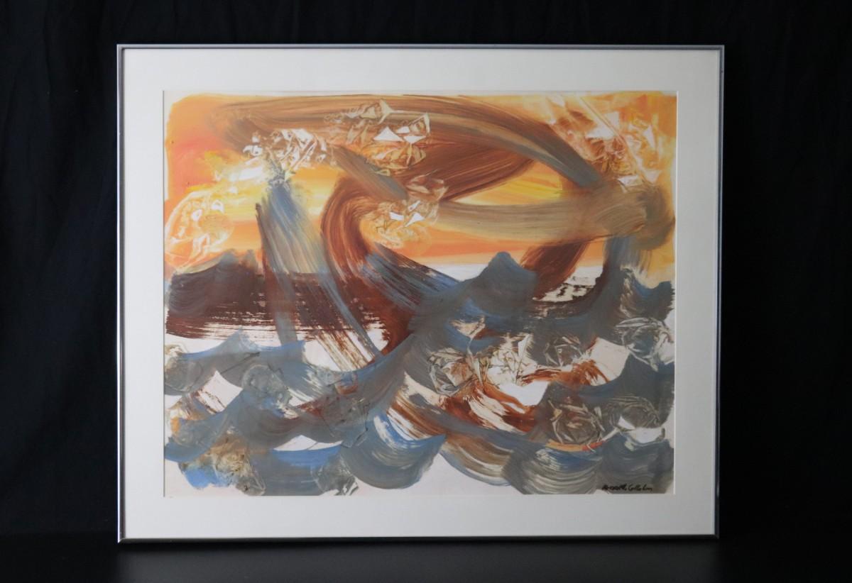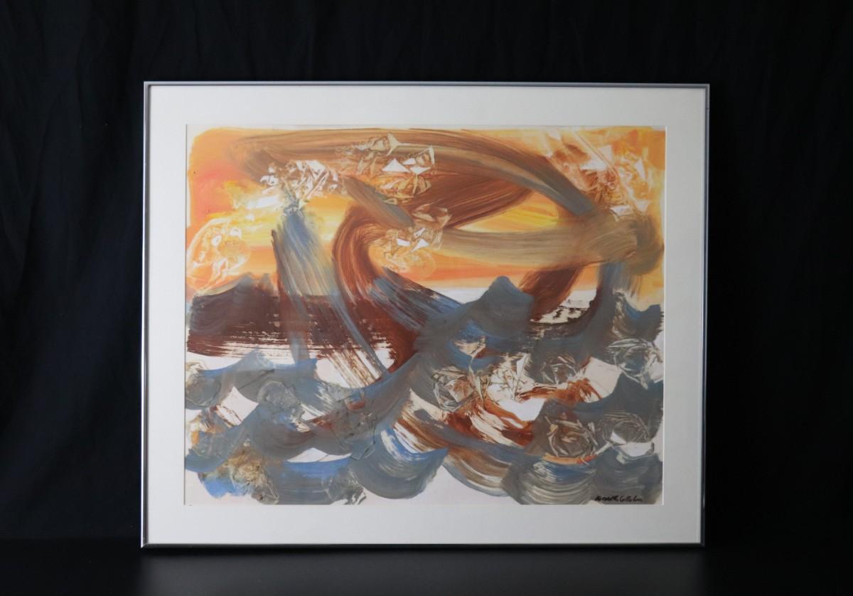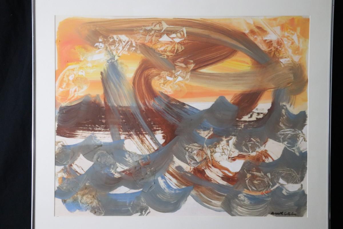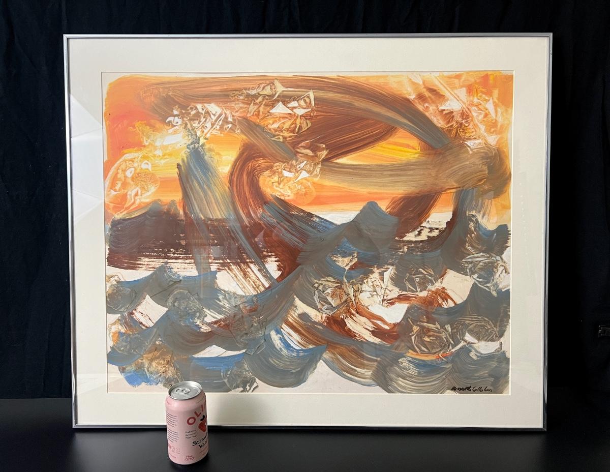 Large Original 1976 Kenneth Callahan (American, 1905 - 1986) Oil and Tempera on Paper Titled "Sunset". Vibrant colors and motion depicted in this piece of art. Painting is approximately 23 x 29 inches (not including frame), as shown in images. From the private collection of a close friend of the artist. In good condition, as shown.