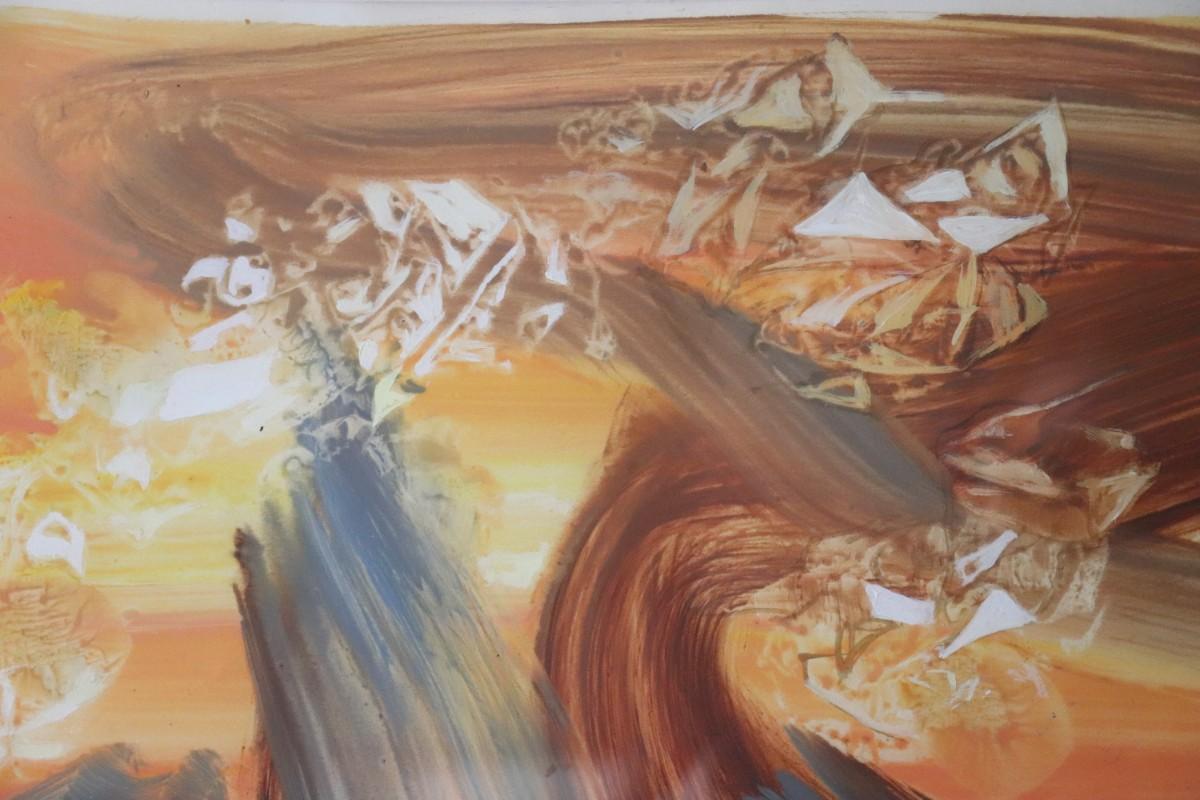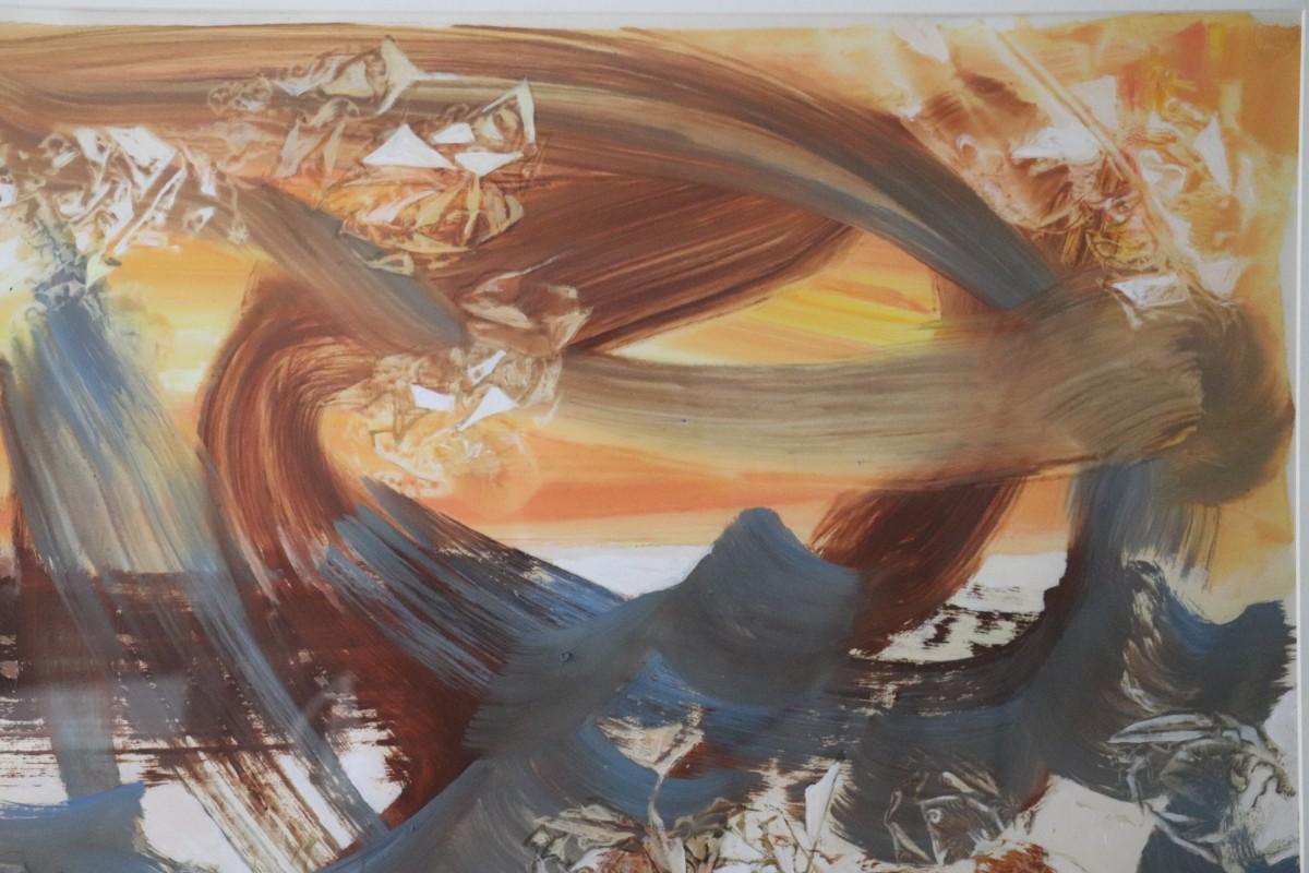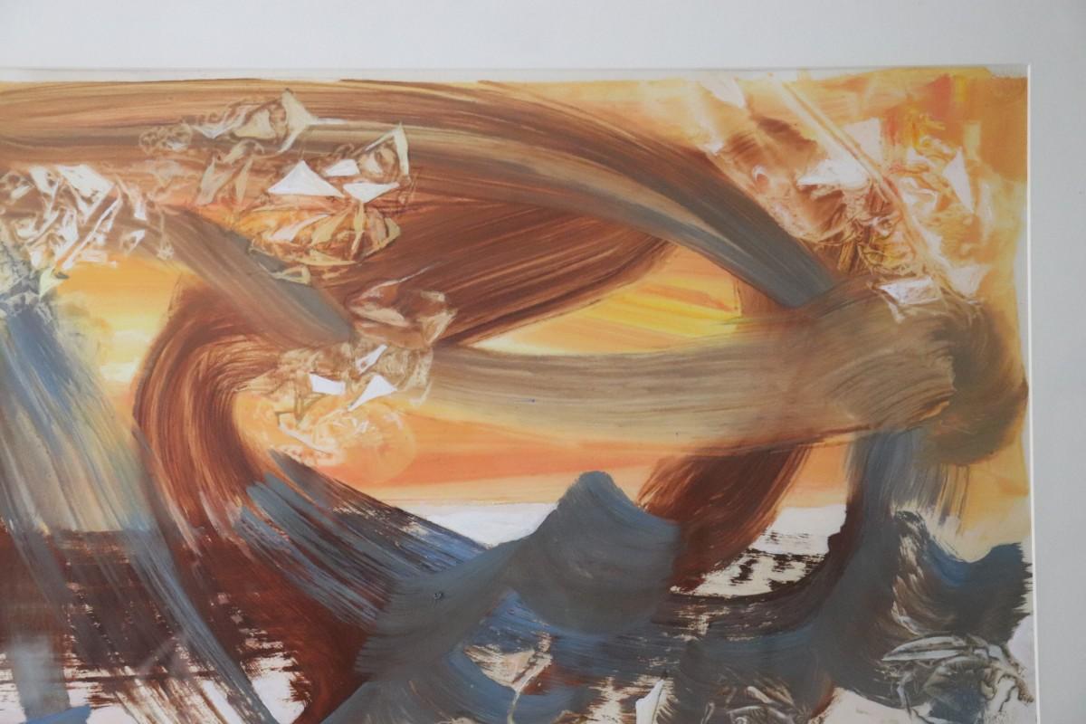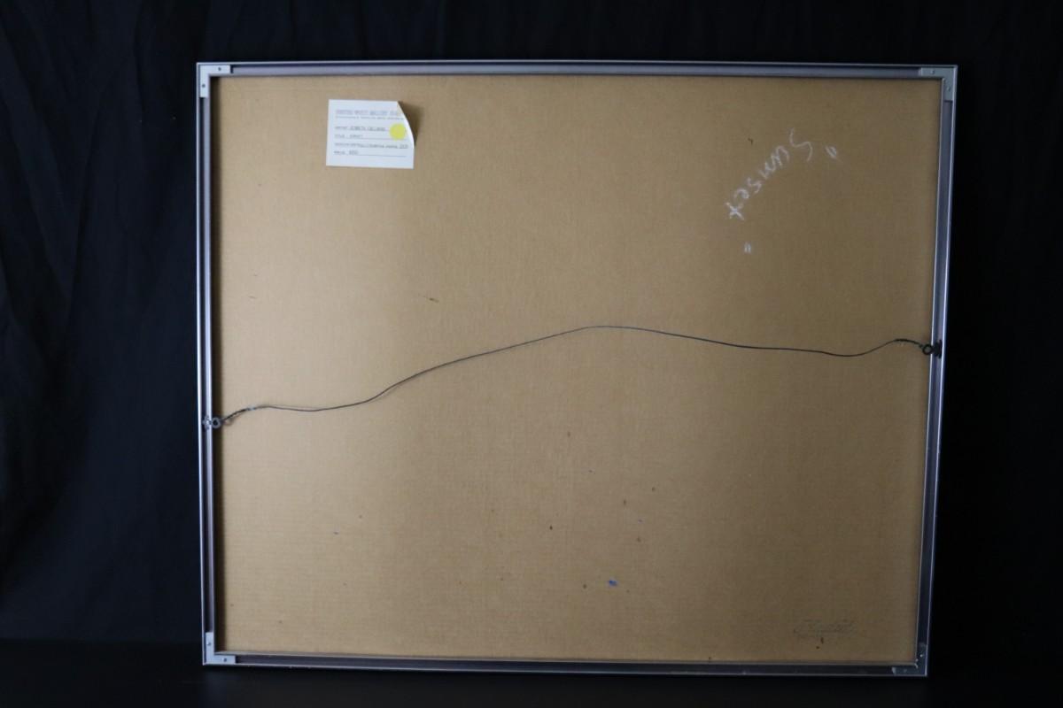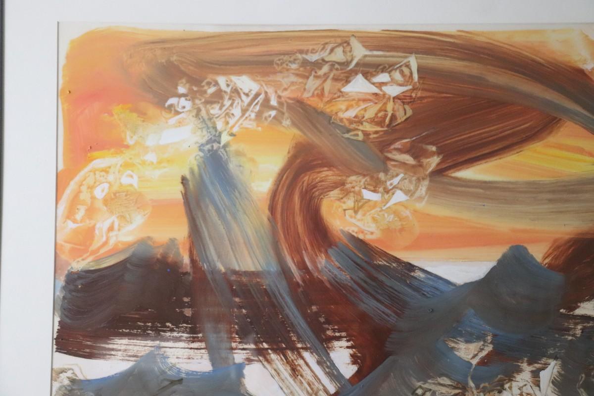 Large Original 1976 Kenneth Callahan (American, 1905 - 1986) Oil and Tempera on Paper Titled "Sunset". Vibrant colors and motion depicted in this piece of art. Painting is approximately 23 x 29 inches (not including frame), as shown in images. From the private collection of a close friend of the artist. In good condition, as shown.