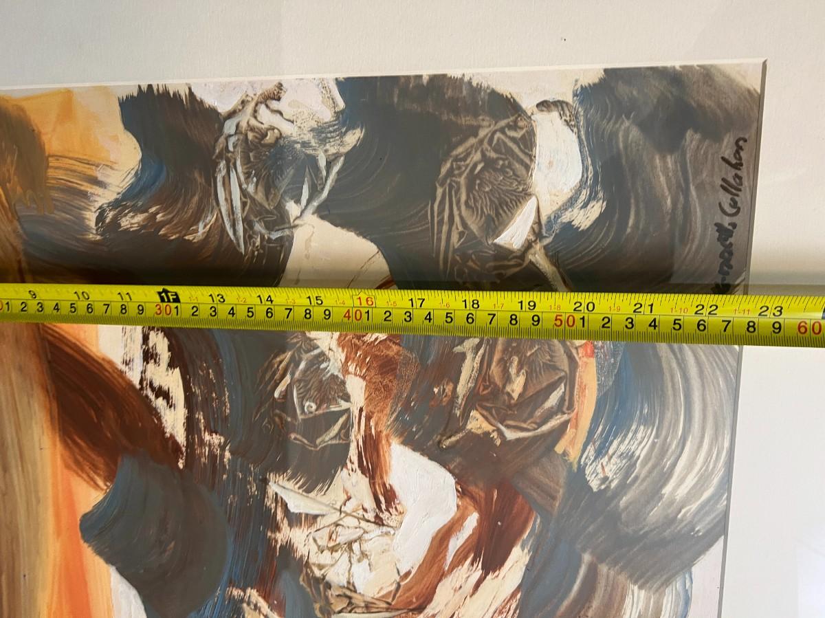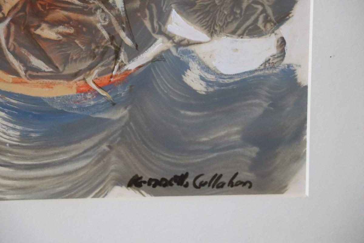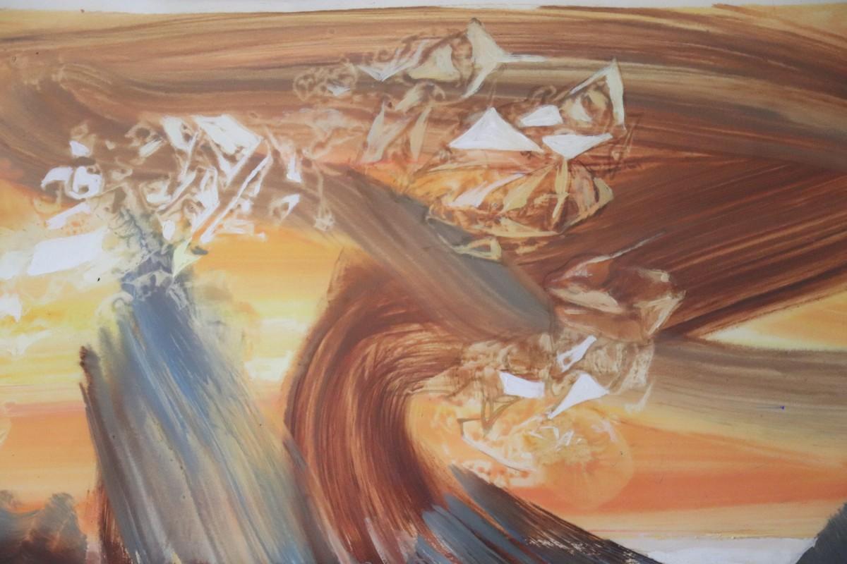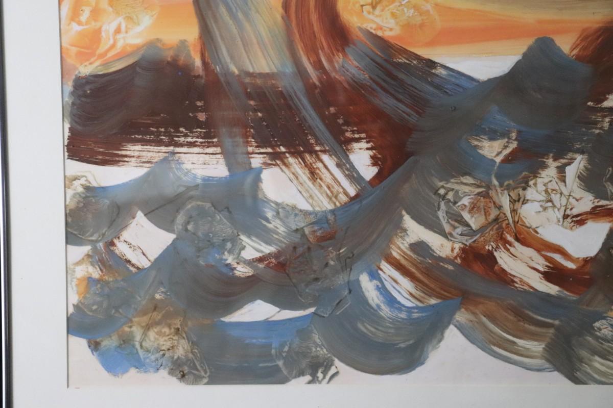 Large Original 1976 Kenneth Callahan (American, 1905 - 1986) Oil and Tempera on Paper Titled "Sunset". Vibrant colors and motion depicted in this piece of art. Painting is approximately 23 x 29 inches (not including frame), as shown in images. From the private collection of a close friend of the artist. In good condition, as shown.