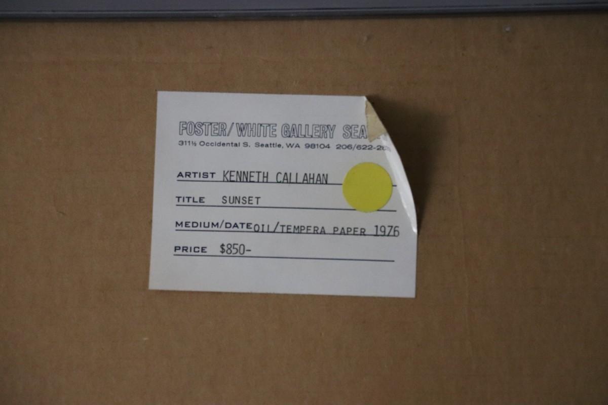 1976 Kenneth Callahan (American, 1905 - 1986) Original Oil and Tempera on Paper Titled "Sunset"