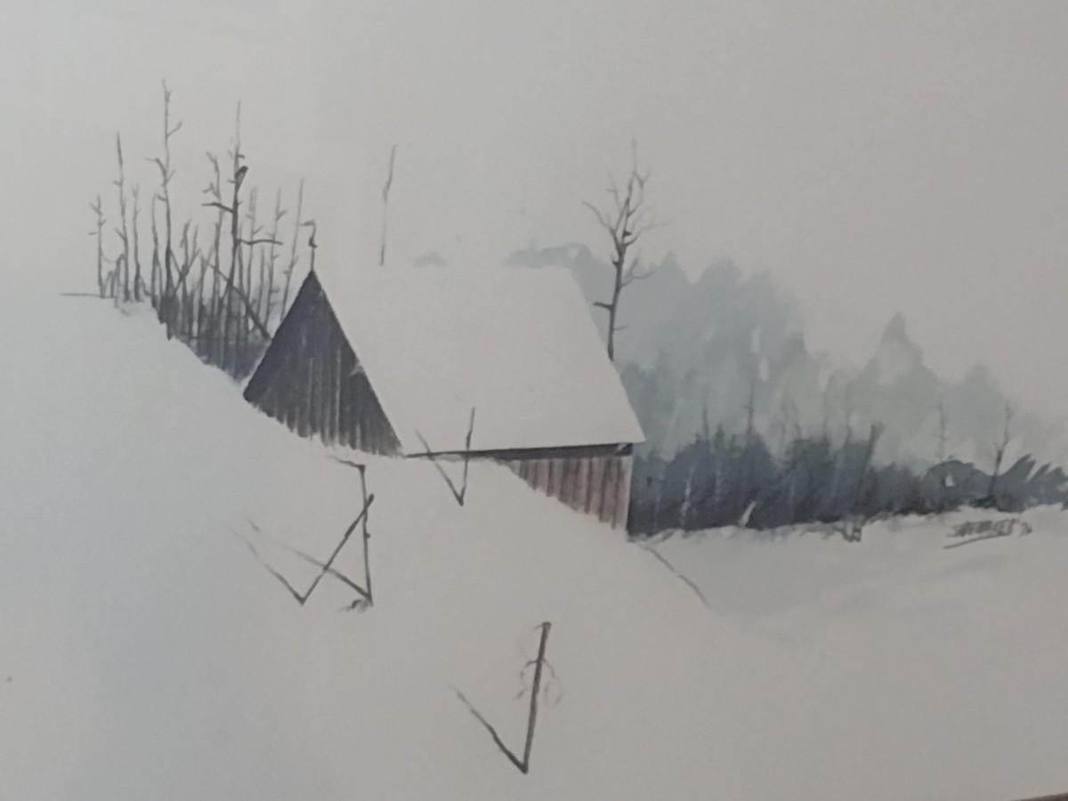 Original Watercolor Framed Art Painting 'Ashe County Cold' by Steven Shoemaker