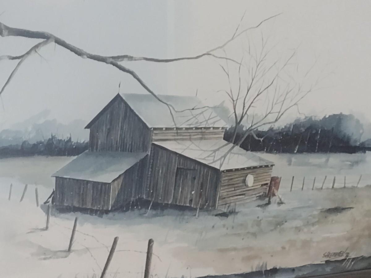Original Watercolor Framed Art Painting 'Ashe County Farm' by Steven Shoemaker