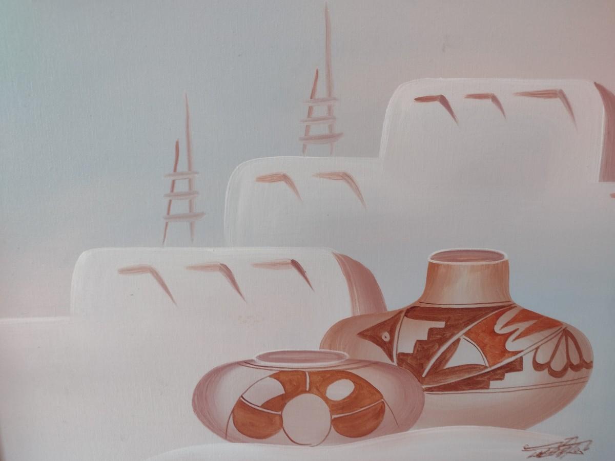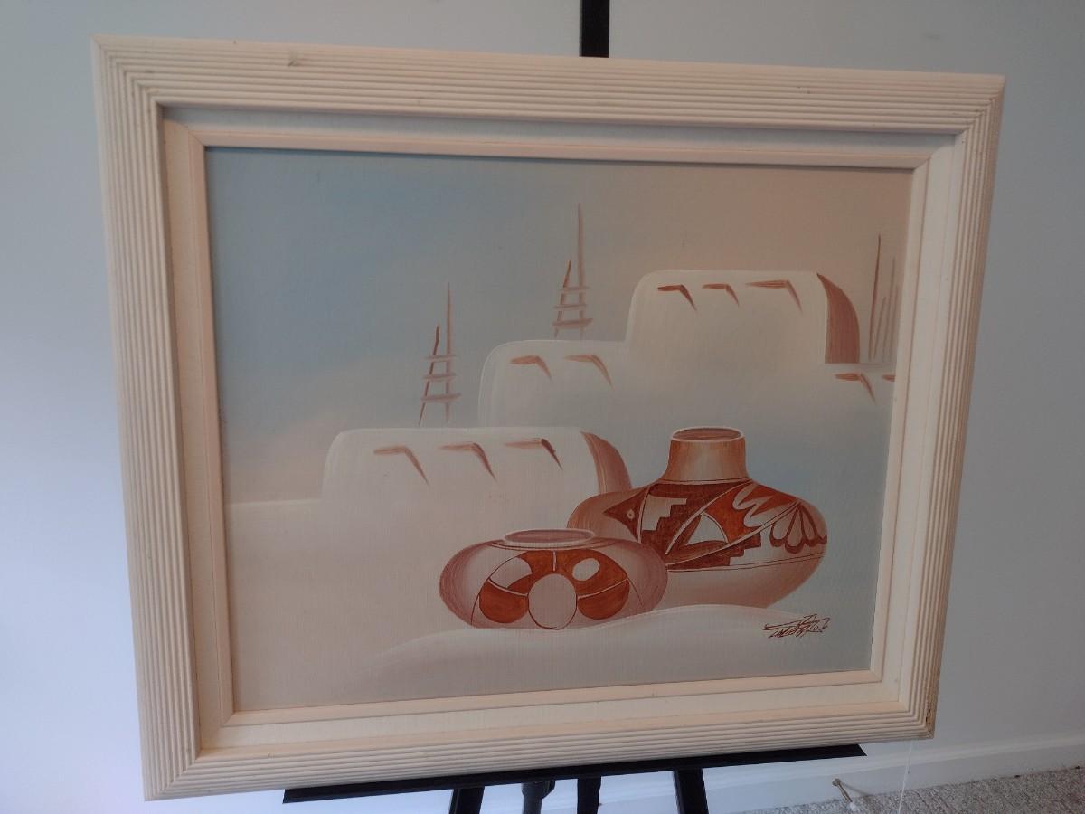 Original Framed Art on Canvas Southwestern Pottery Signed by Artist