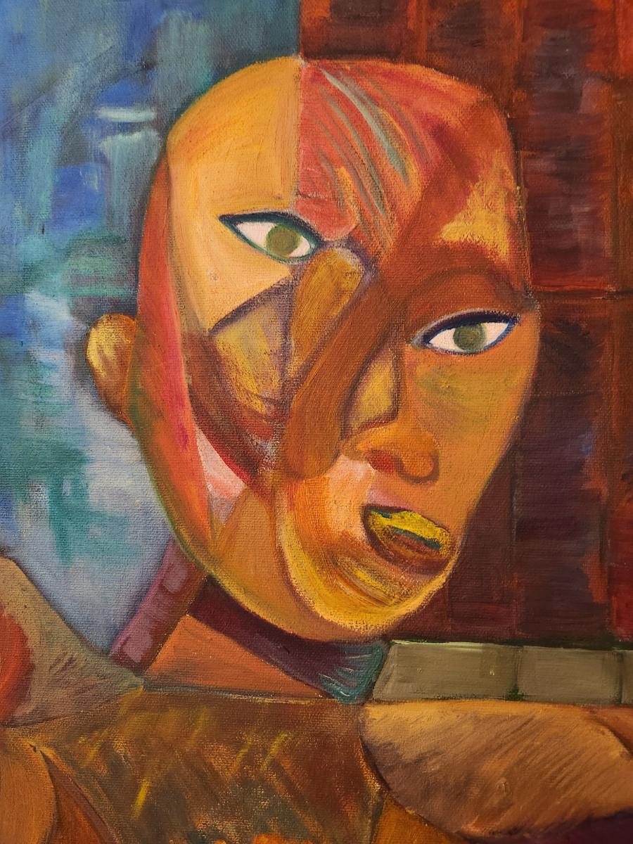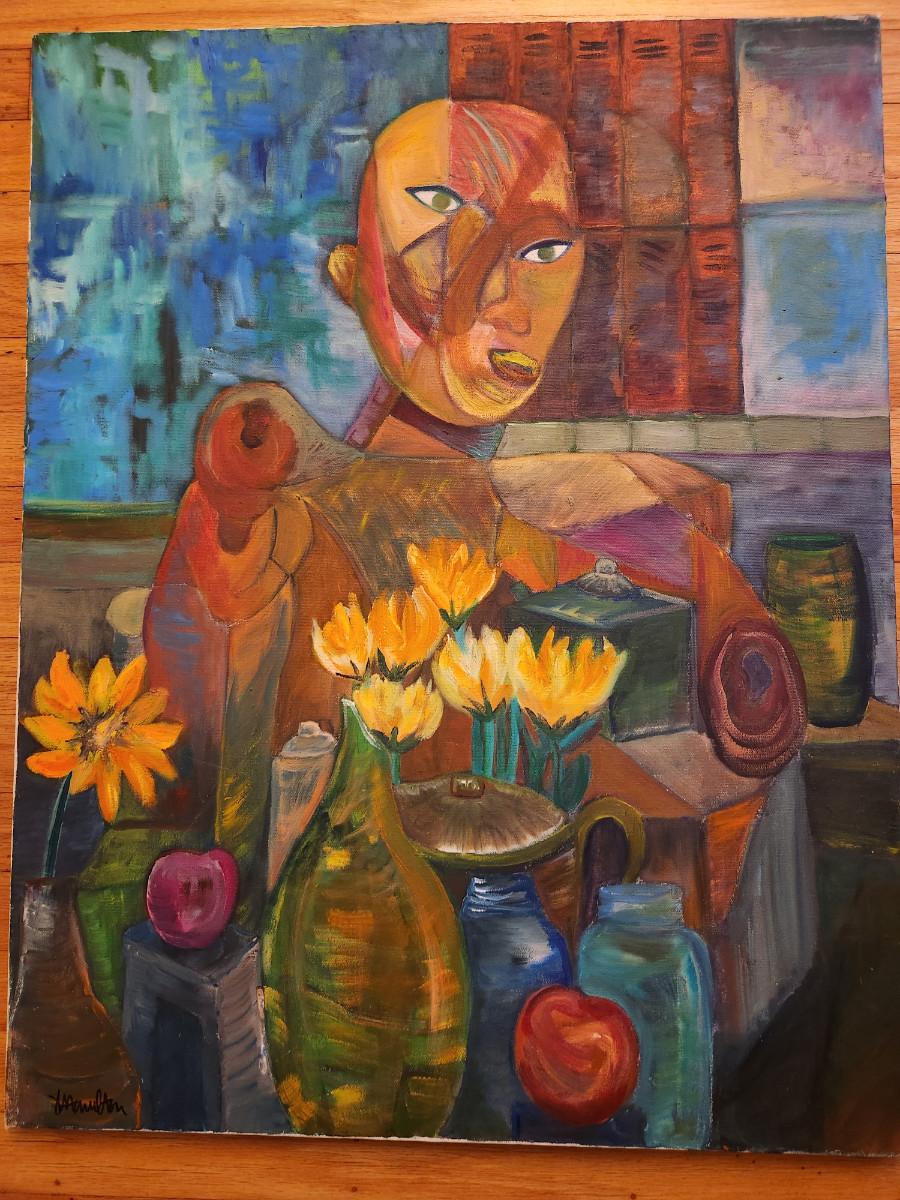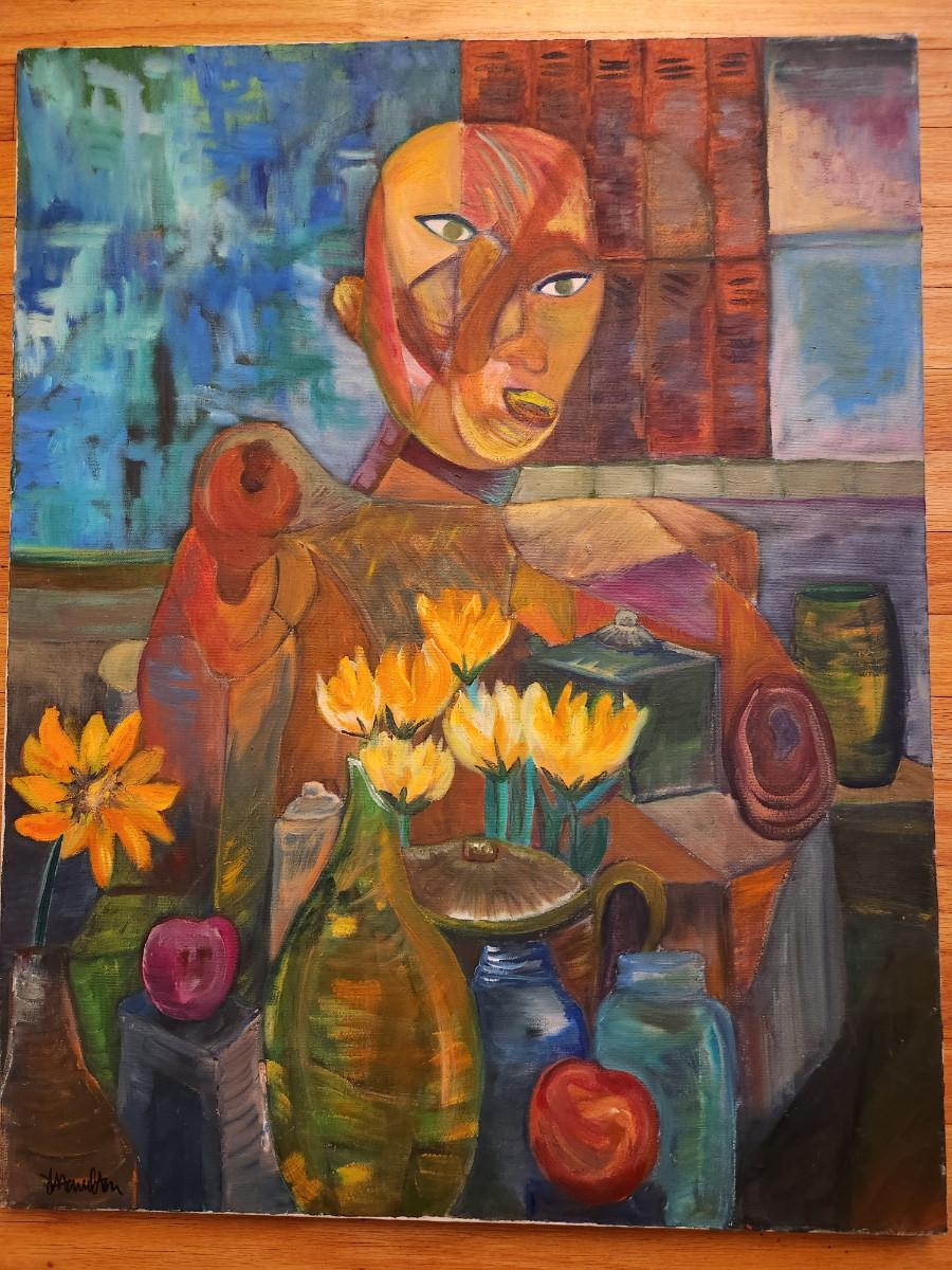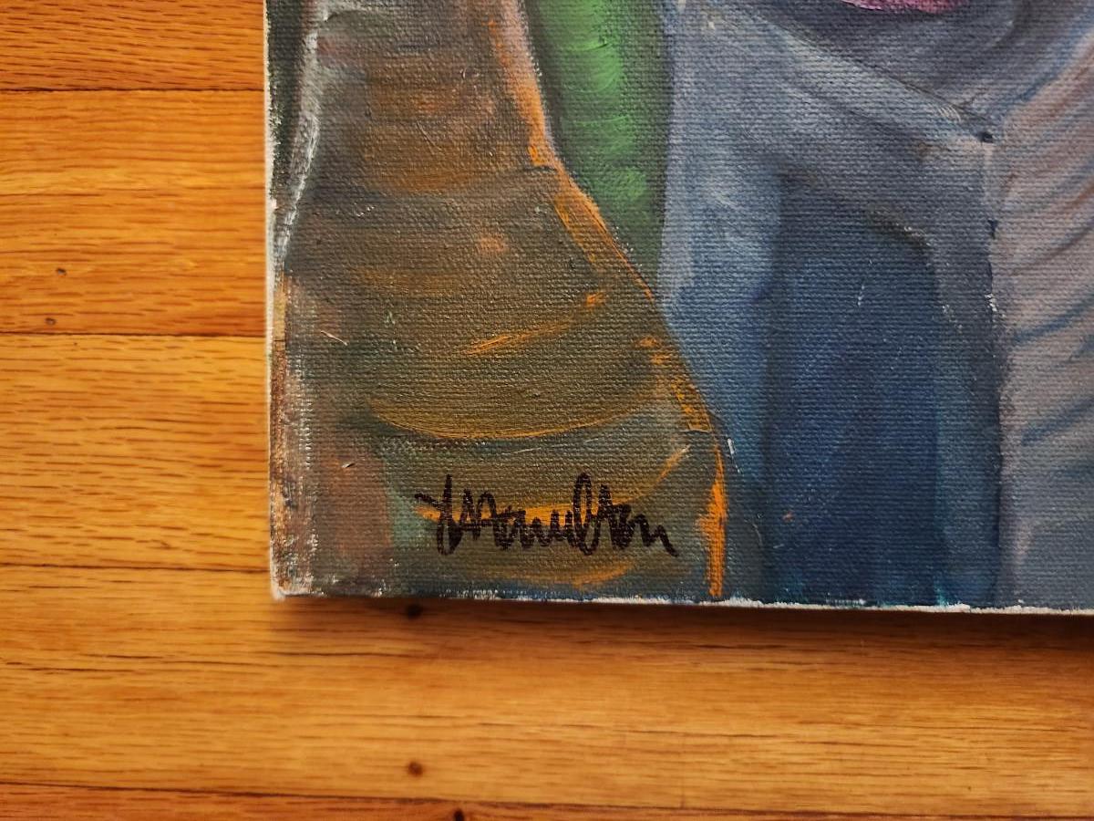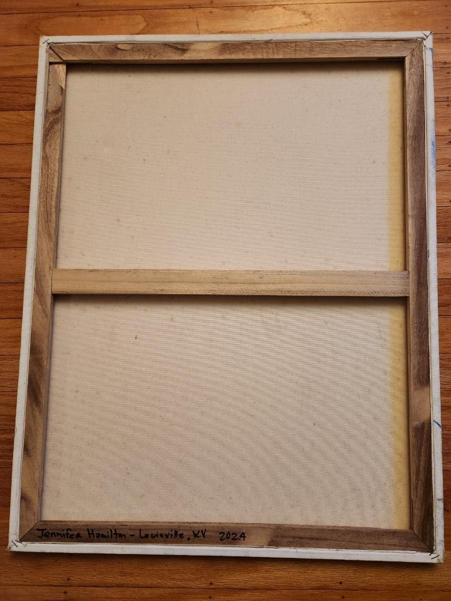 This auction lot is for an Original Acrylic Cubist-Style Painting. This painting by Louisville, KY artist Jennifer Hamilton is quite a unique artpiece. She called it her attempt at "cubeism-ish" painting. Great colors. Signed in lower left corner. The painting is not framed. The canvas measures about 22-inches by 28-inches.