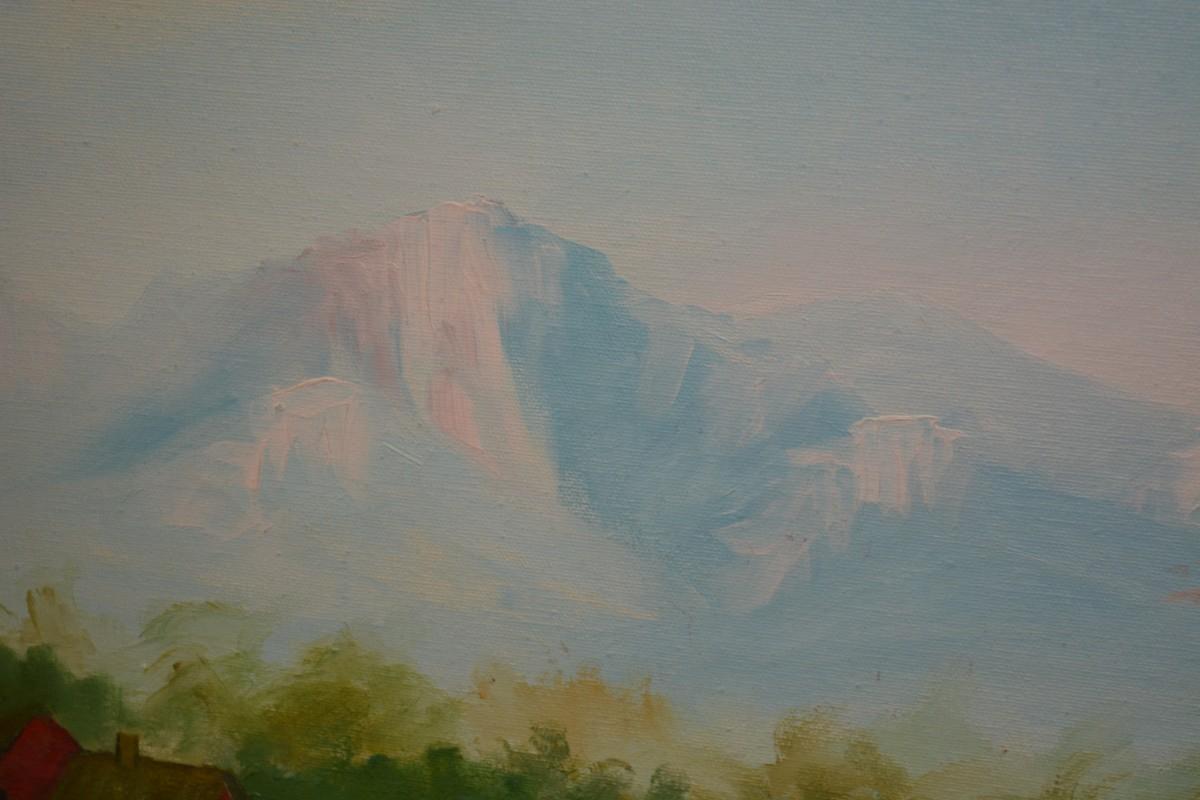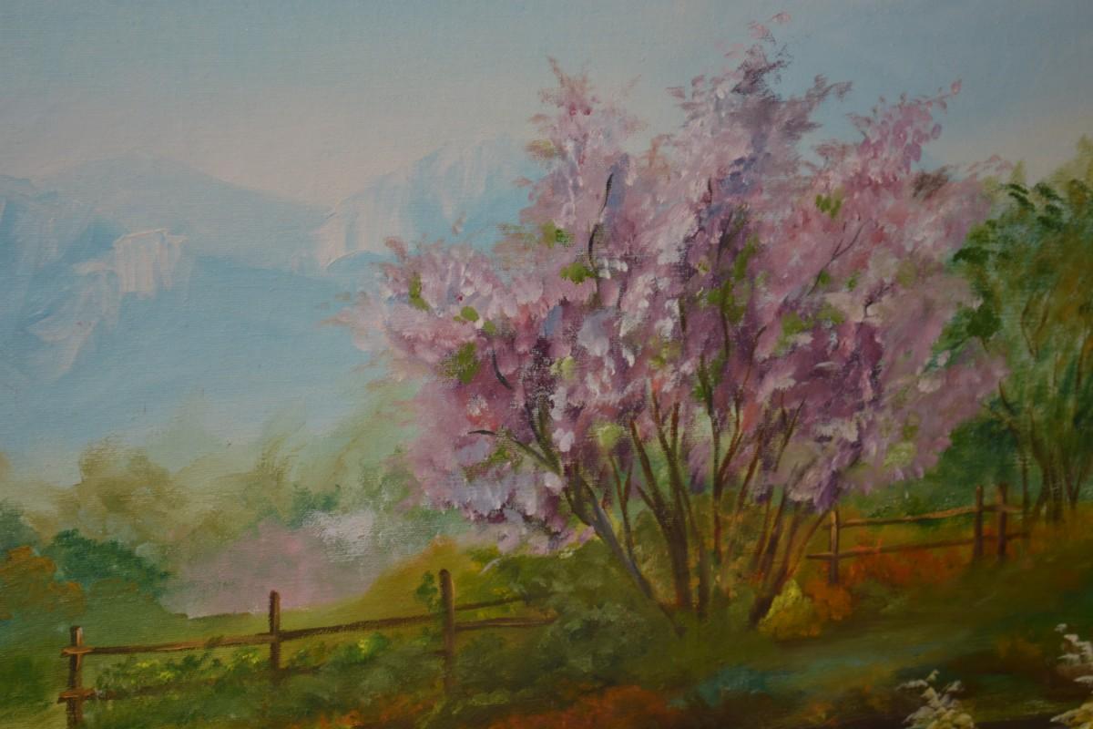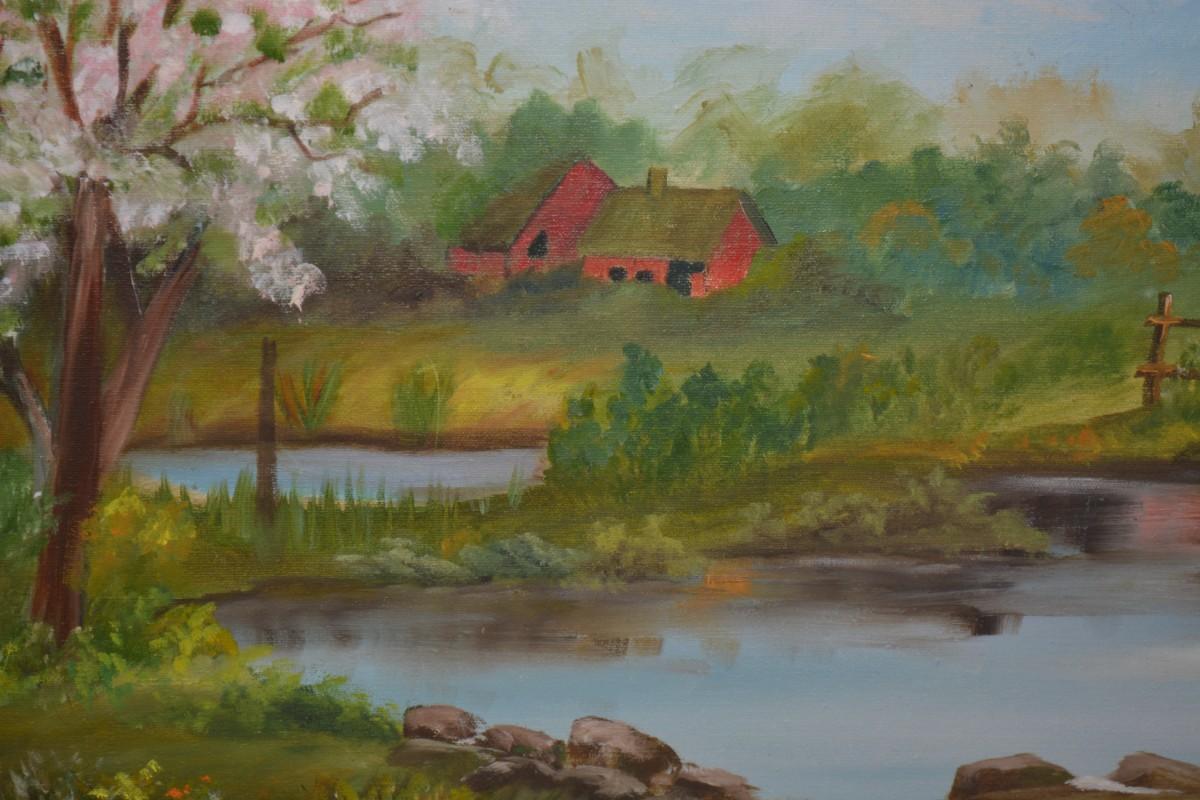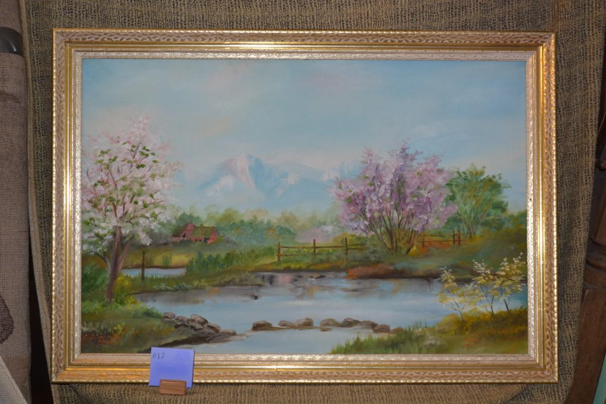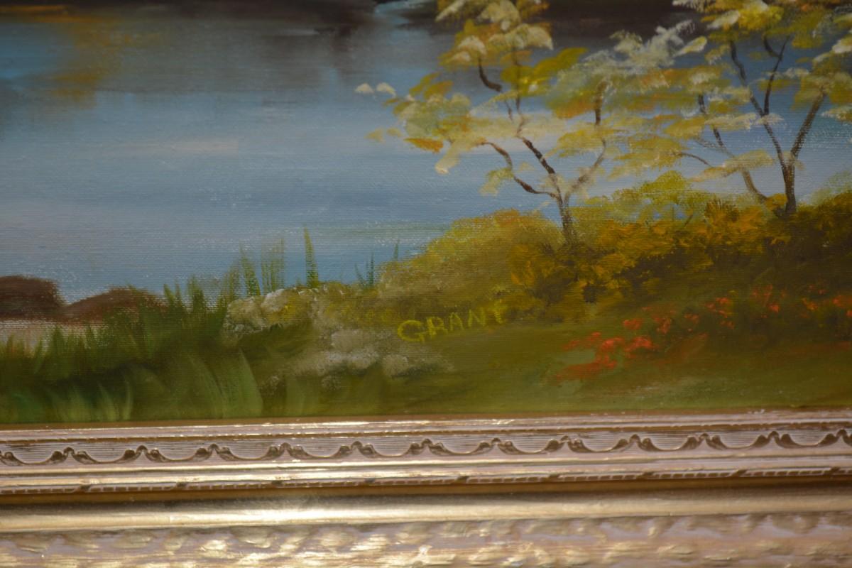 Original Acrylic Landscape on Canvas in Gold Painted Wood Frame