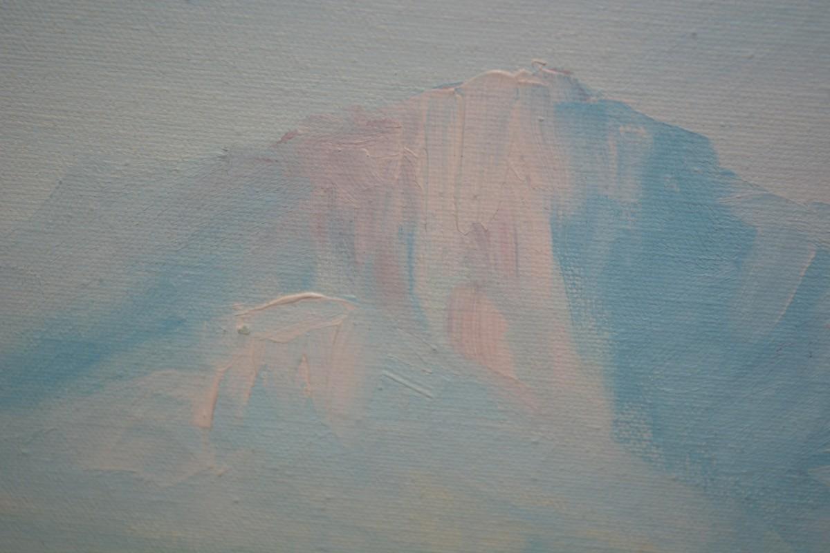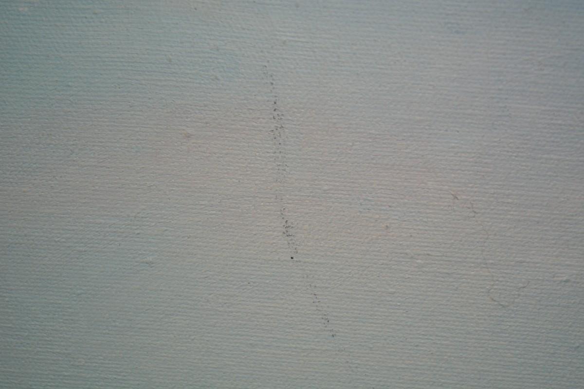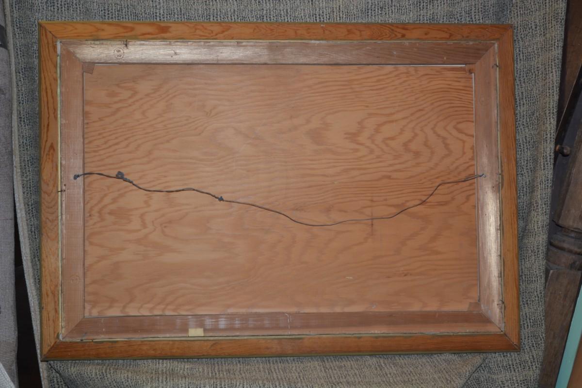Has some small marks on the canvas, and minor frame wear. Measures 40"x28".