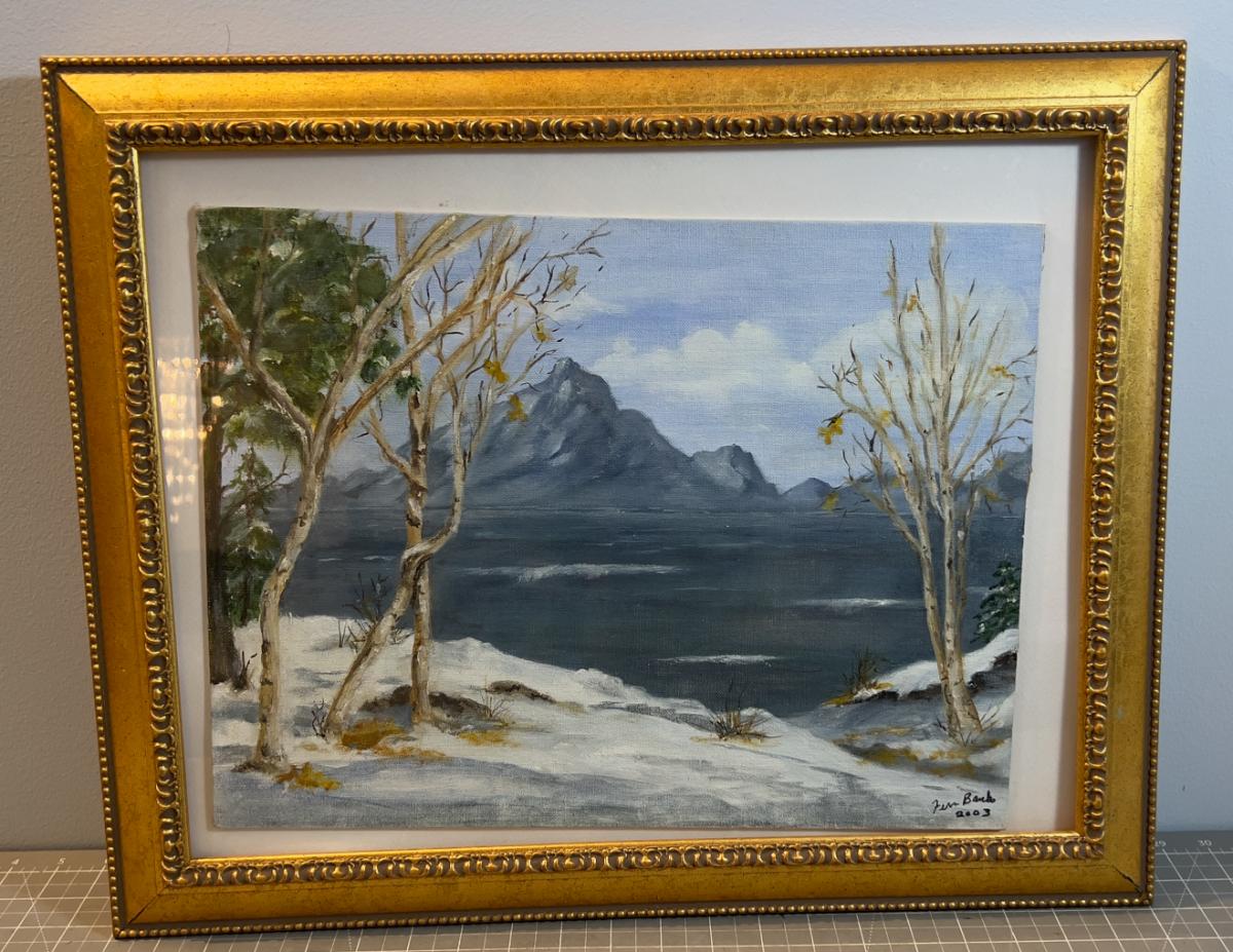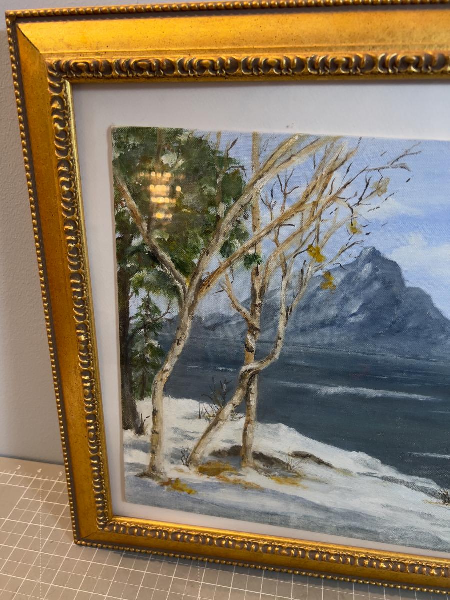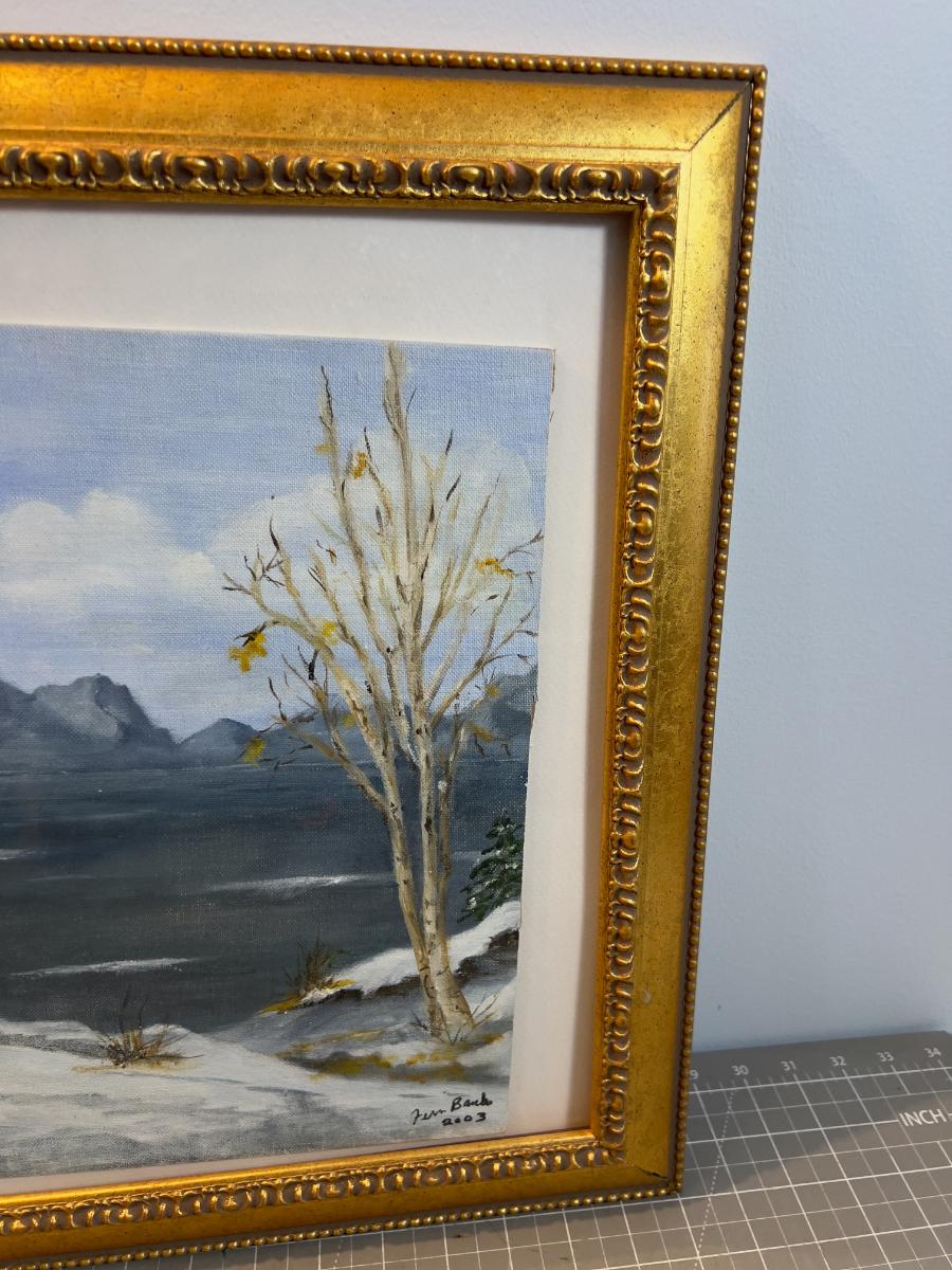 Nice art. Measures 12 x16 needs straighten out in frame.