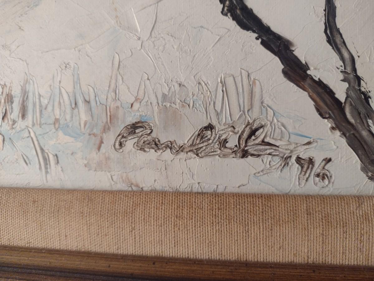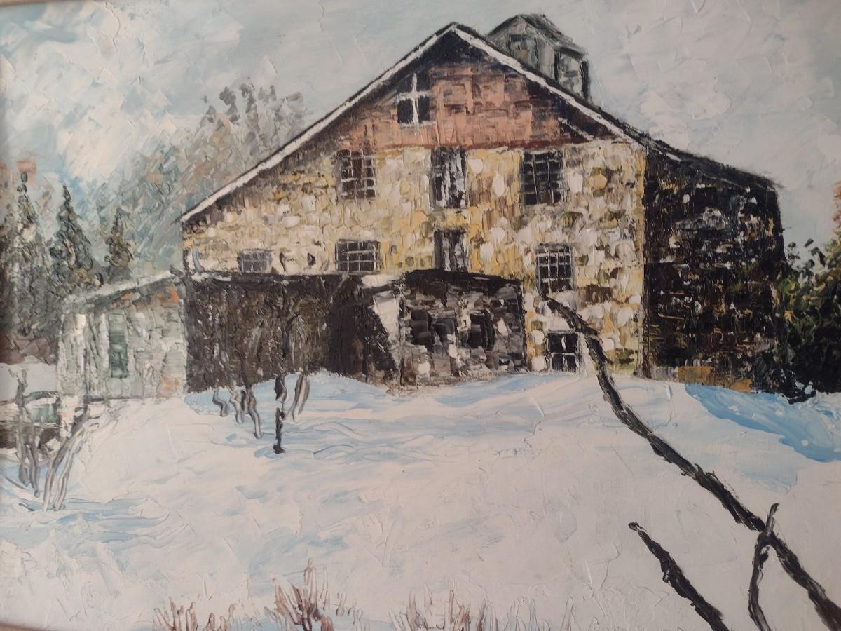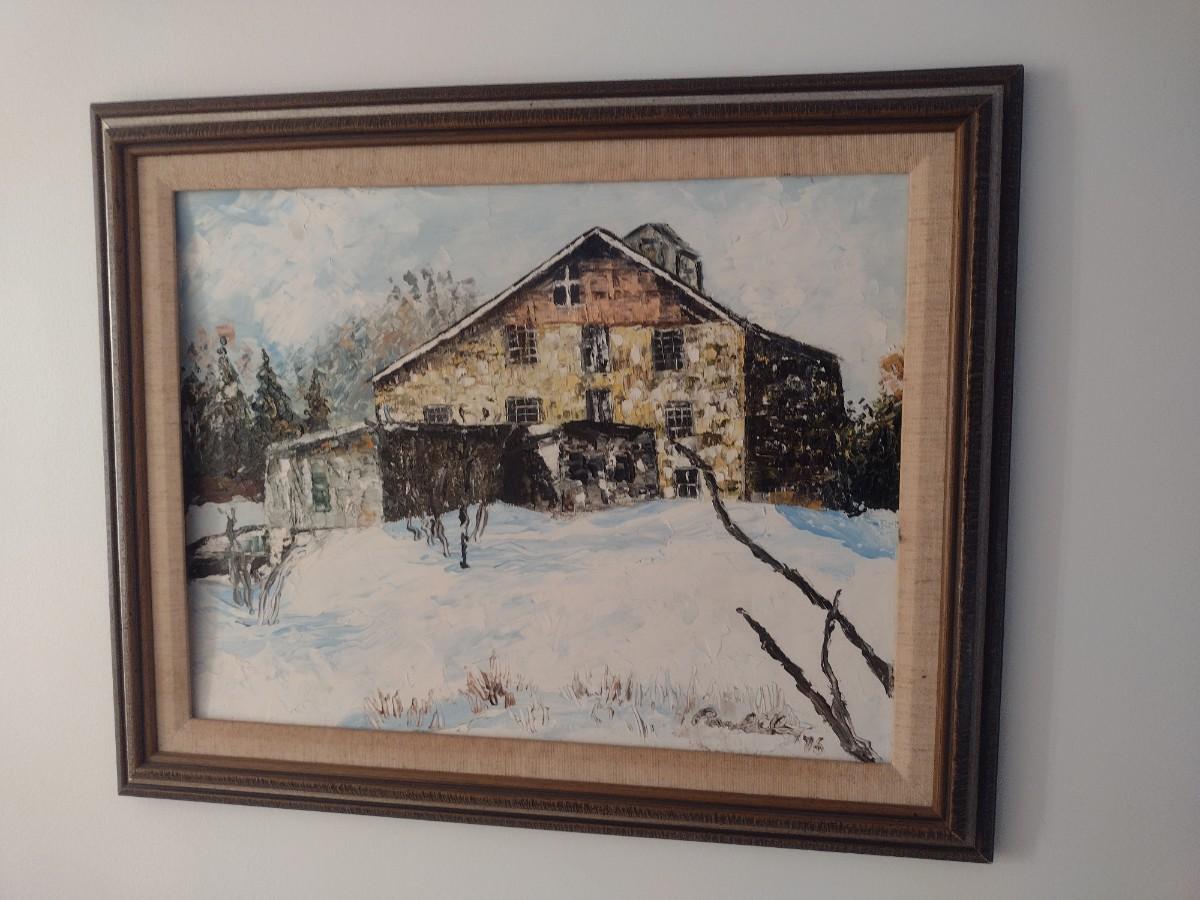 Original Acrylic on Canvas Framed Artwork Barn in a Snowy Landscape