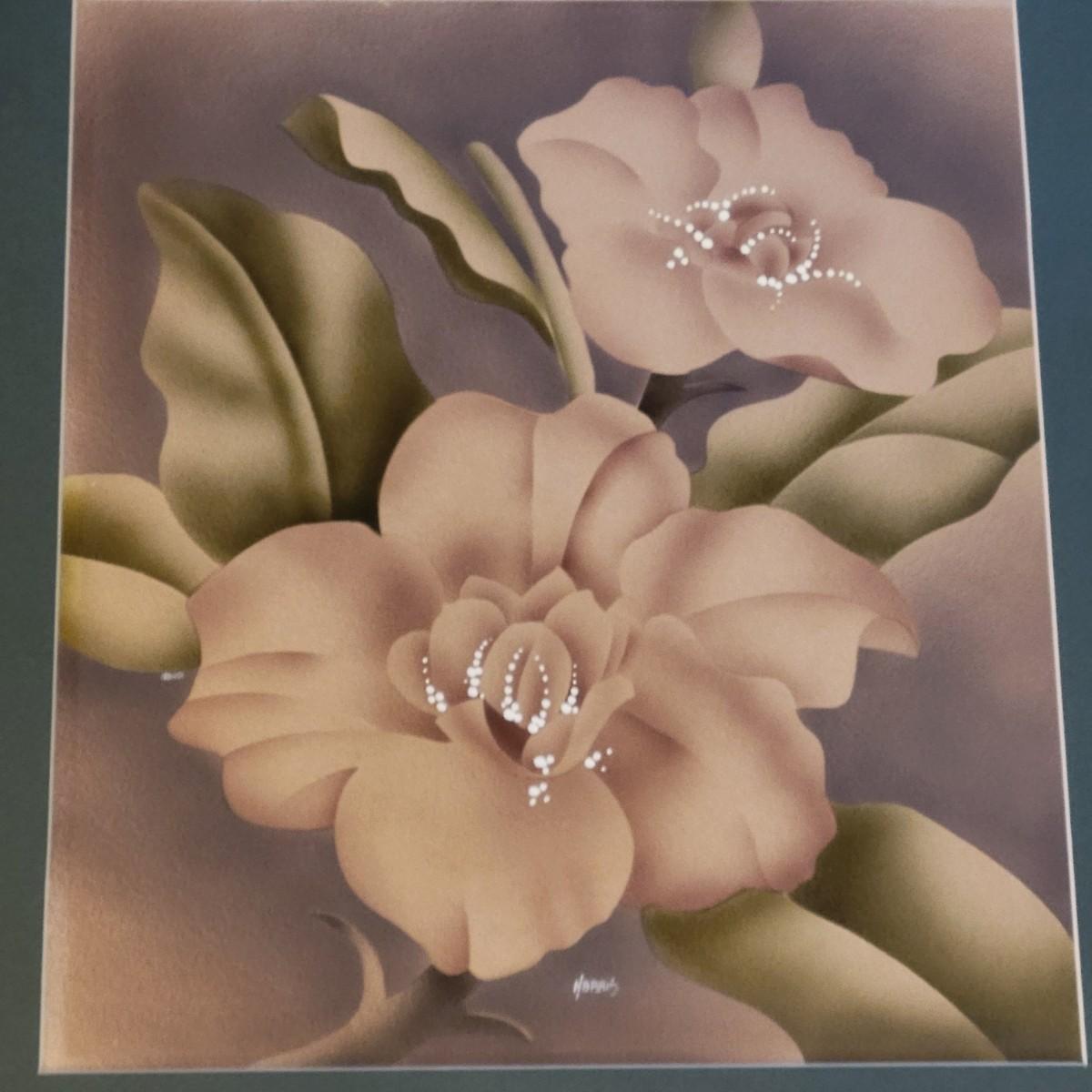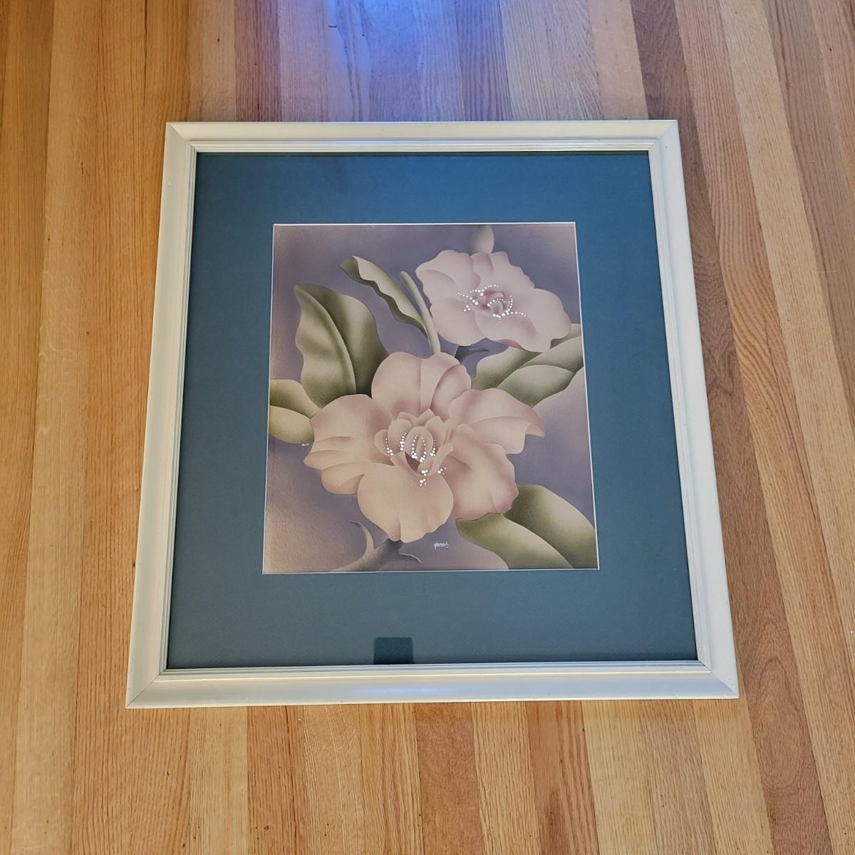 An original airbrushed watercolor by Benjamin Jorj Harris we believe. This piece is custom framed in a wooden white frame with some minor blemishes. Framed print measures approximately 24.5" x 26.5 x 1". Shipping available. Shipping Art can be costly please call UPS store at 828-252-6930 for quote